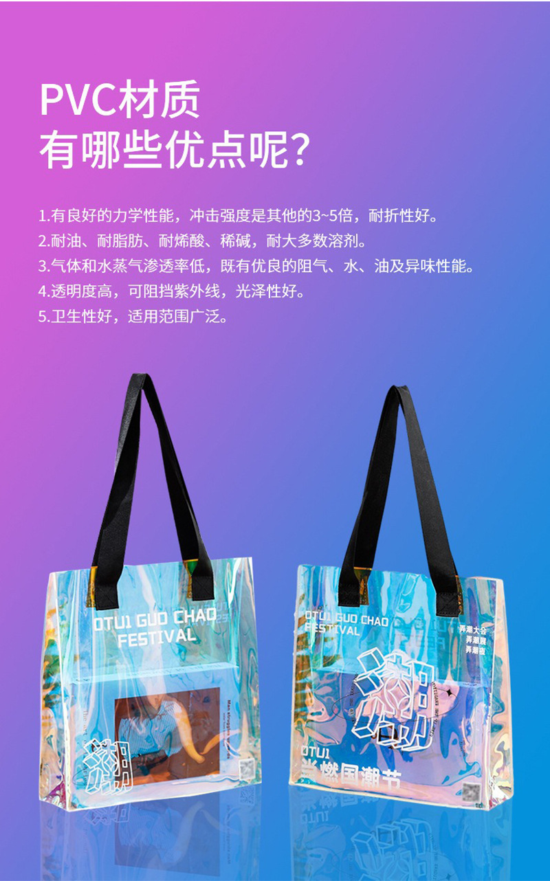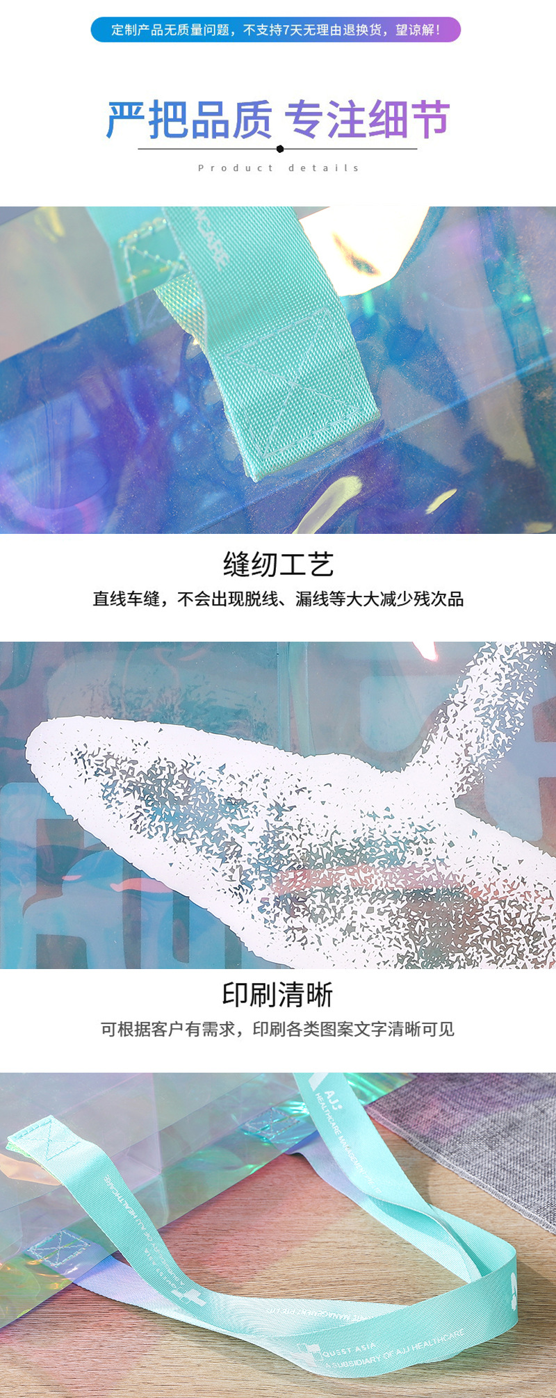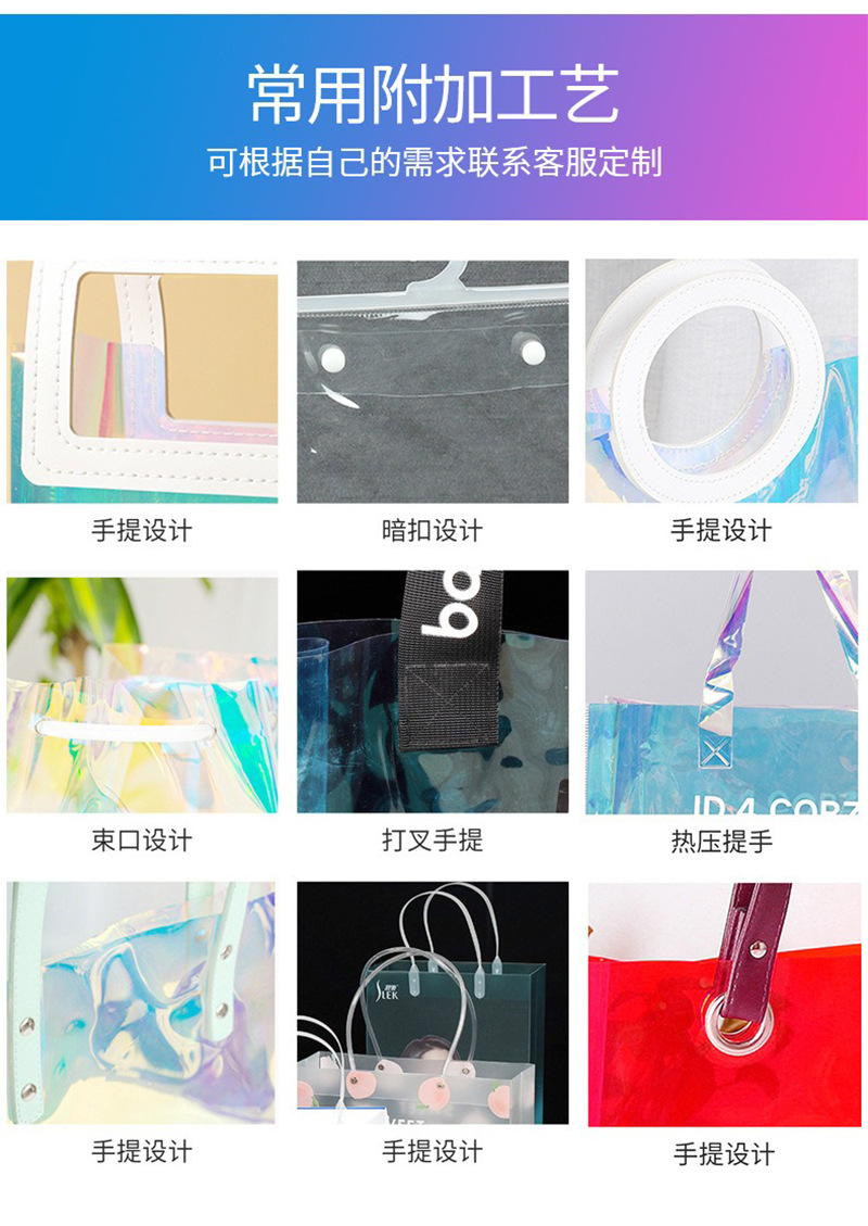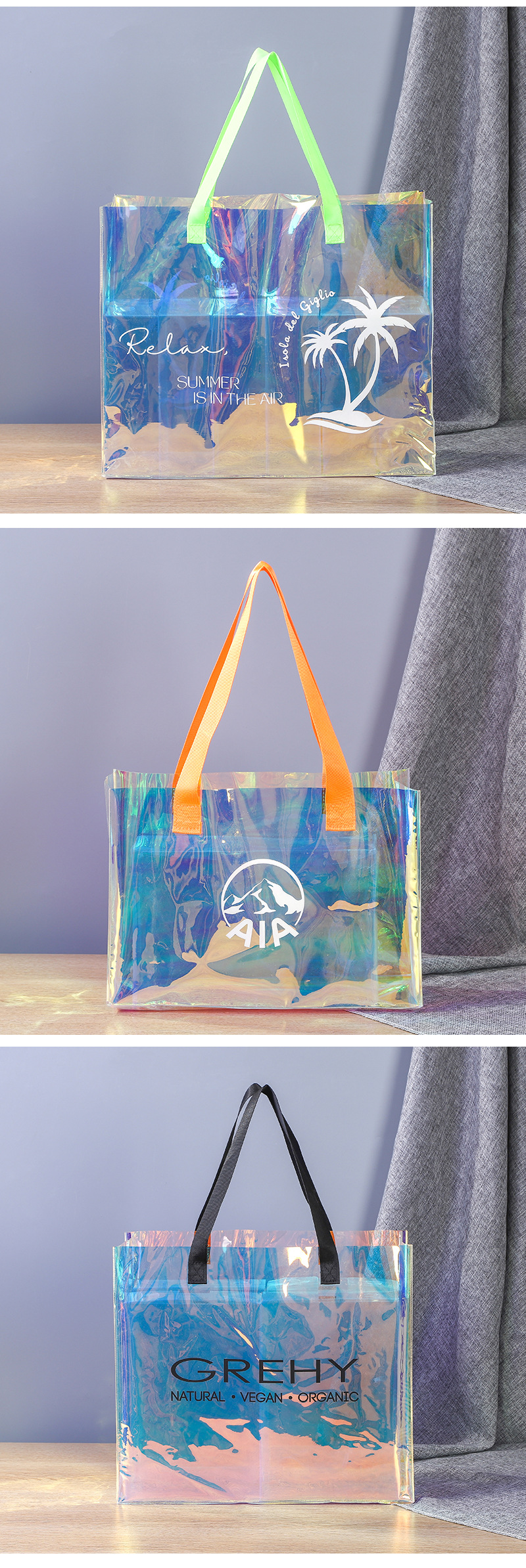 제조업체는 광고 로고가 인쇄된 PVC 다채로운 레이저 소녀 숄더 핸드백 투명 화장품 가방을 만듭니다.스토어 가기