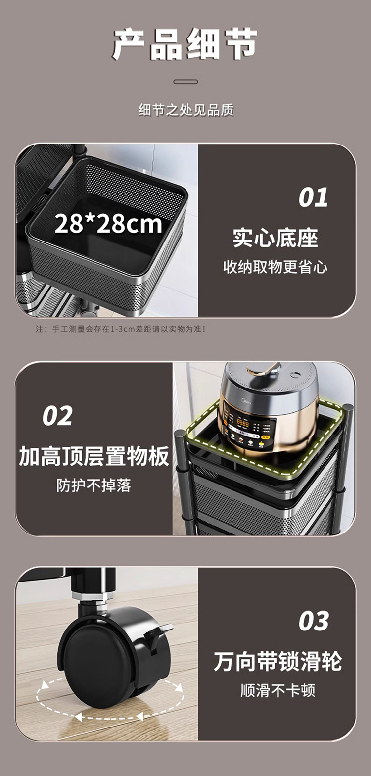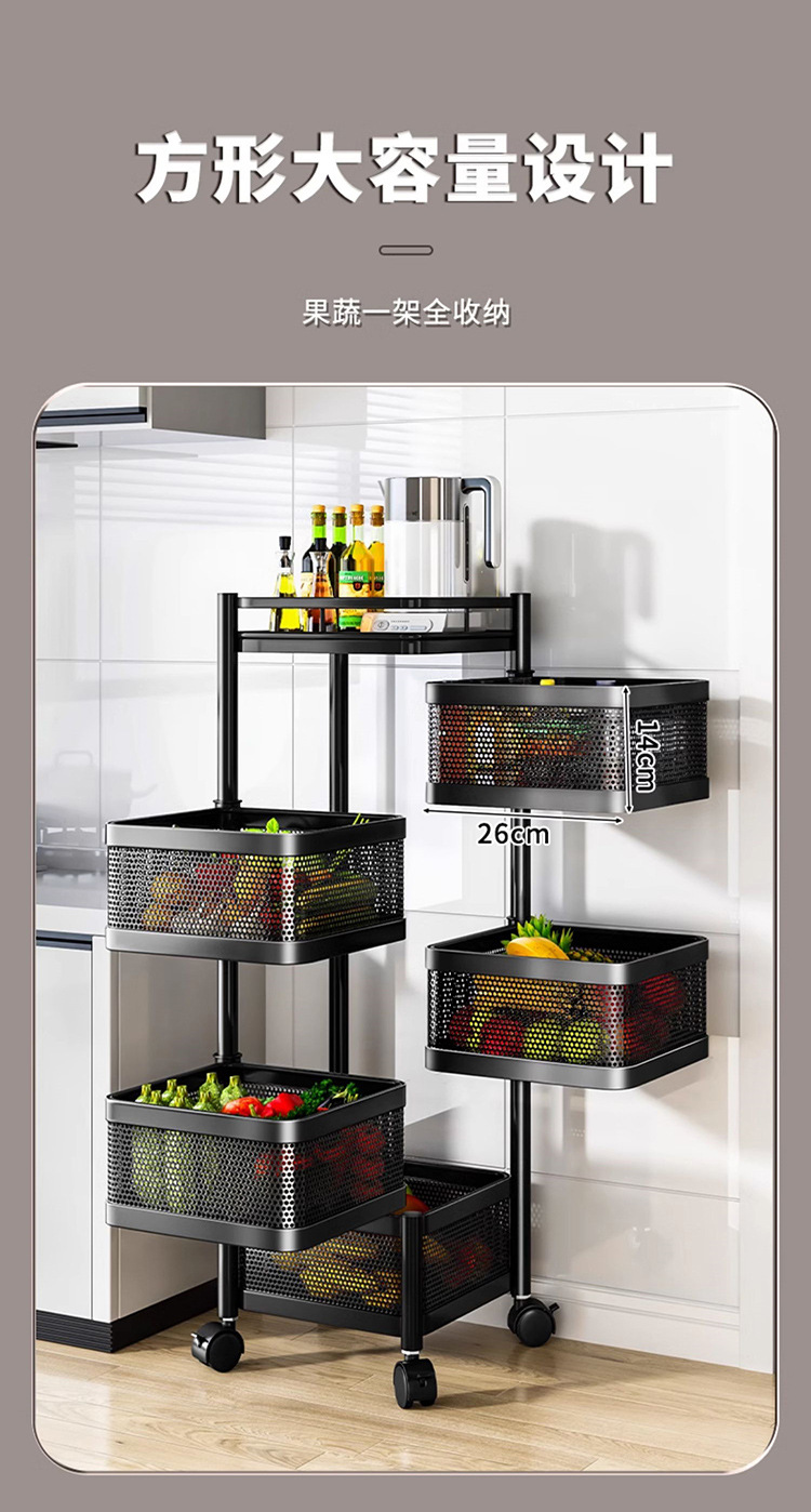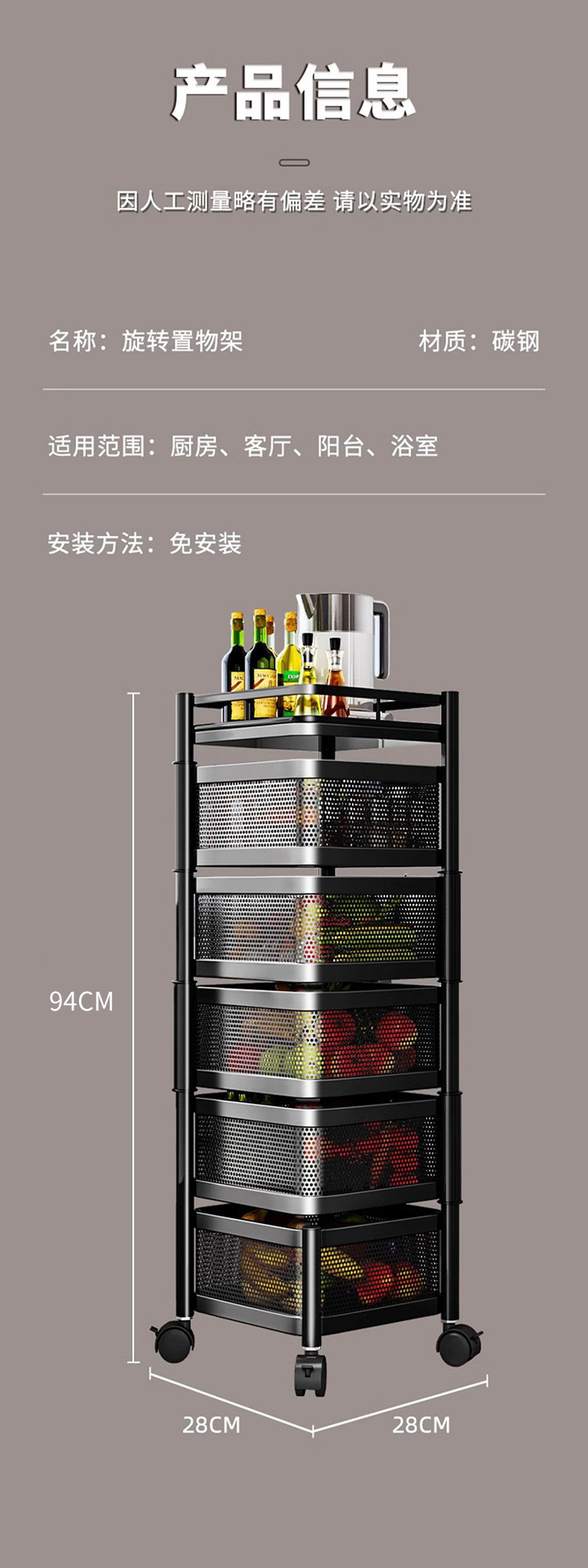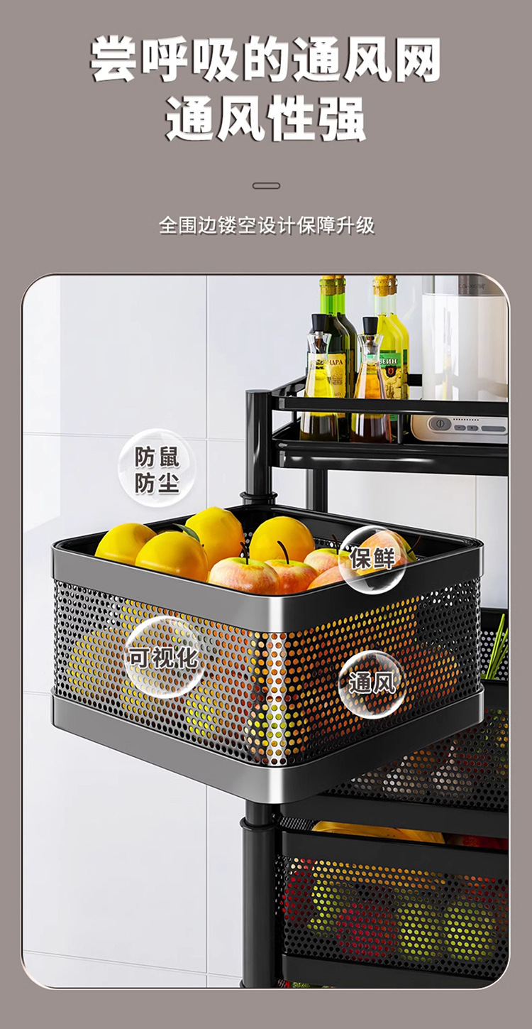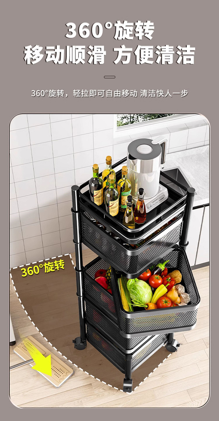 주방 회전 다기능 저장 랙 가정용 바닥 서 다층 간식 트롤리 과일 및 야채 바구니 저장 랙