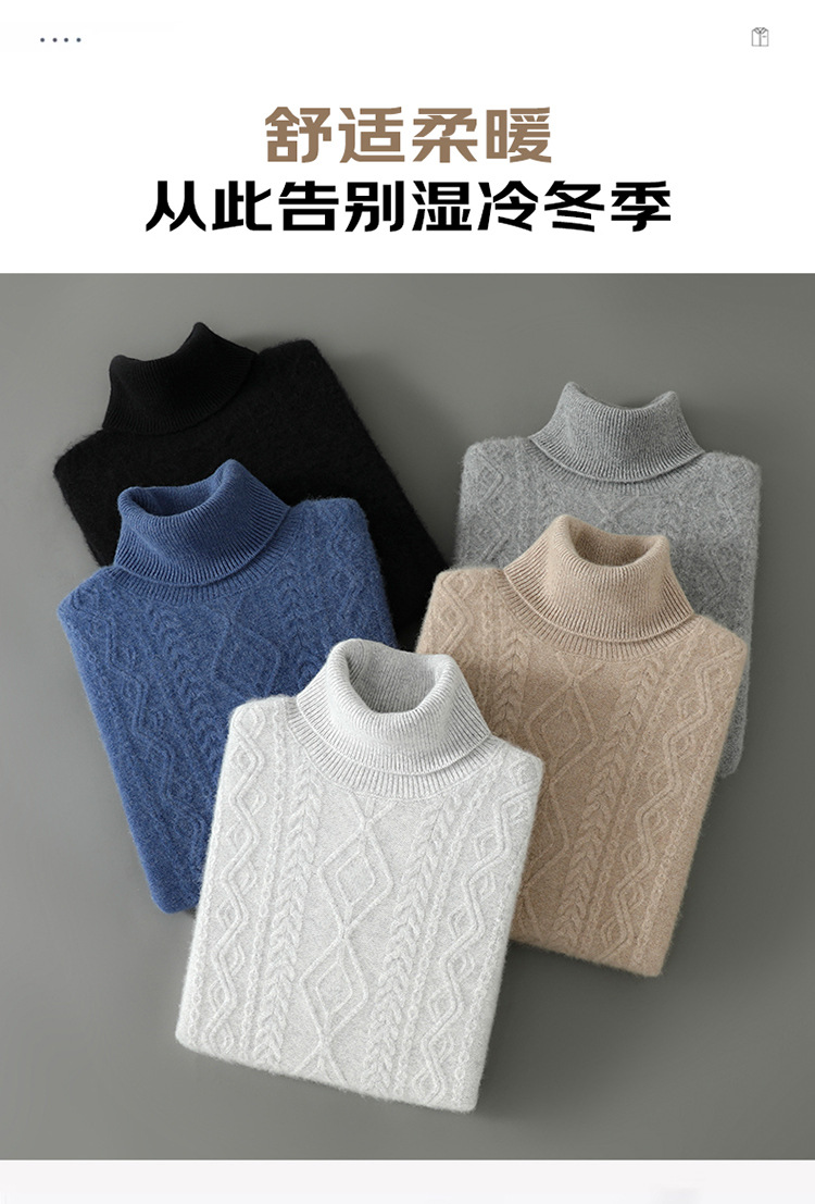 가을과 겨울 새로운 울 스웨터 남자의 높은 옷깃 자카드 두꺼운 느슨한 풀오버 스웨터 비즈니스 캐주얼 니트베이스 셔츠스토어 가기