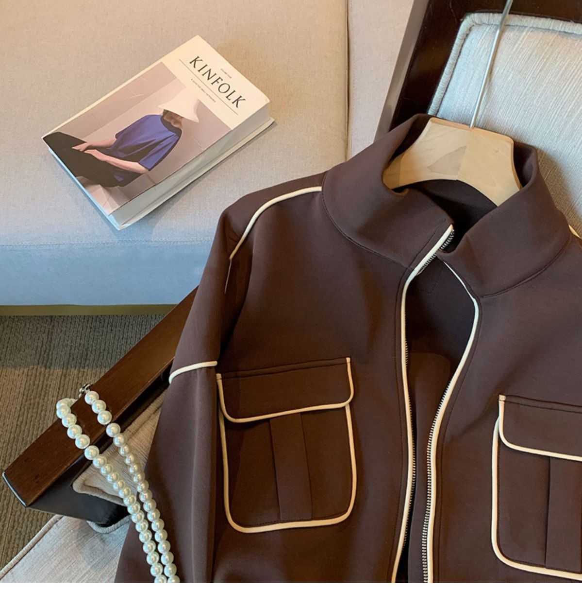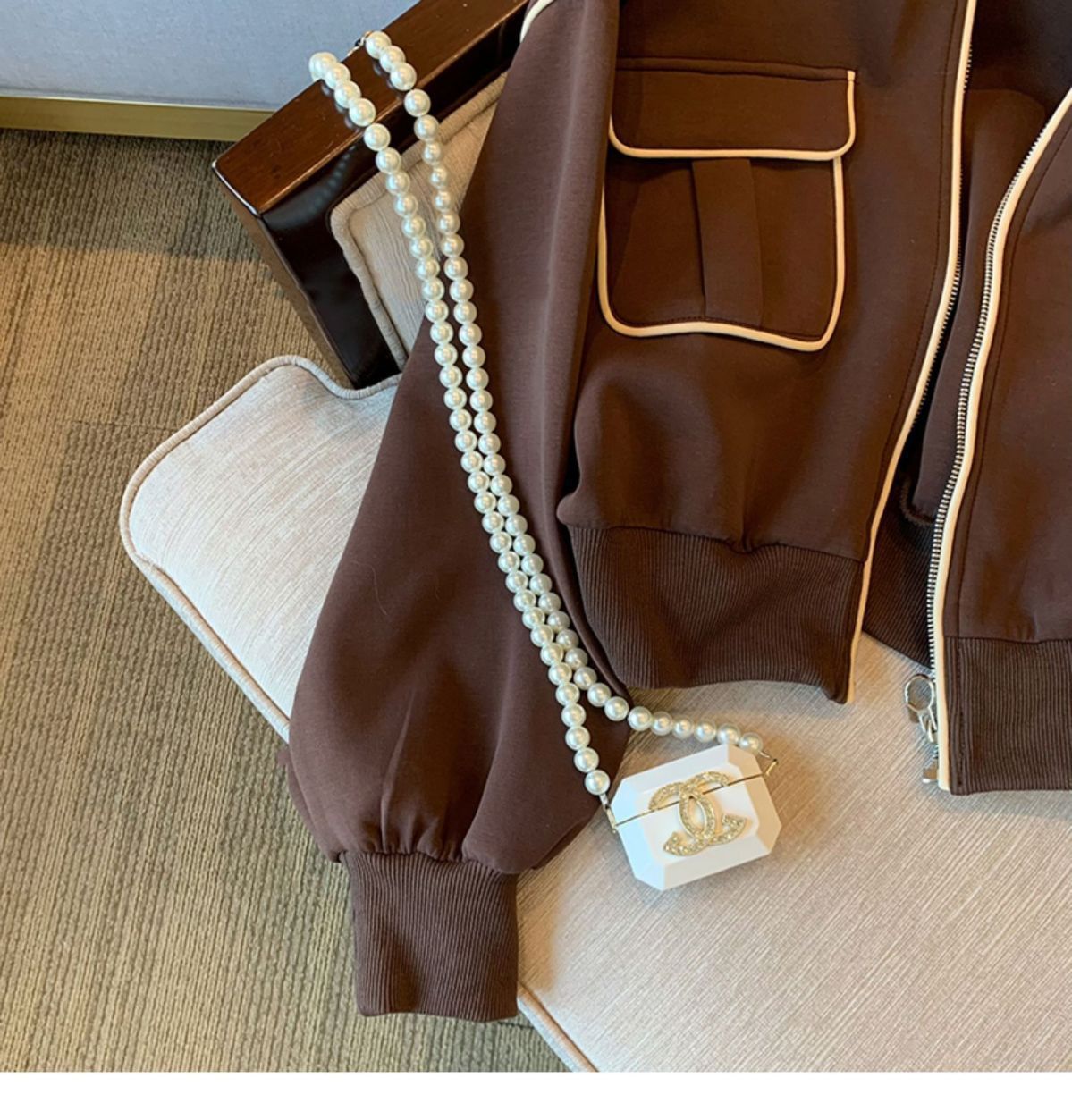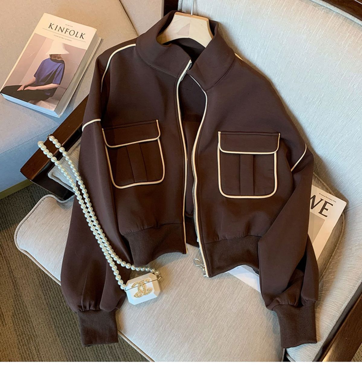 [재고] 스웨트코트 여성 봄 · 가을 디자인 센스 작은 캐주얼 올매치 두꺼운 쇼트야구 세트 재킷스토어 가기