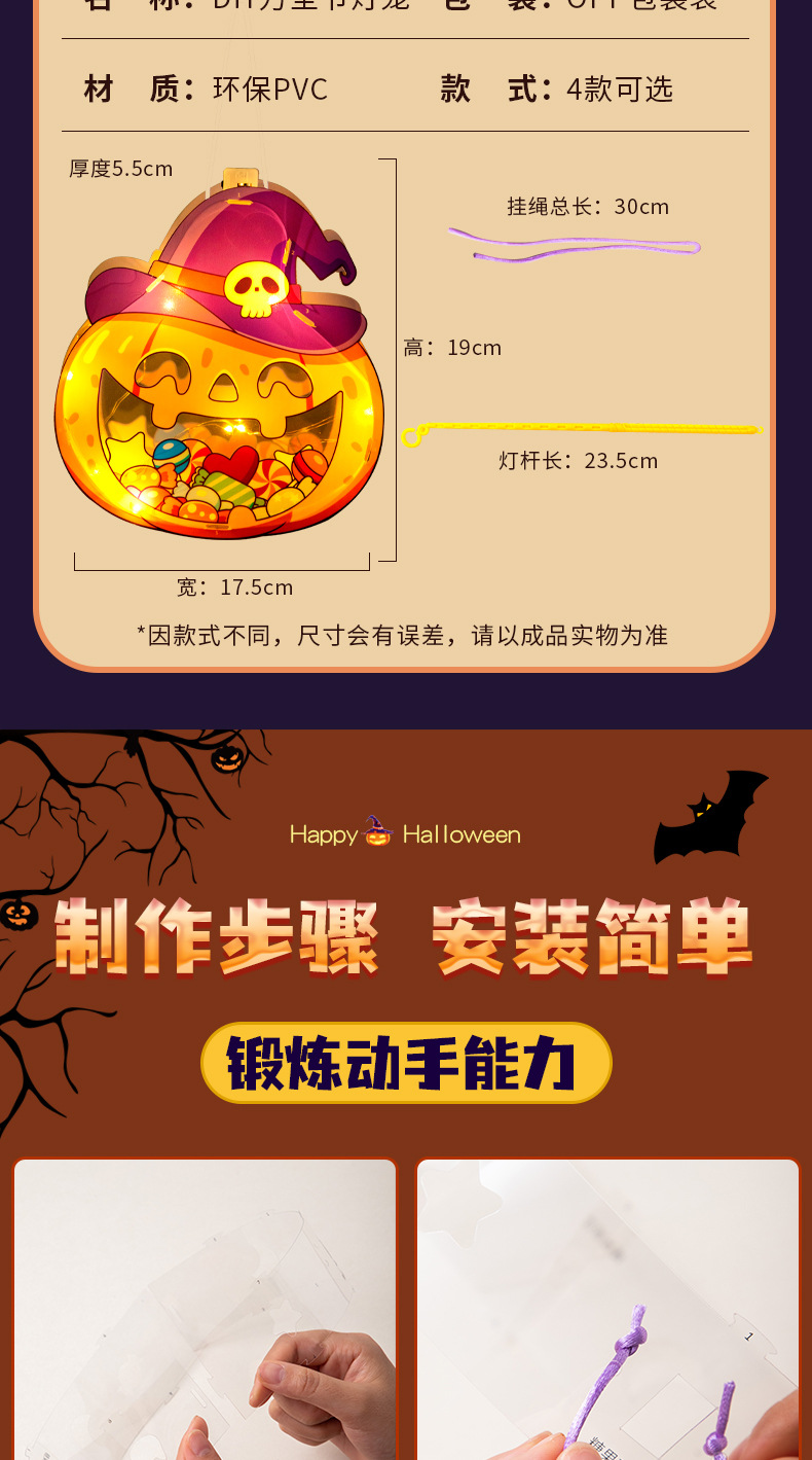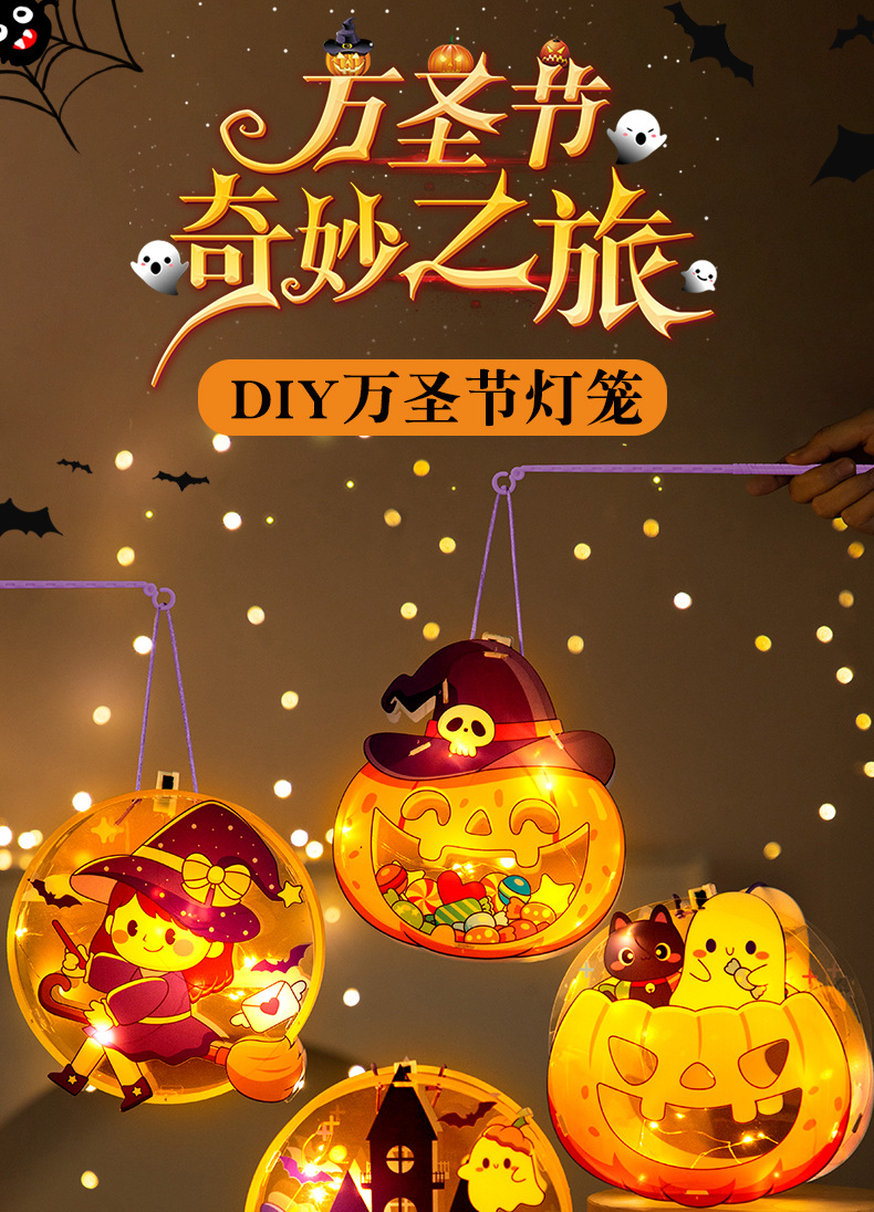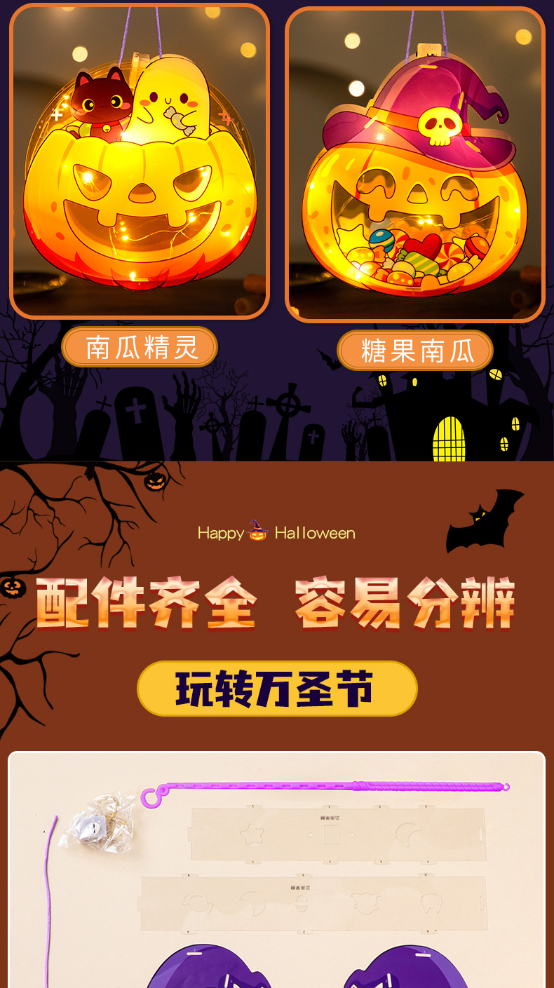 할로윈 호박 램프 장식 어린이 수제 DIY 소재 가방 유치원 테마 활동 프로젝션 빛나는 선물