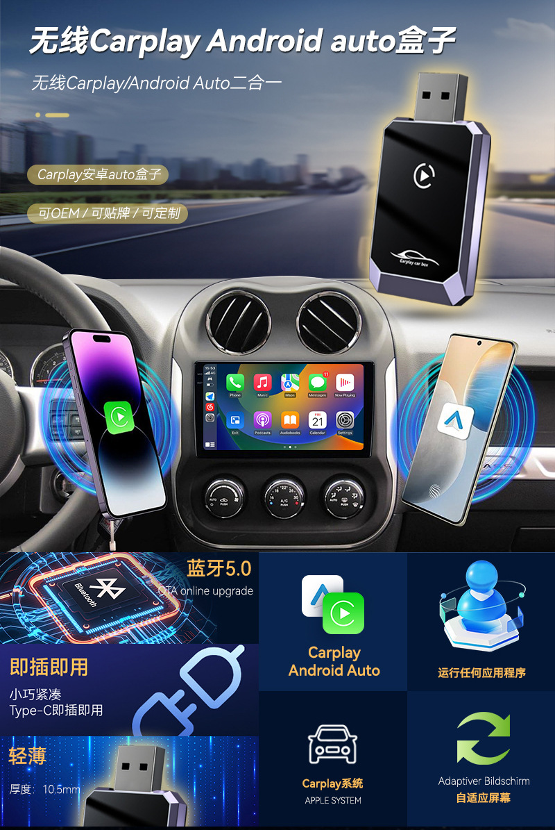 뜨거운 판매 carplay 모듈 스마트 2-in-1 자동차-컴퓨터 상호 연결 상자 휴대용 안드로이드 autocarplay 상자
