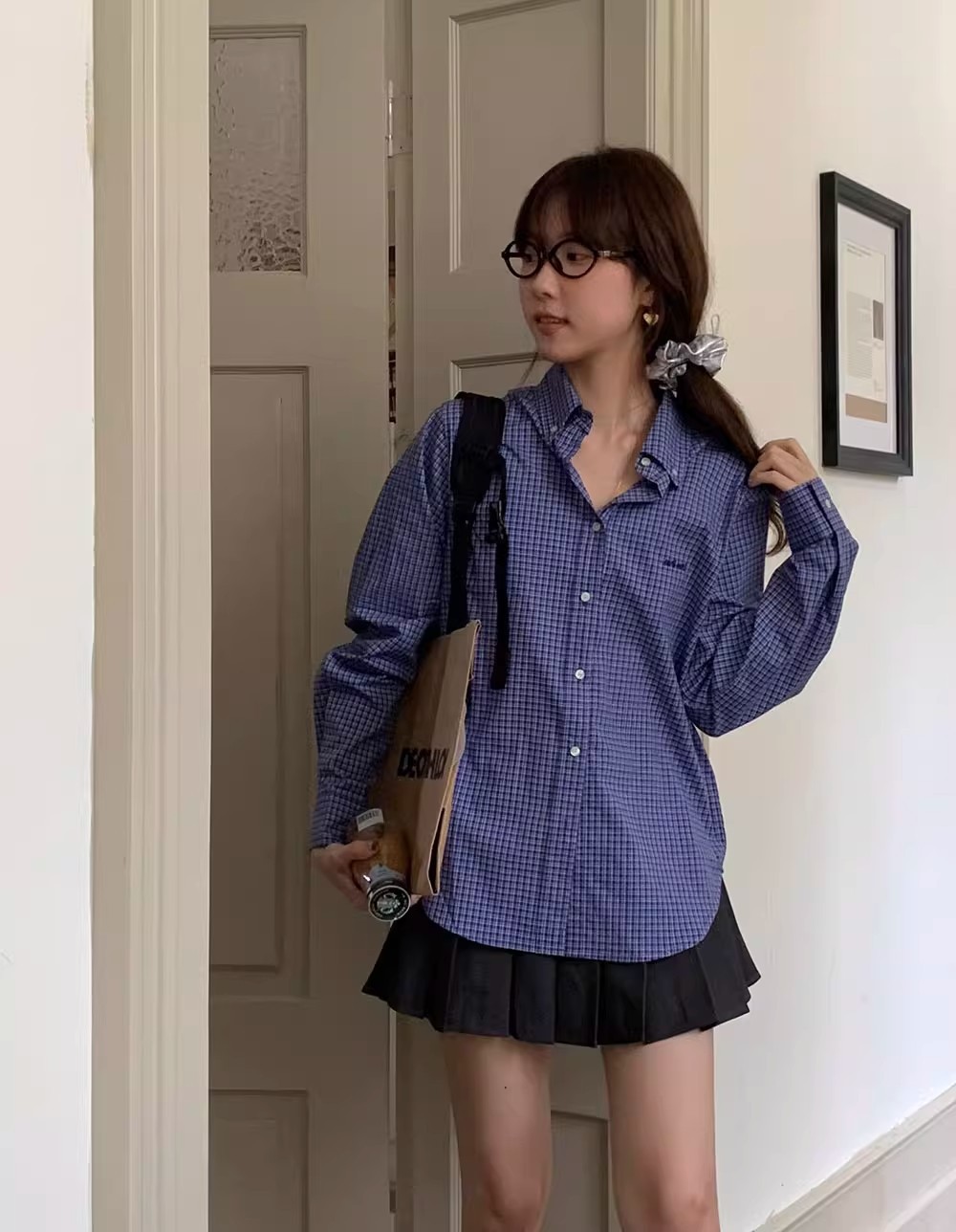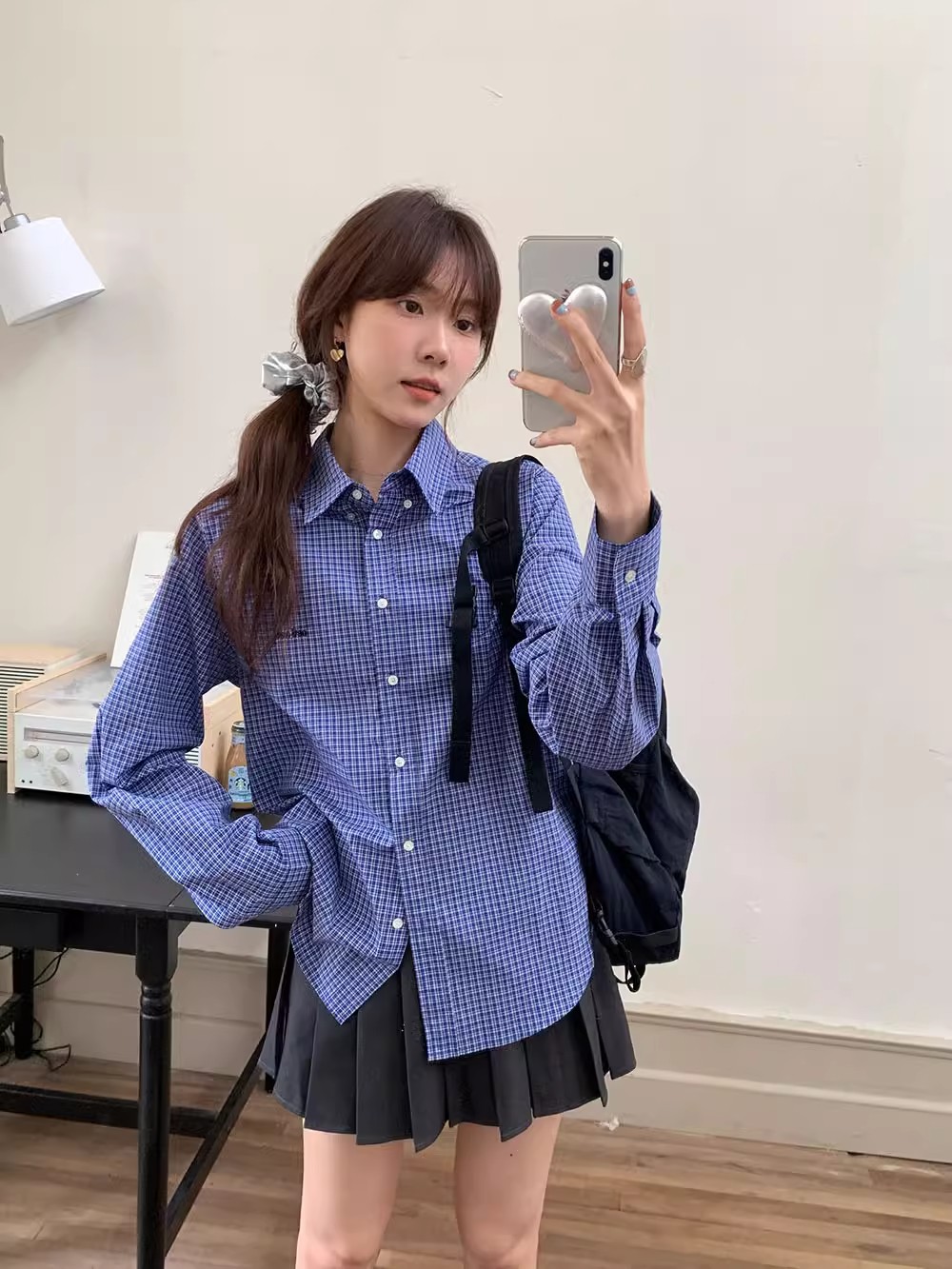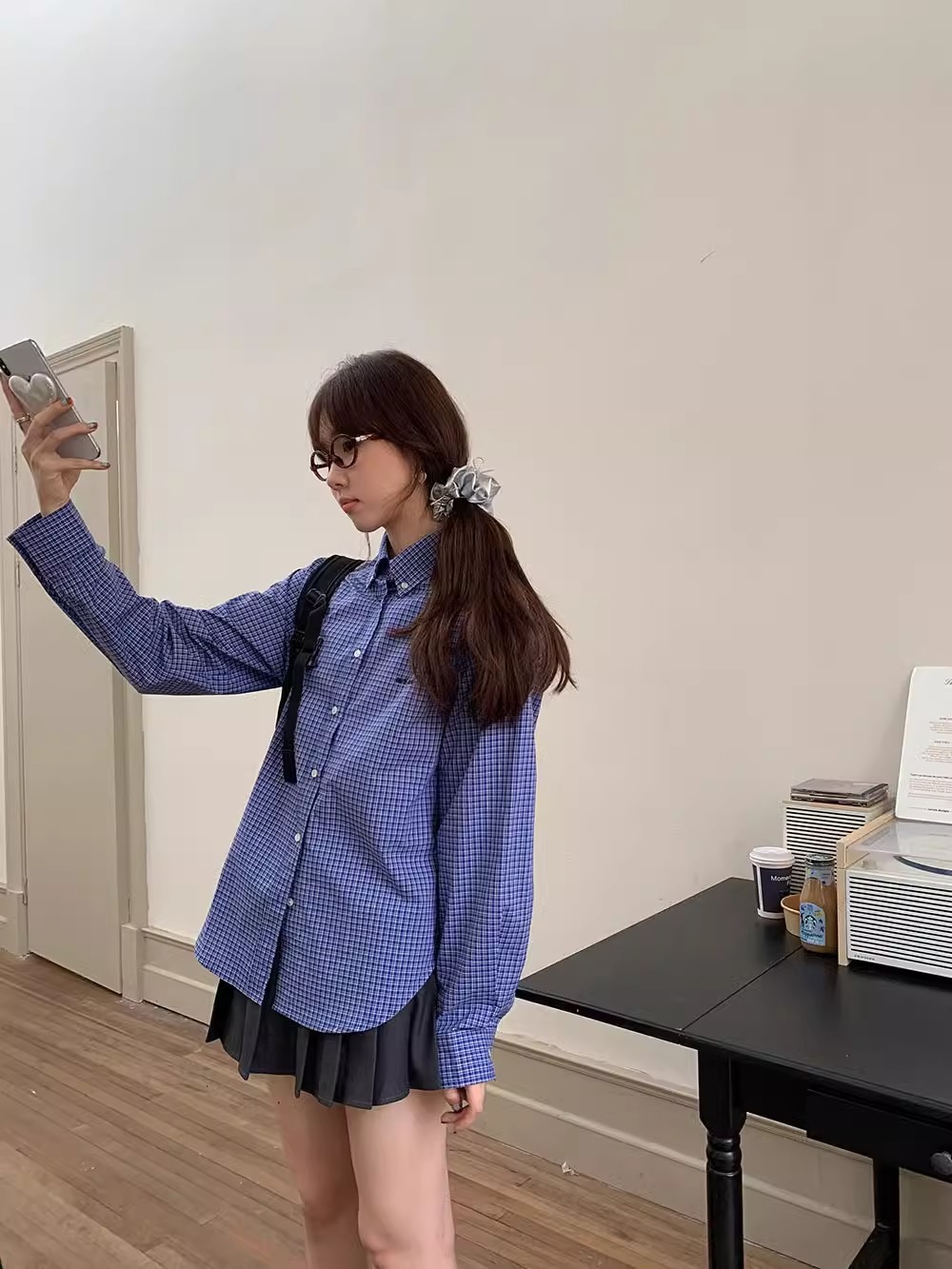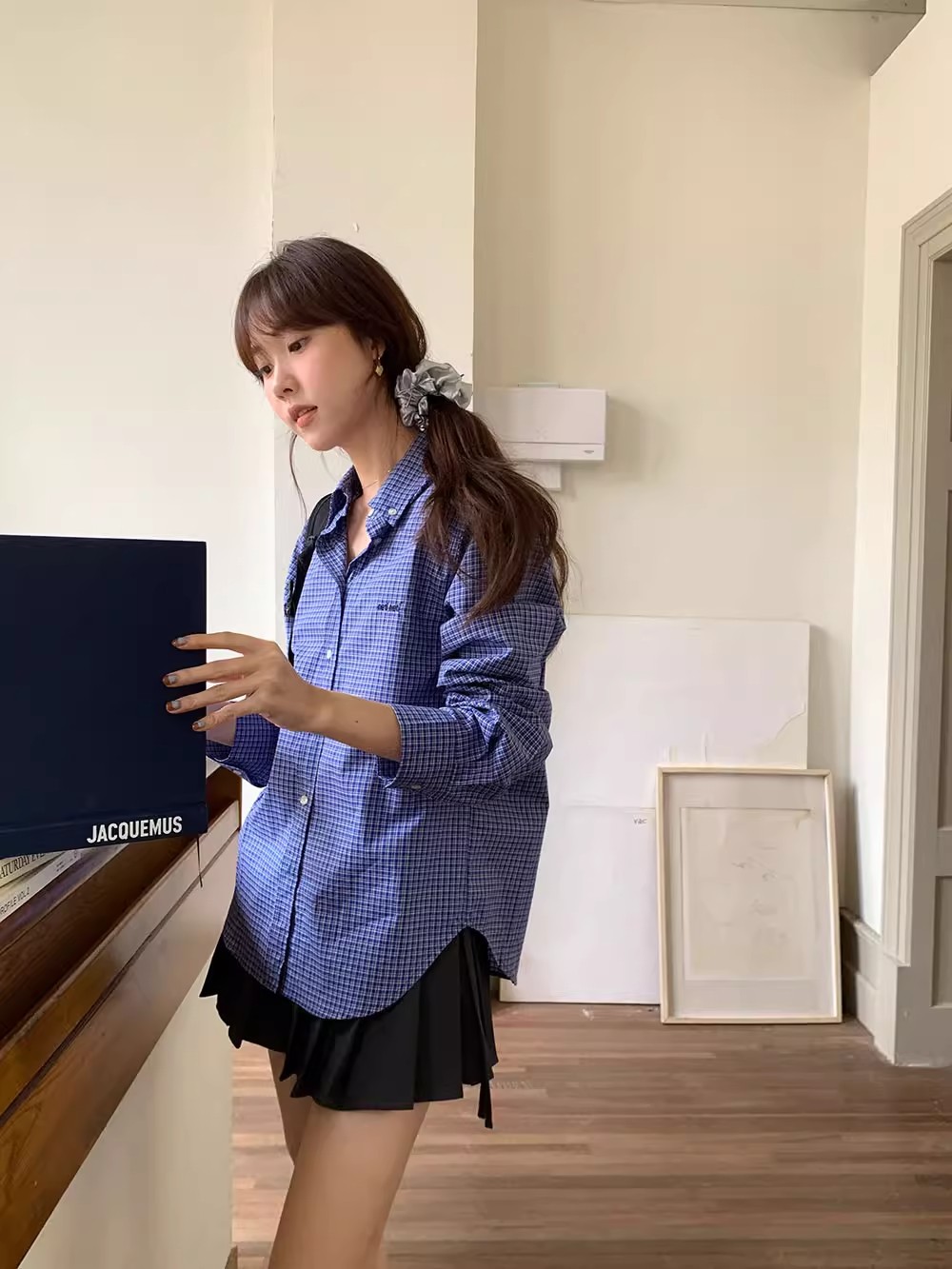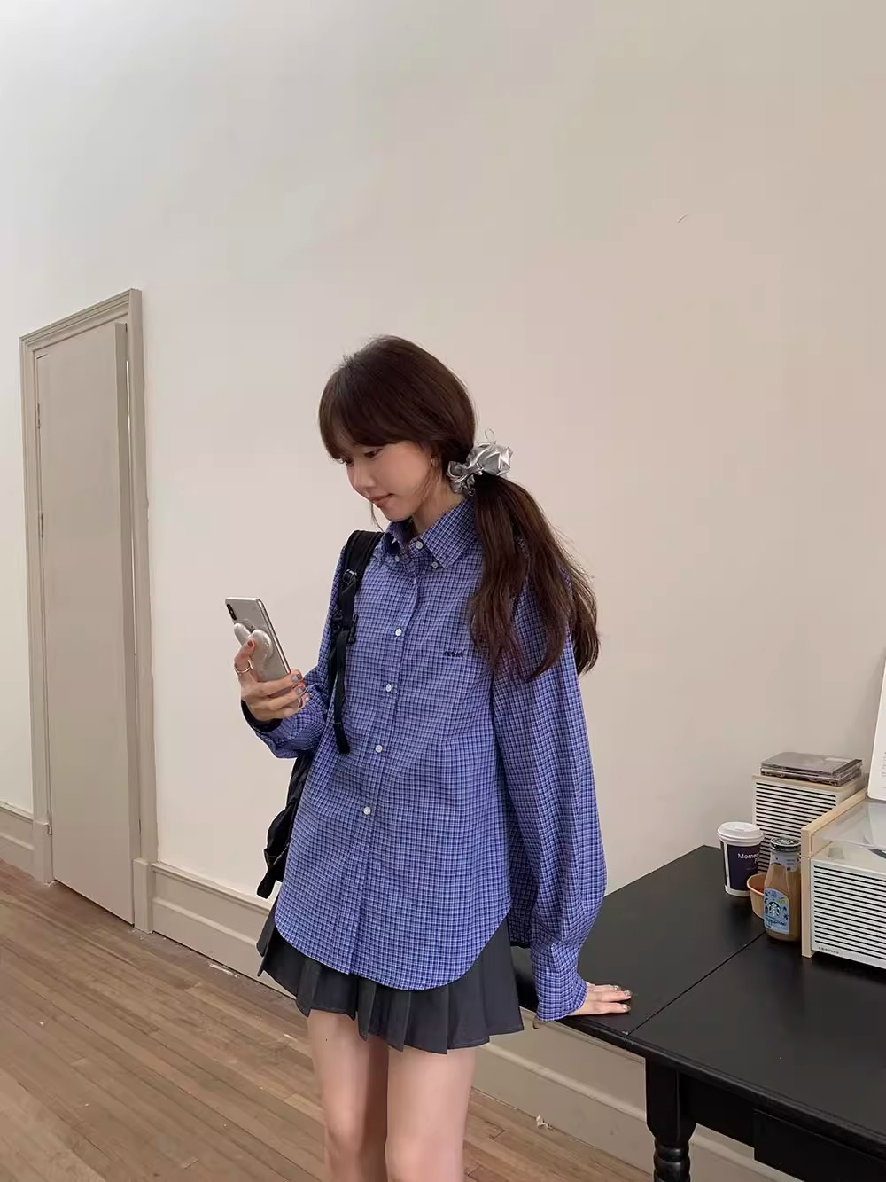 2024 봄, 가을 클라인 블루 격자 무늬 셔츠 여성 자켓 여성 패션상의스토어 가기