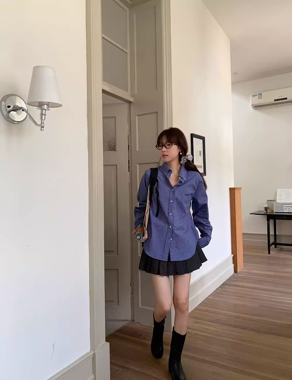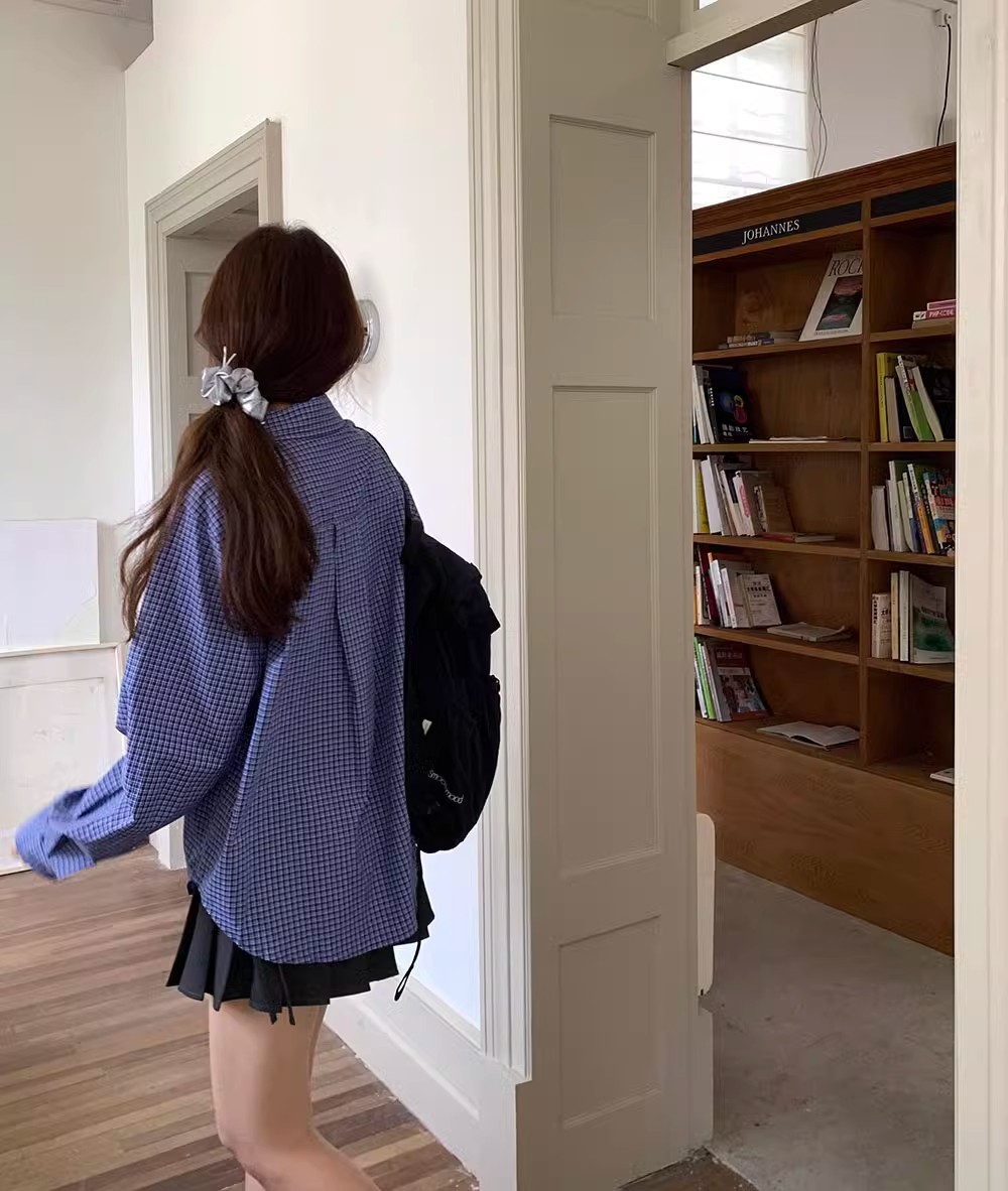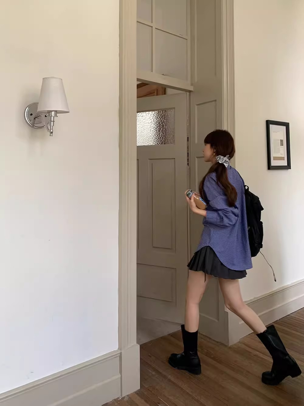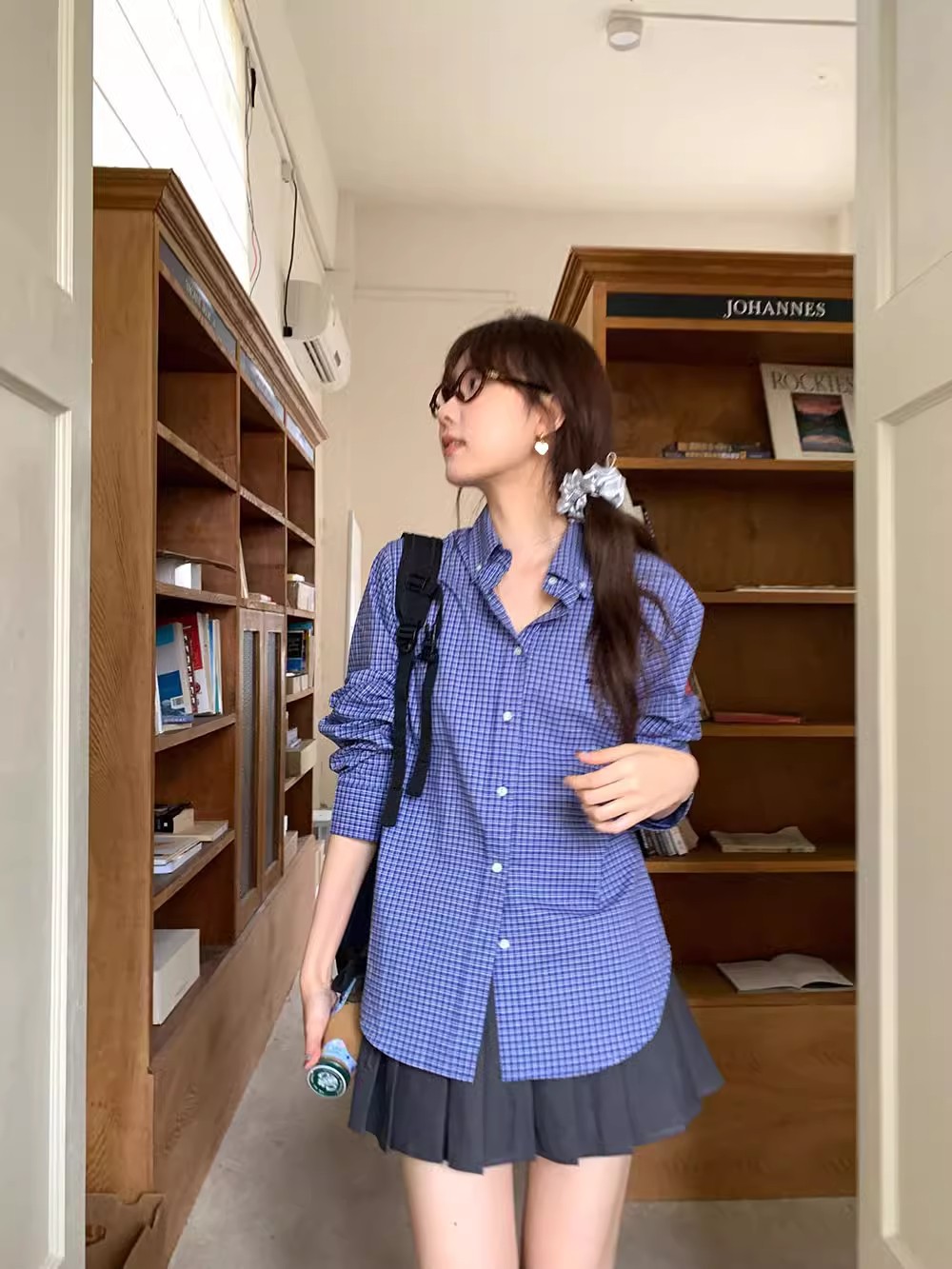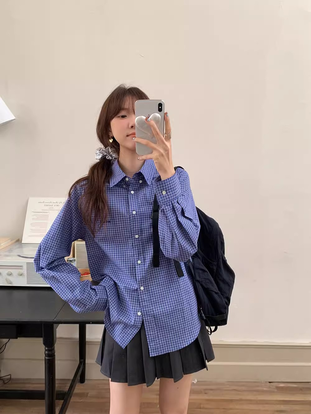 2024 봄, 가을 클라인 블루 격자 무늬 셔츠 여성 자켓 여성 패션상의스토어 가기