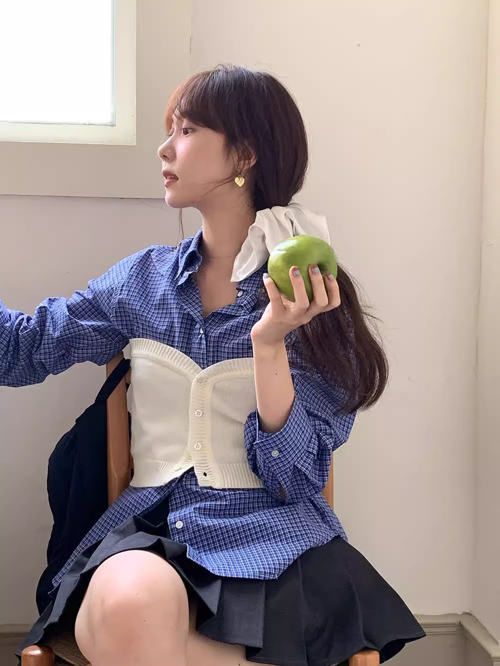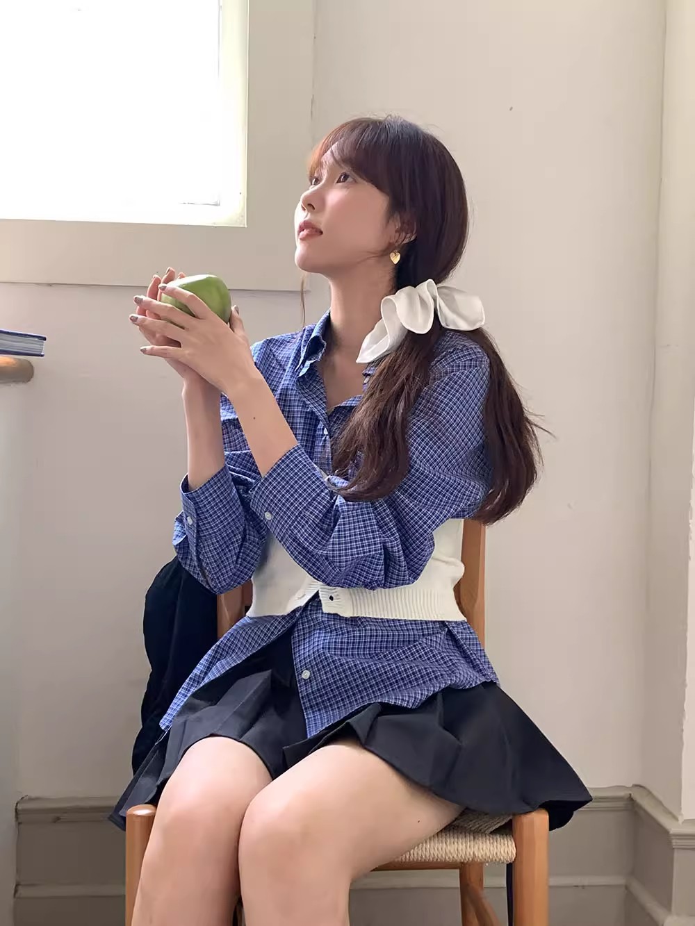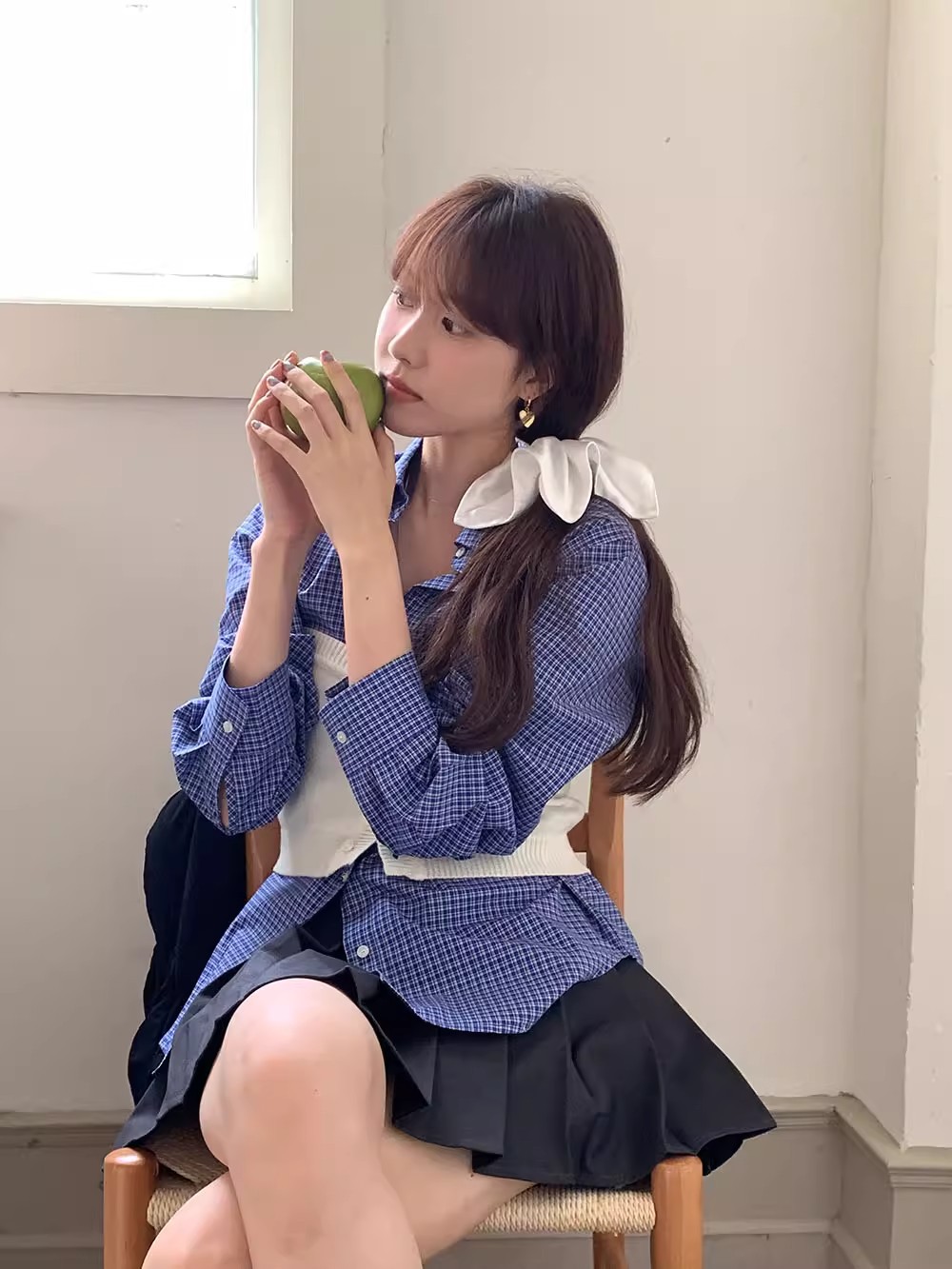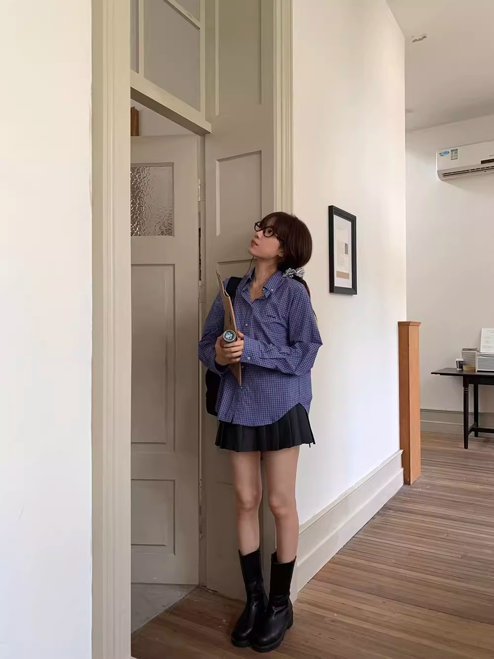 2024 봄, 가을 클라인 블루 격자 무늬 셔츠 여성 자켓 여성 패션상의스토어 가기
