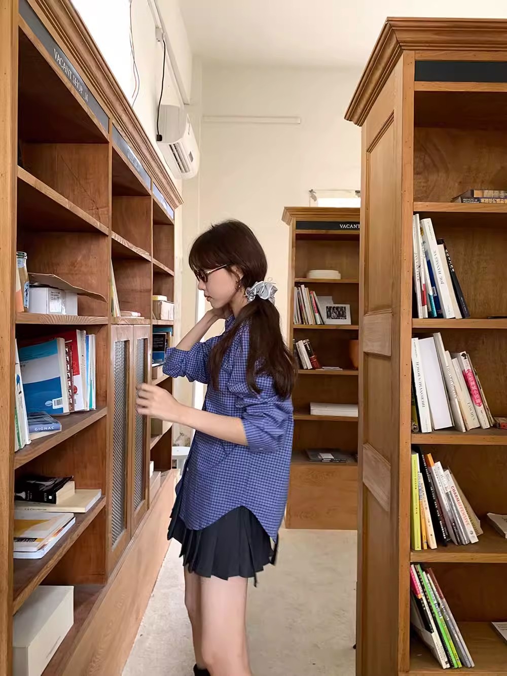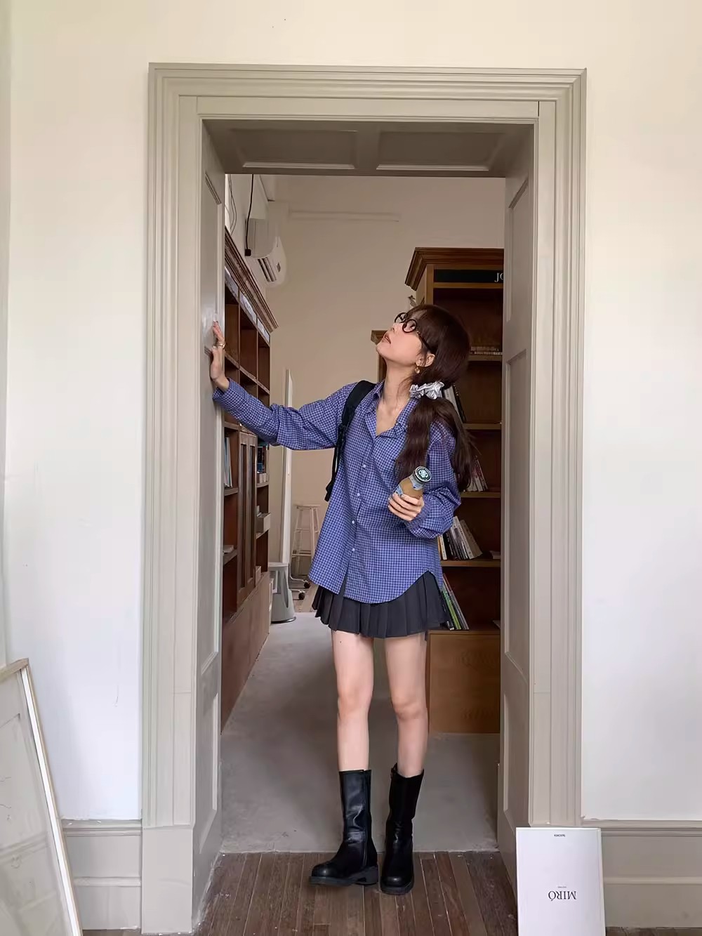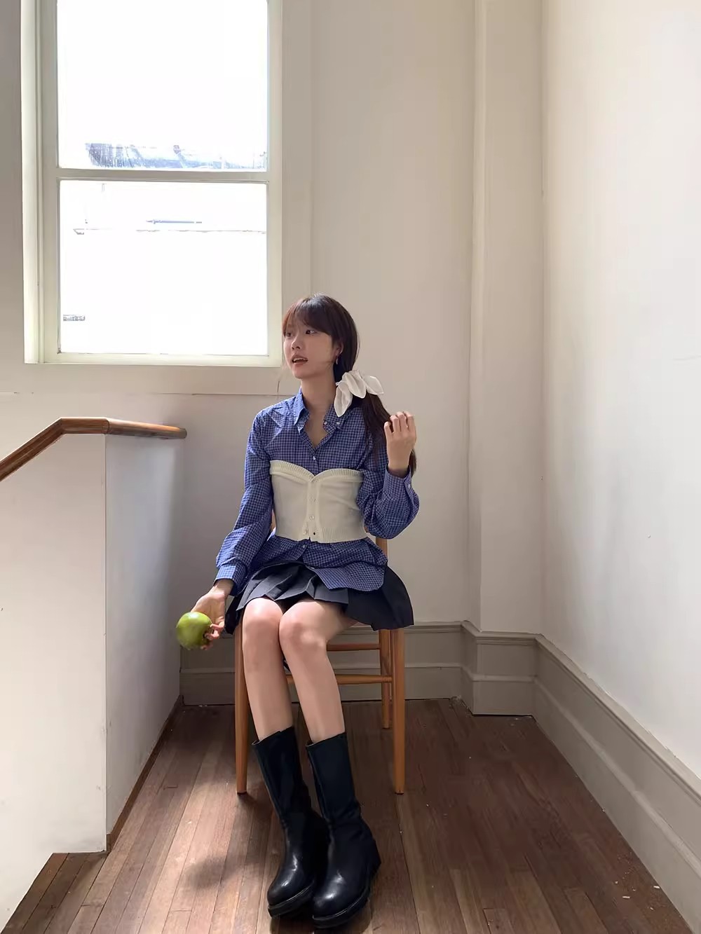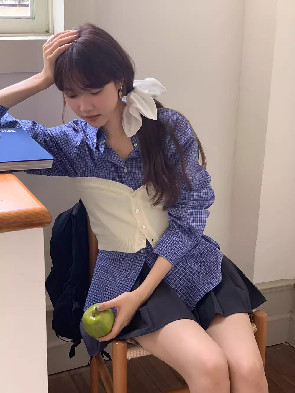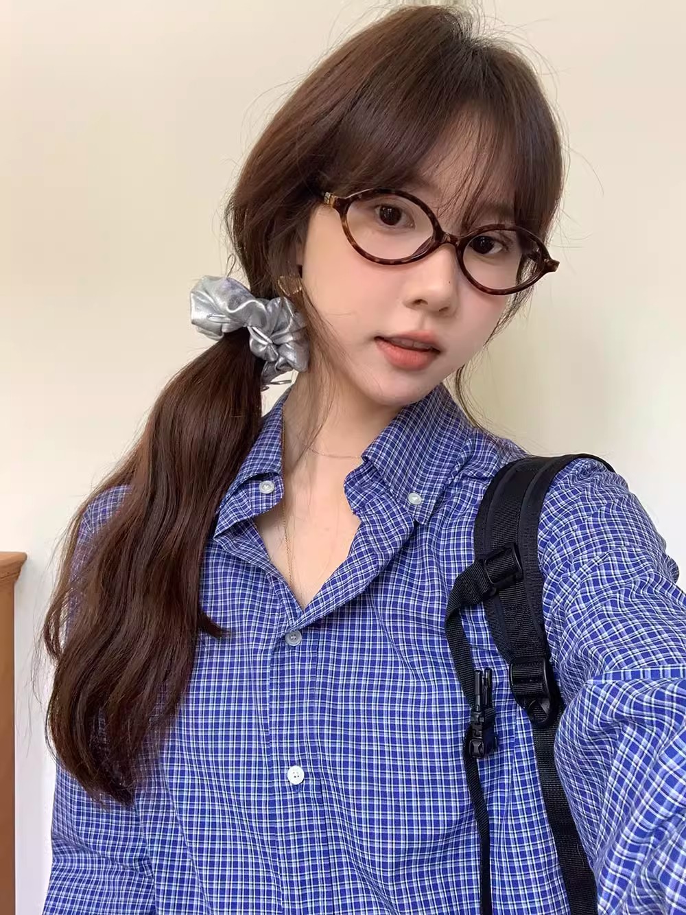 2024 봄, 가을 클라인 블루 격자 무늬 셔츠 여성 자켓 여성 패션상의스토어 가기