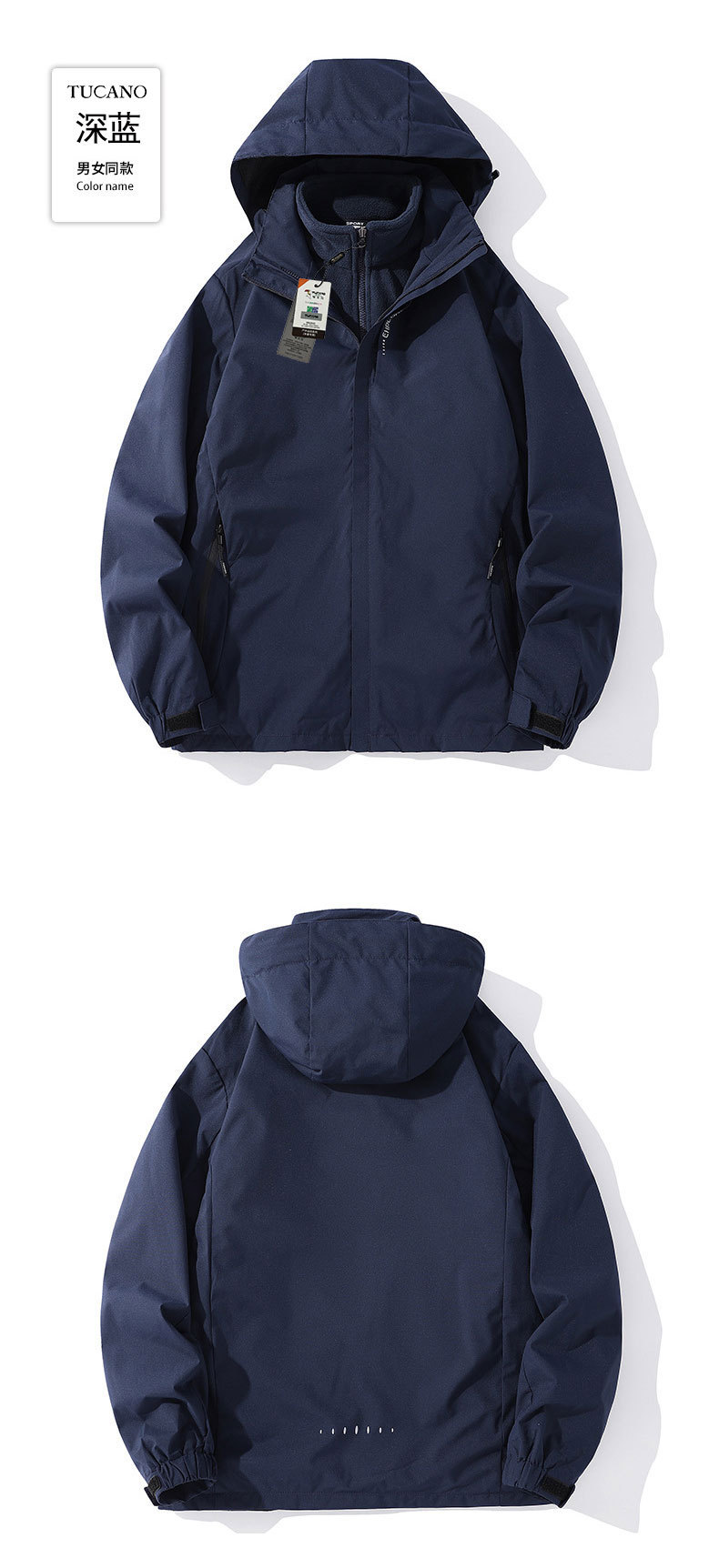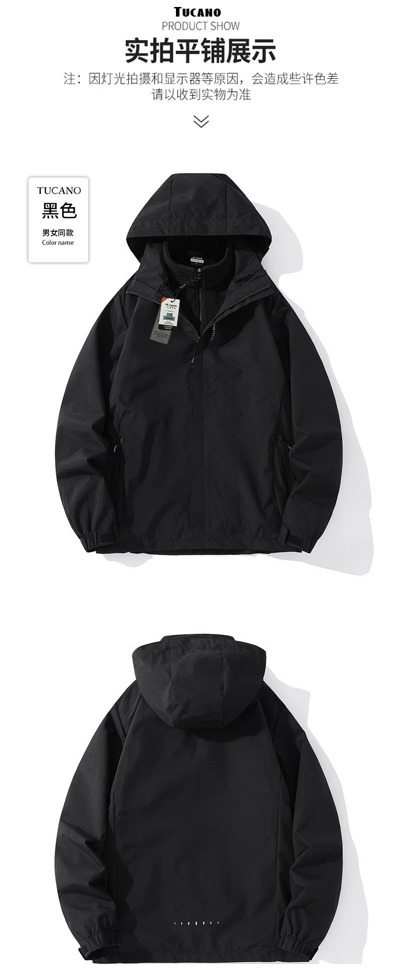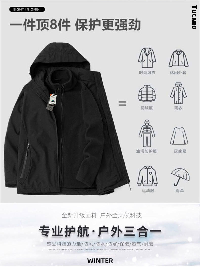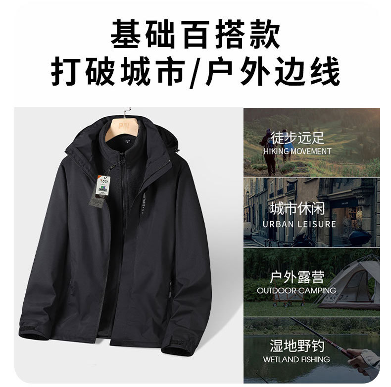 남성과 여성을 위한 재킷 2024 새로운 봄, 가을 야외 3-in-1 등산 및 등산용 검은색 방풍 재킷스토어 가기