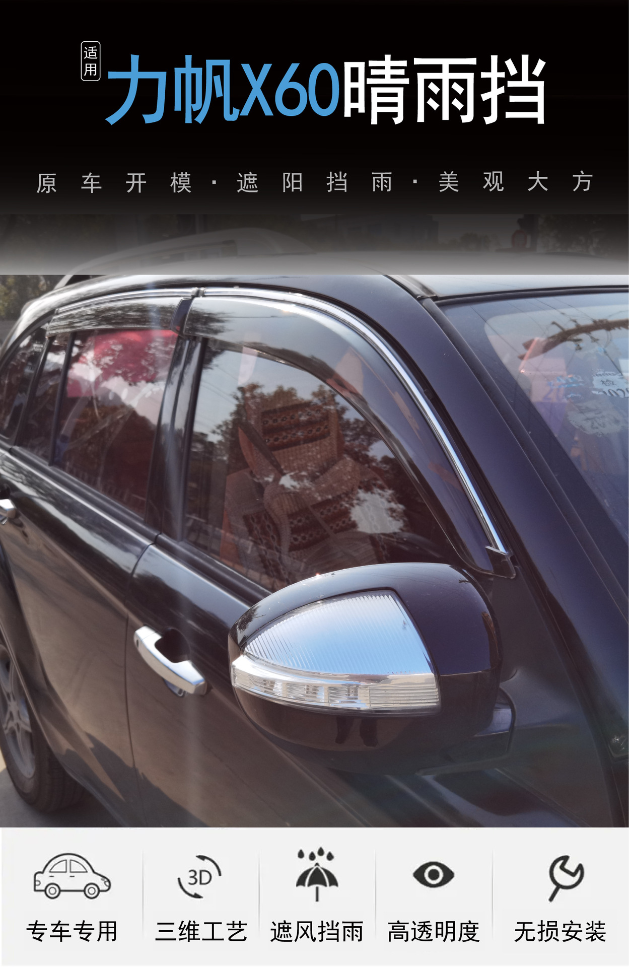2011-2015 년 Lifan Lifan X60 창 보호 비 방지 접착제 자동차 비 방패의 국경 간 응용 프로그램스토어 가기