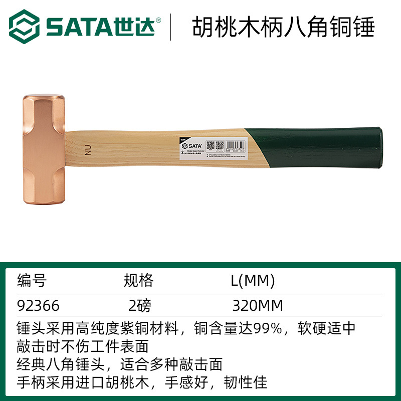 스타드 해머 호두나무 손잡이 팔각형 구리 해머 방폭 해머 1/2/3파운드 해머 92365 92366 92367