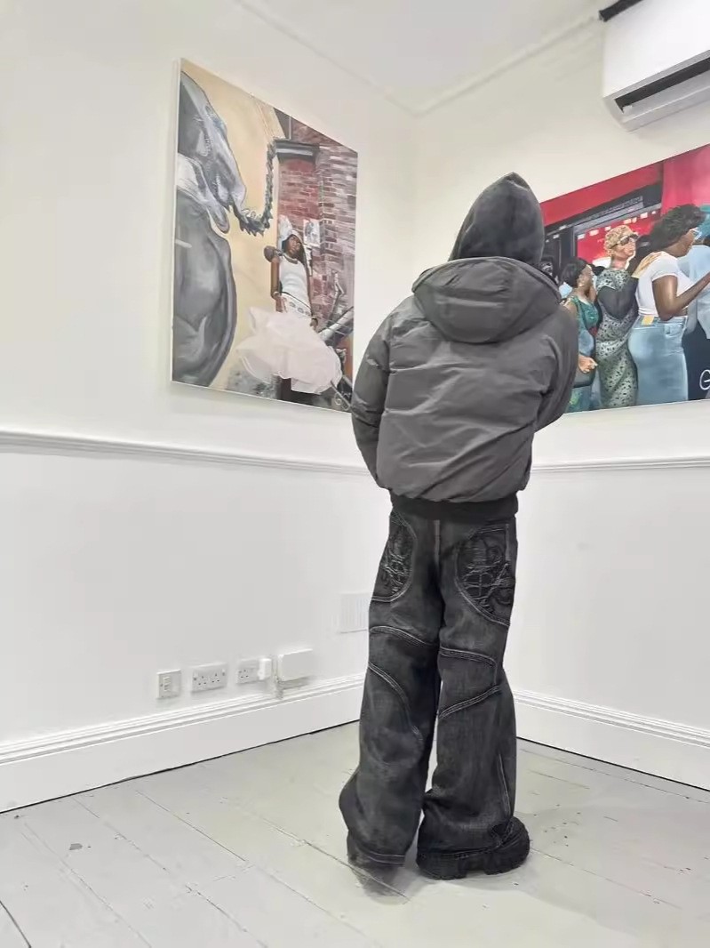 유럽과 미국의 국경 간 하이 스트리트 올드 블랙 그레이 스트레이트 청바지 여성 레트로 힙합 패션 브랜드 초가을 와이드 레그 팬츠스토어 가기