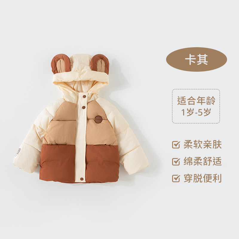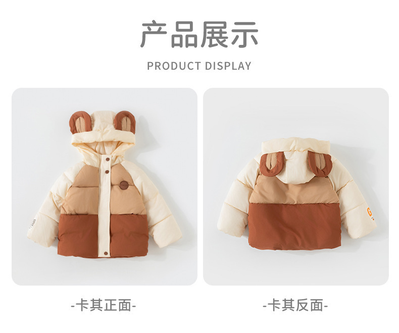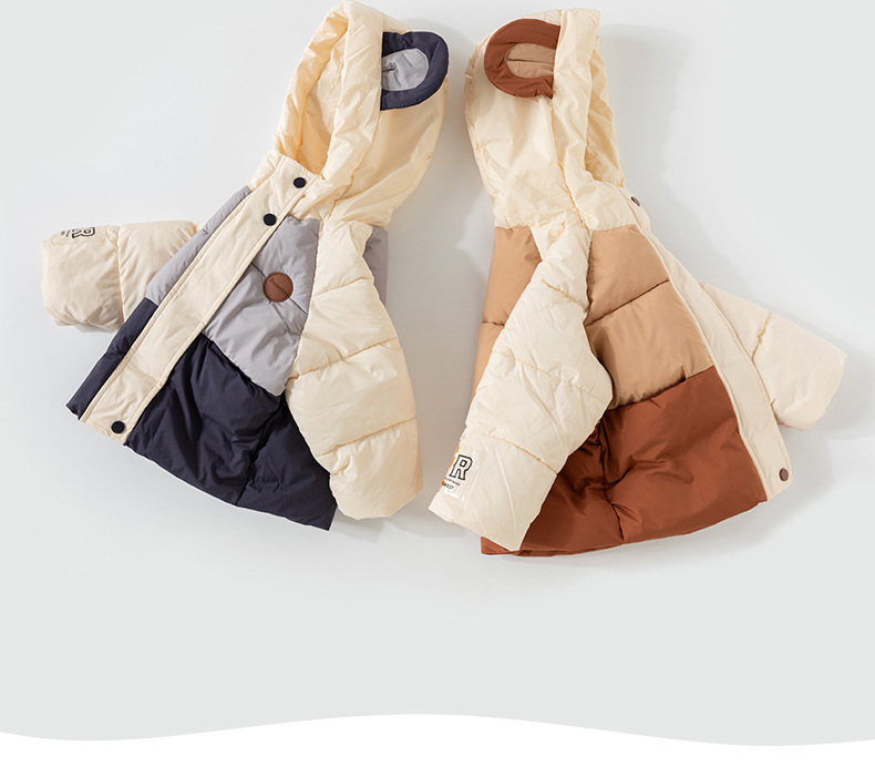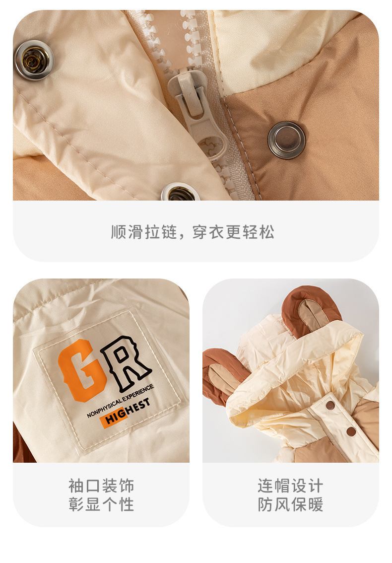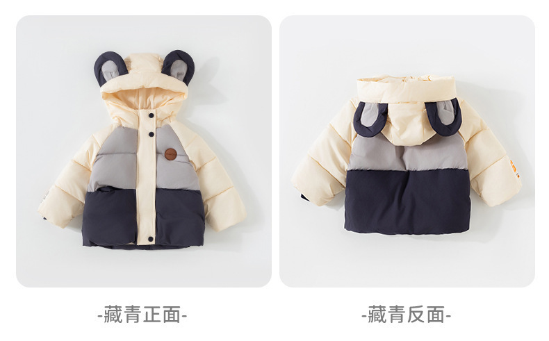 아기의면 패딩 재킷 코트 소년 소녀를위한 아기 외출 두꺼운 만화 후드 스티칭 컬러면 패딩 재킷 겨울 어린이 따뜻한 코트스토어 가기
