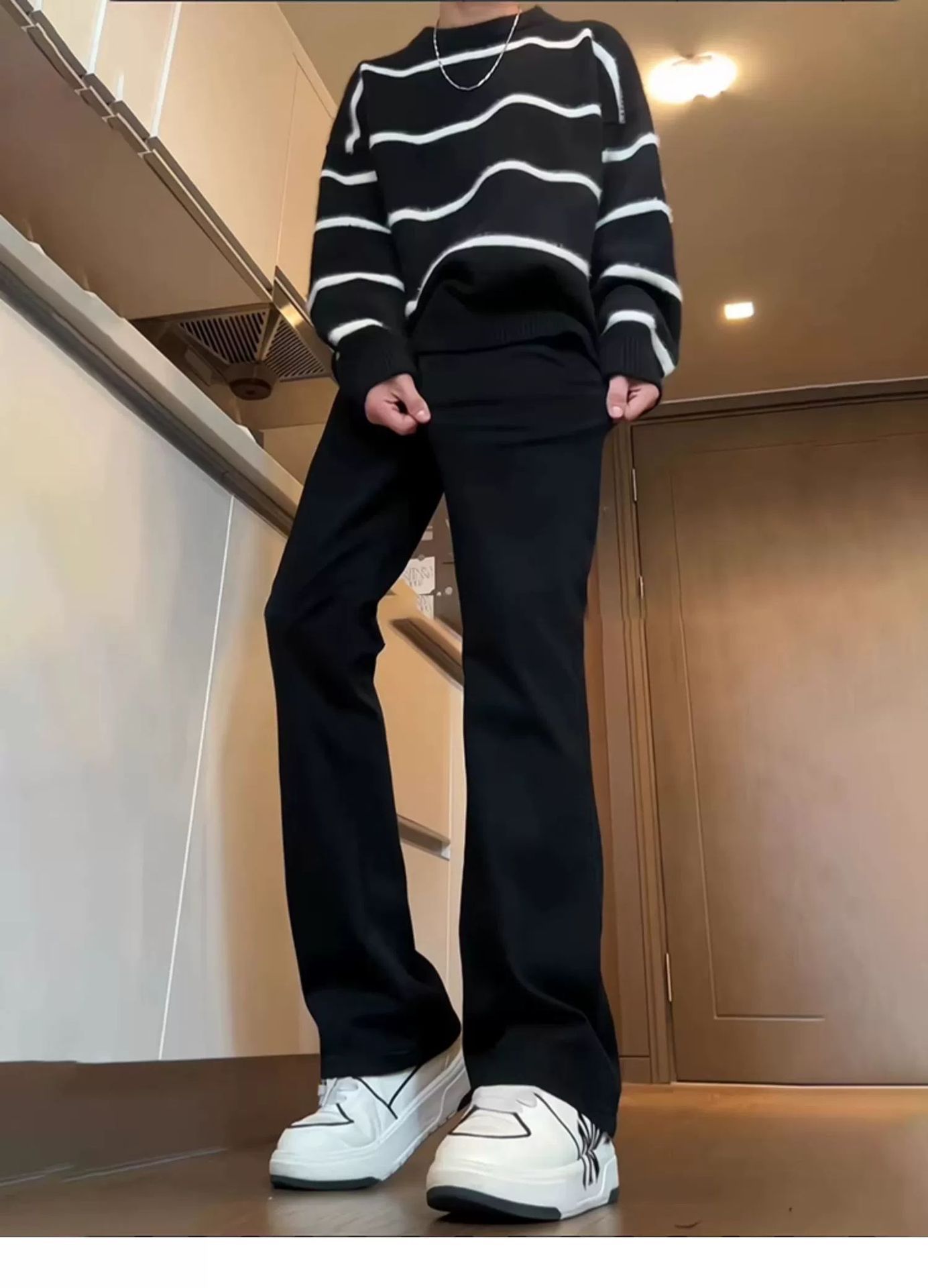 순수한 검은 색 청결한 청바지 남자의 가을과 겨울 높은 거리 약간의 바지 스트레이트 슬리밍 느슨한 넓은 다리 바지 봄과 가을스토어 가기
