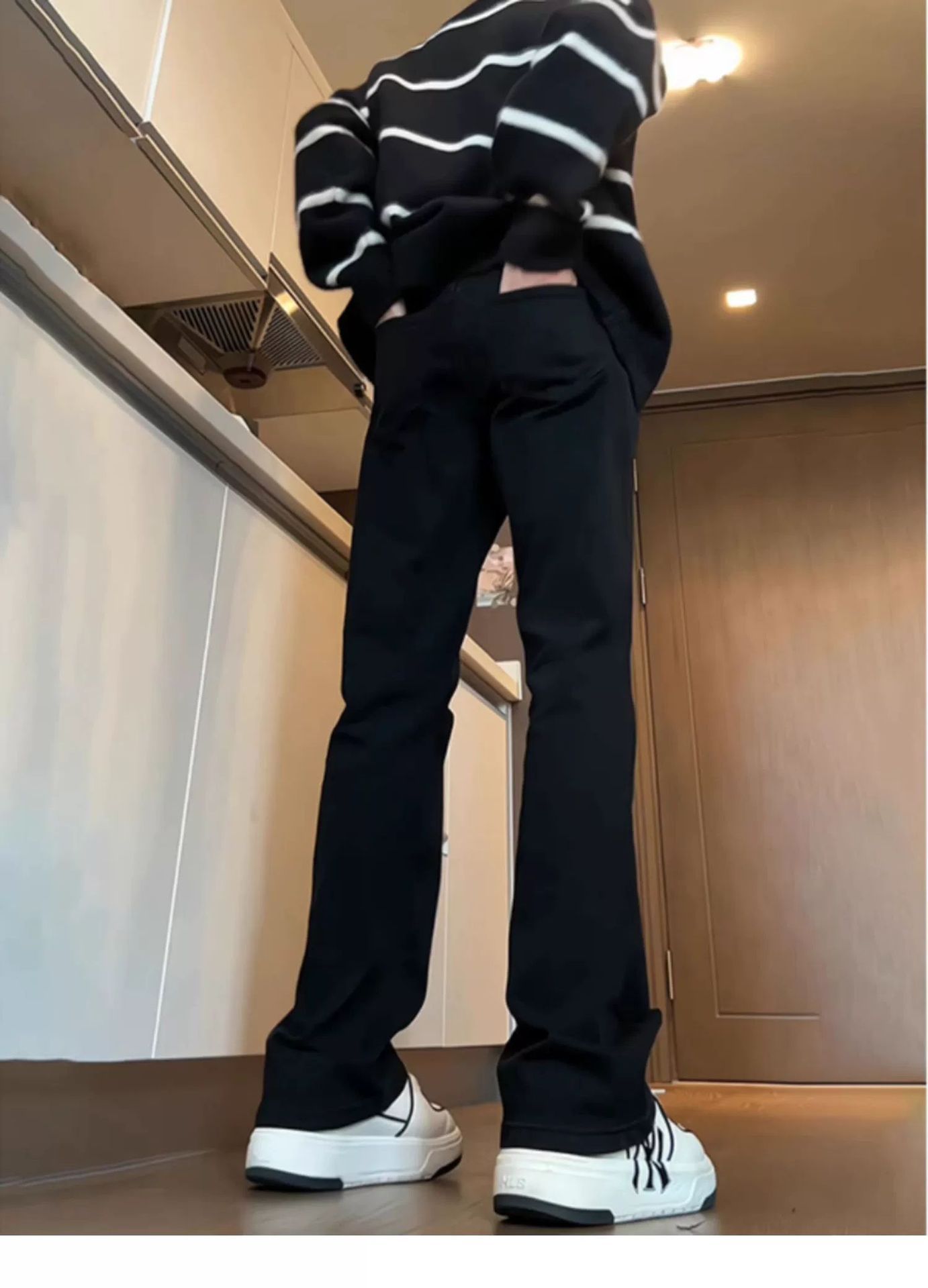 순수한 검은 색 청결한 청바지 남자의 가을과 겨울 높은 거리 약간의 바지 스트레이트 슬리밍 느슨한 넓은 다리 바지 봄과 가을