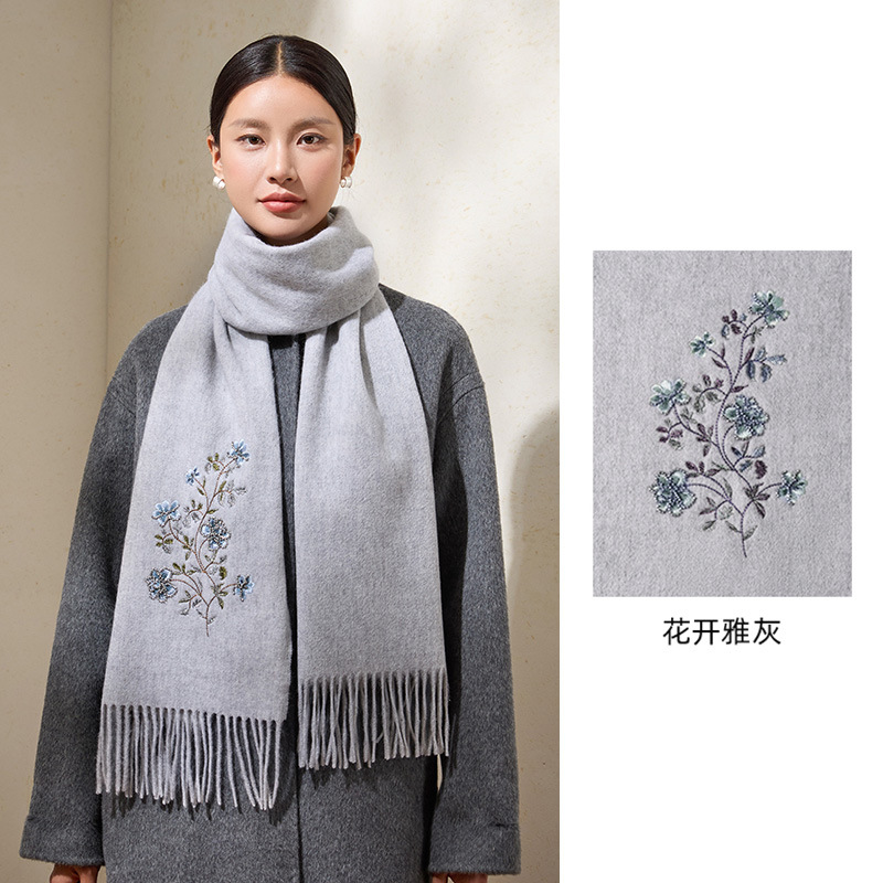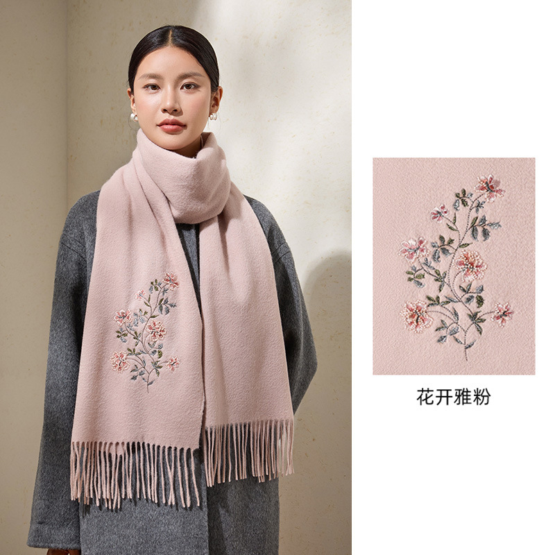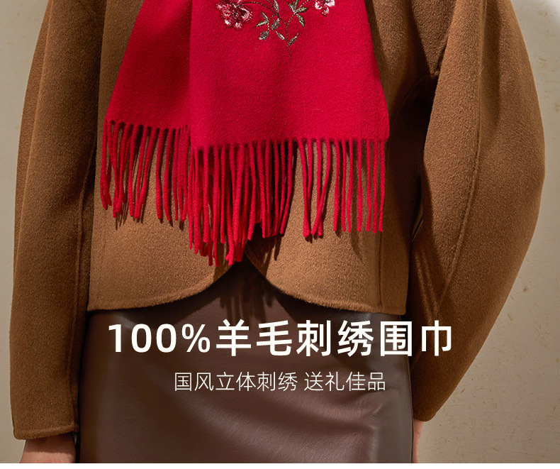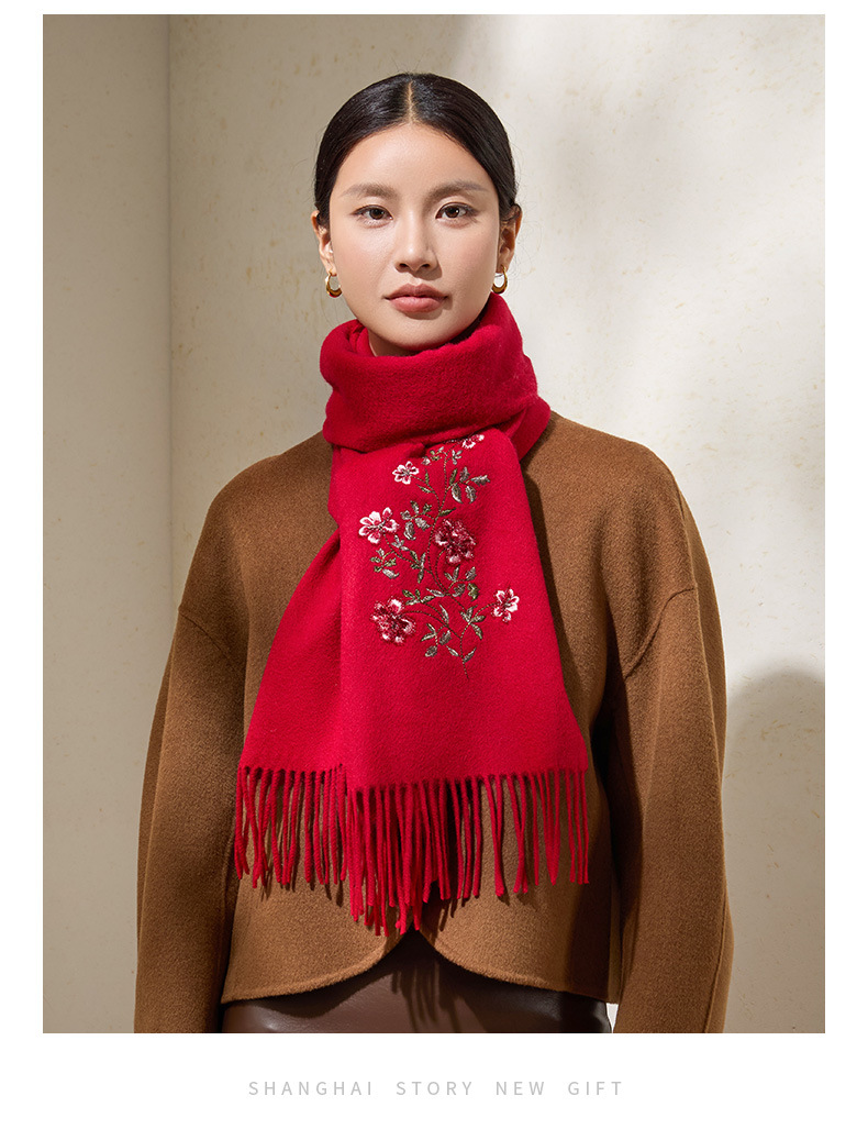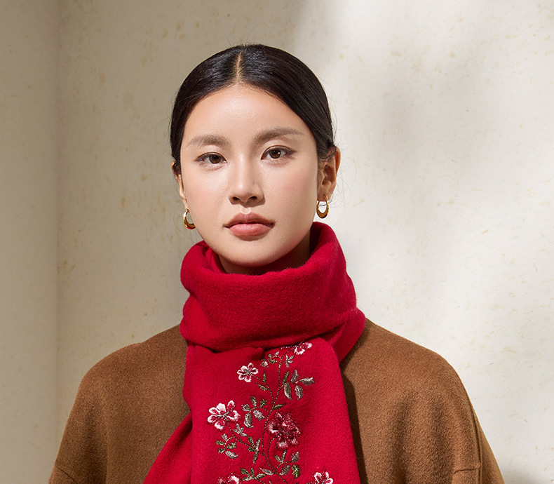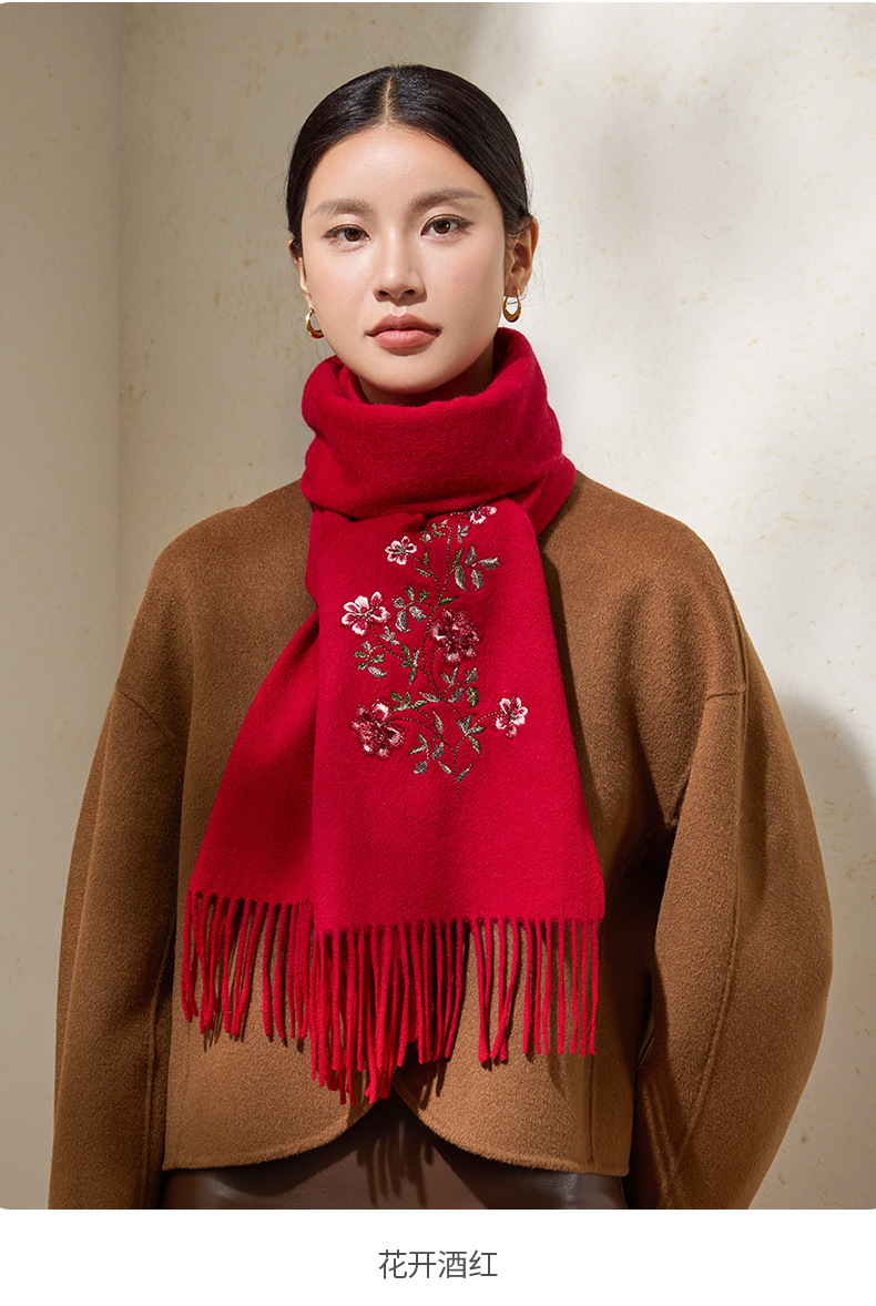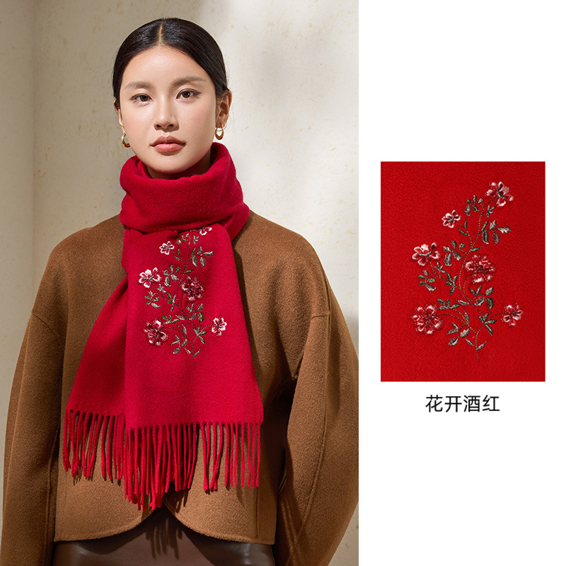 꽃 버건디 100 순수 양모 스카프 여성의 겨울 신년 붉은 어머니 장로의 인생 선물스토어 가기