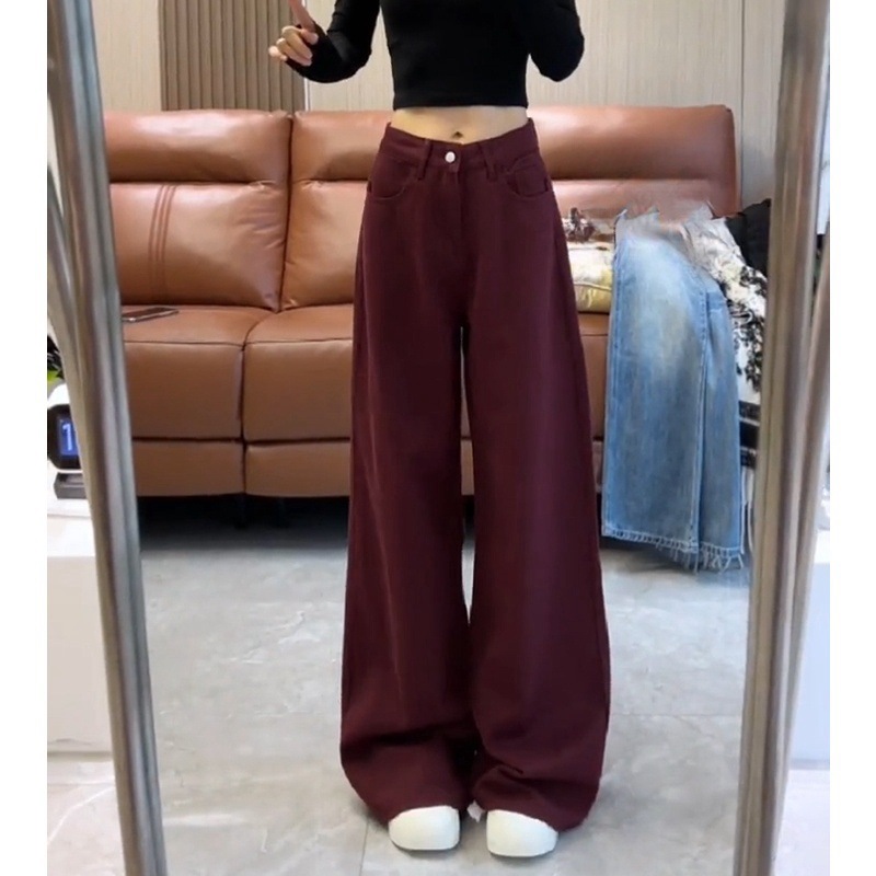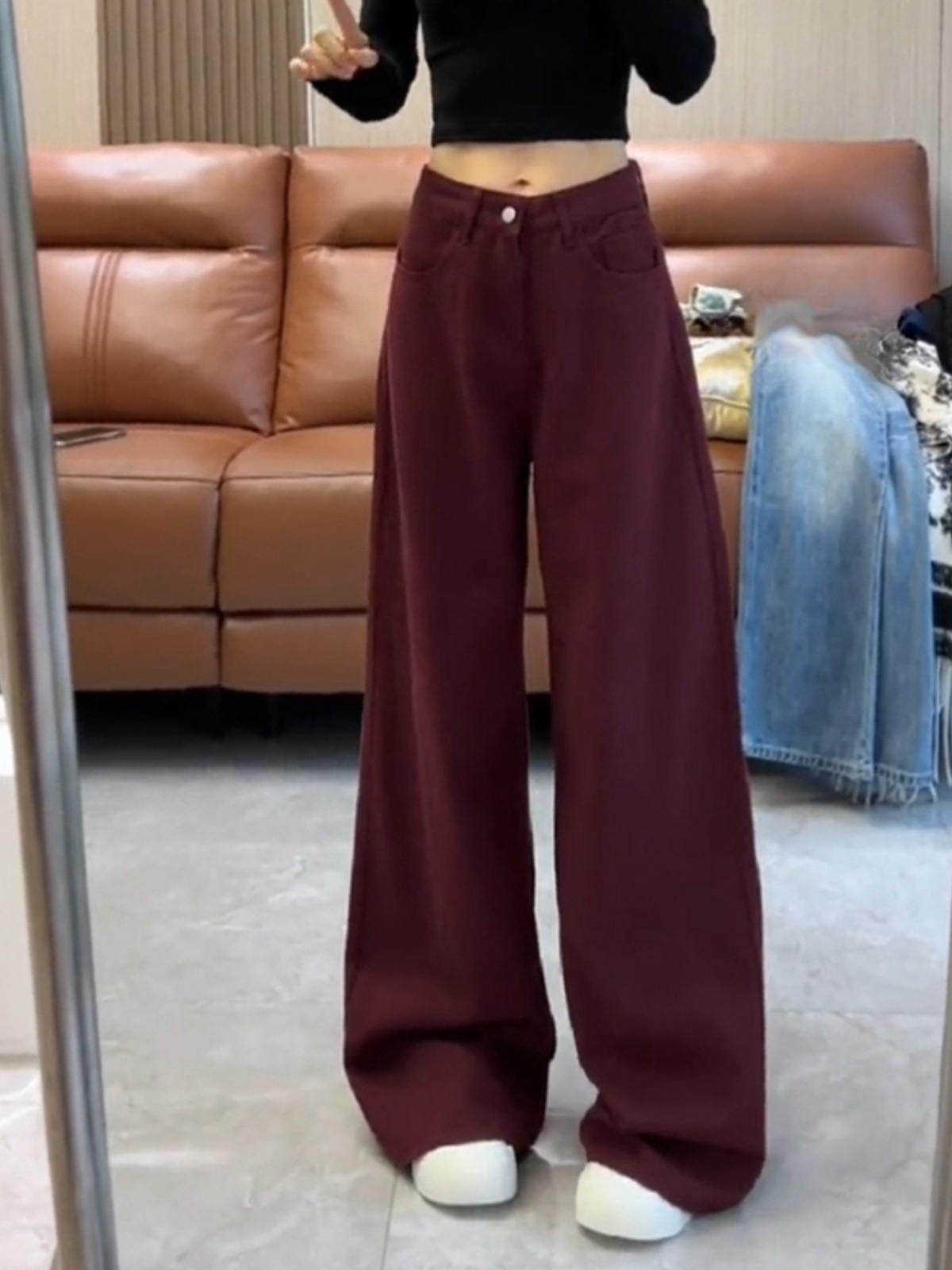 플러스 사이즈 미국 복고풍 넓은 다리 청바지 여성의 가을 2024 새로운 통통녀 느슨한 높은 허리 더미 바지스토어 가기