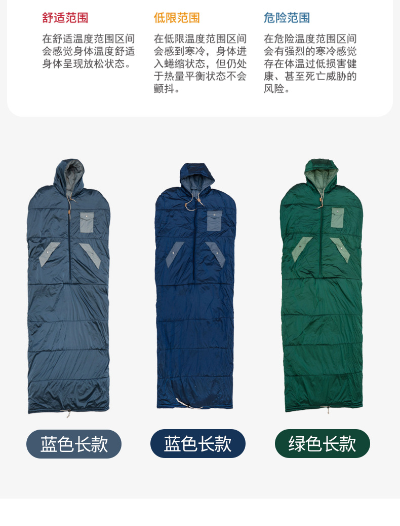 침낭 제조업체 도매 야외 캠핑용 두꺼운 보온 후드 착용 가능한 망토형 두꺼운 성인 등산용 침낭