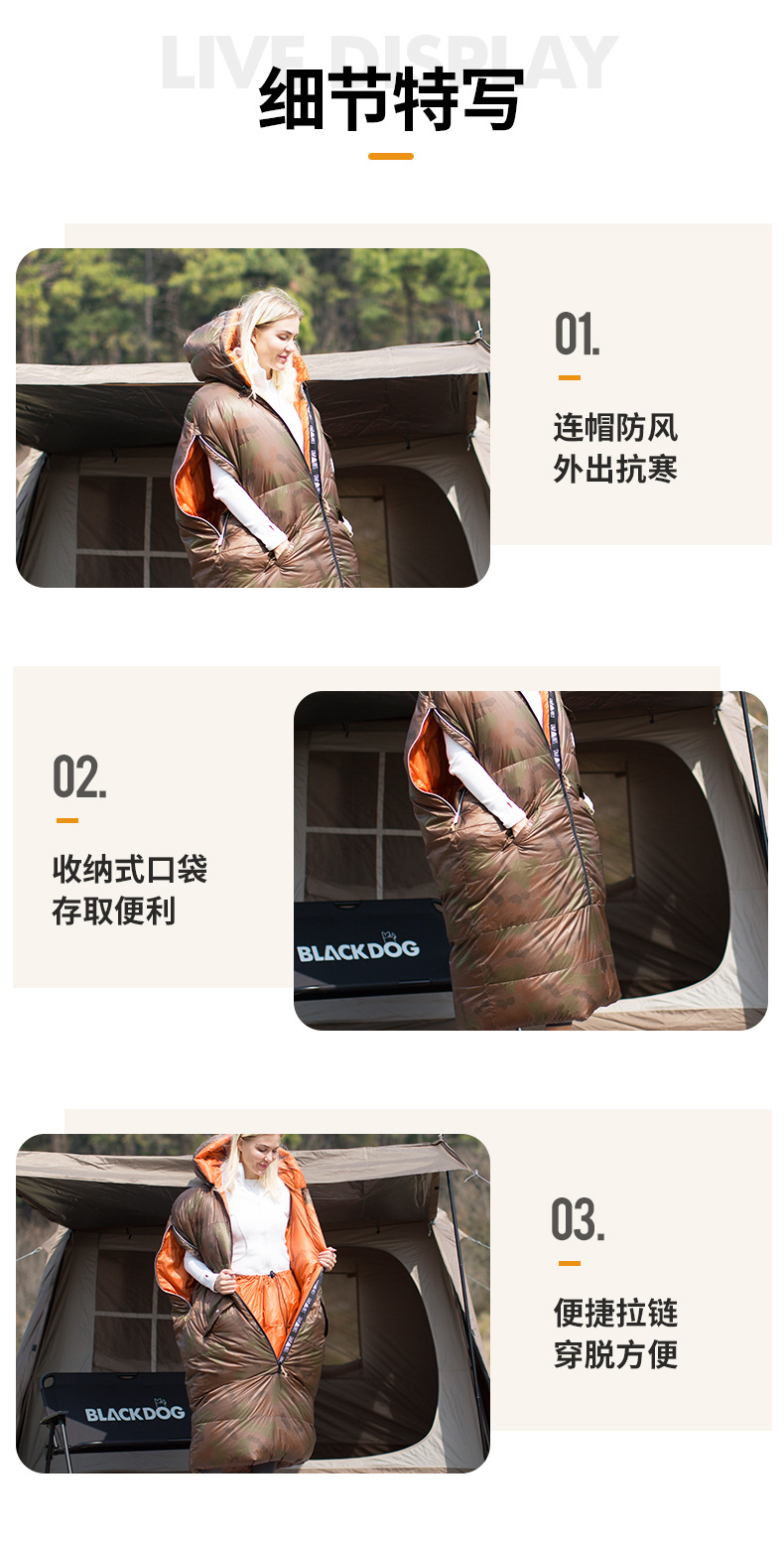 침낭 제조업체 도매 야외 캠핑용 두꺼운 보온 후드 착용 가능한 망토형 두꺼운 성인 등산용 침낭스토어 가기