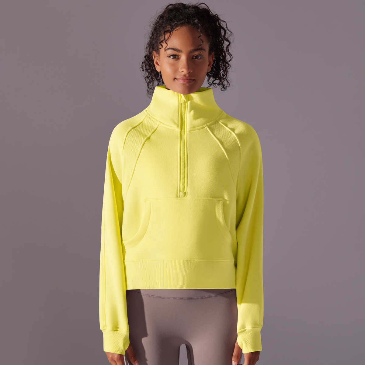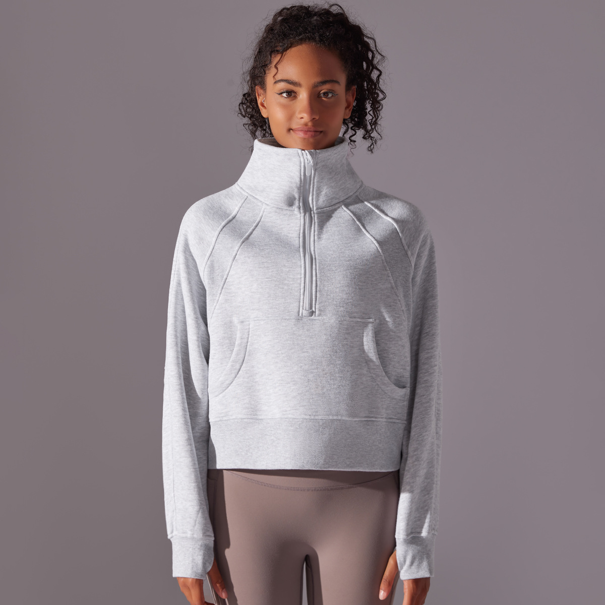 새로운 스타일 수직 칼라 지퍼 소프트 왁스 스웨트 셔츠 여성용 캐주얼 올 매치 야외 스포츠웨어 긴팔 느슨한 요가 피트니스 탑스토어 가기