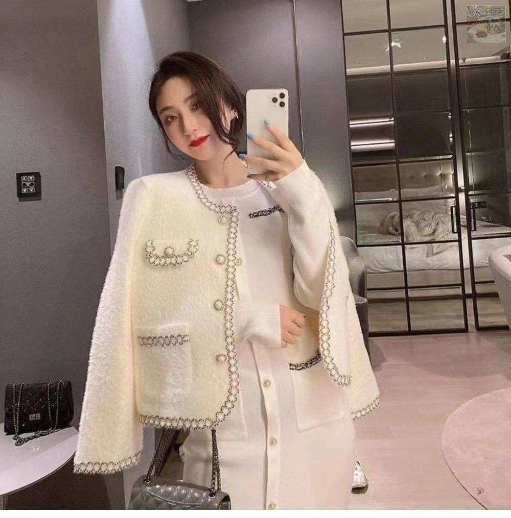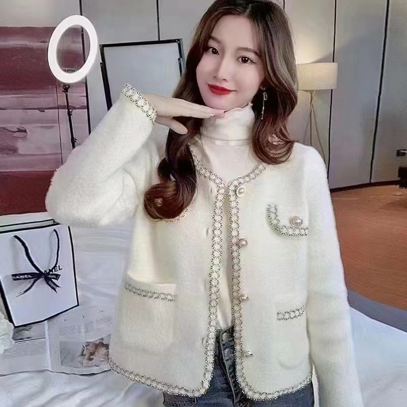 인터넷 축하 샤넬 스타일 카디건 코트 두꺼운 따뜻한 가을과 겨울 니트 스웨터 콜드 스타일 간단한 올 매치 모직 코트스토어 가기