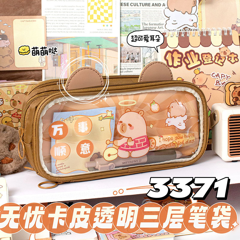 大容量三层笔袋 卡皮巴拉文具 高颜值文具盒 大容量笔袋