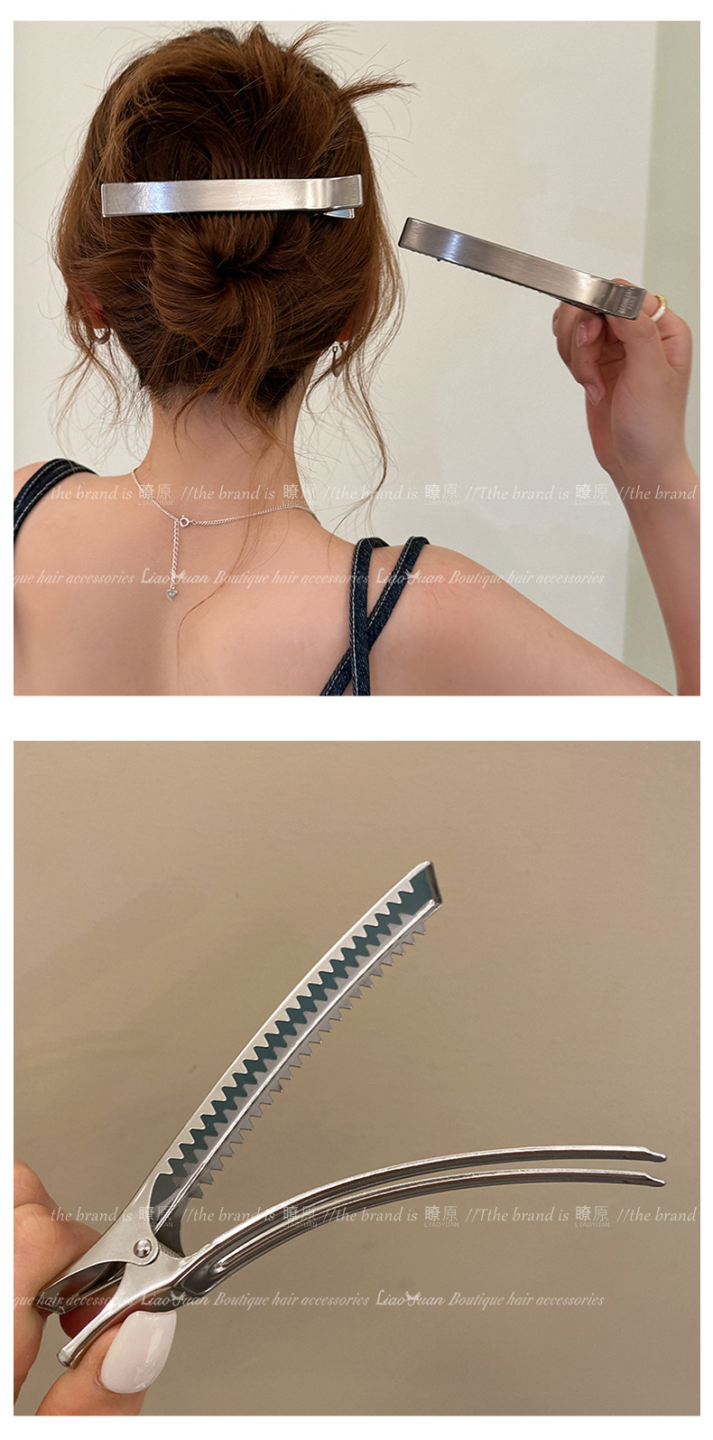 한국 스타일 간단한 금속 덕빌 클립 여성의 2024 새로운 하이 엔드 센스 한 단어 그랩 클립 뒤로 머리 머리 클립 헤어 클립 머리옷스토어 가기