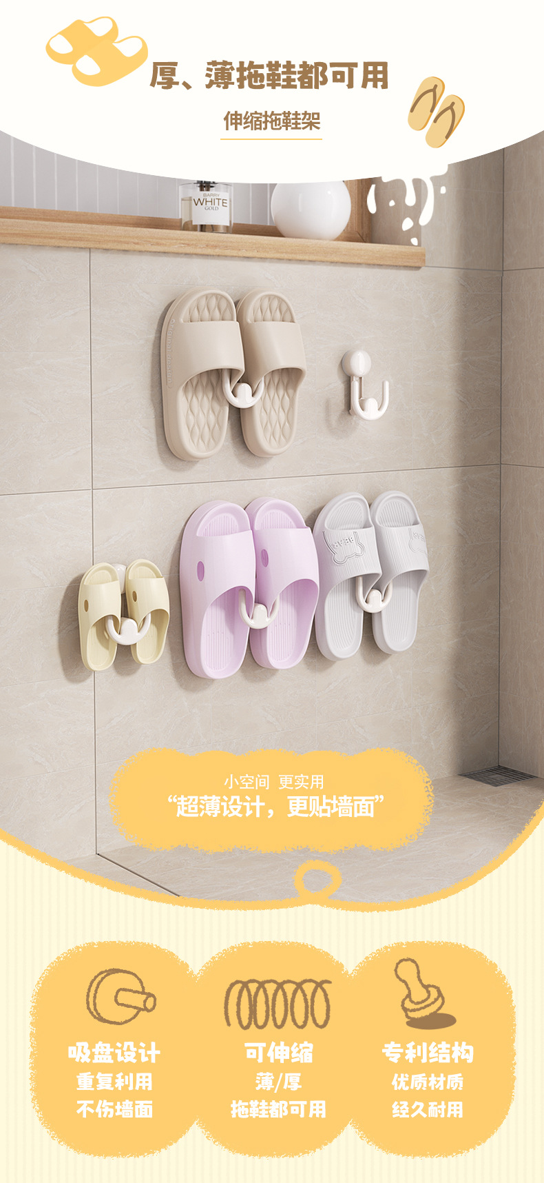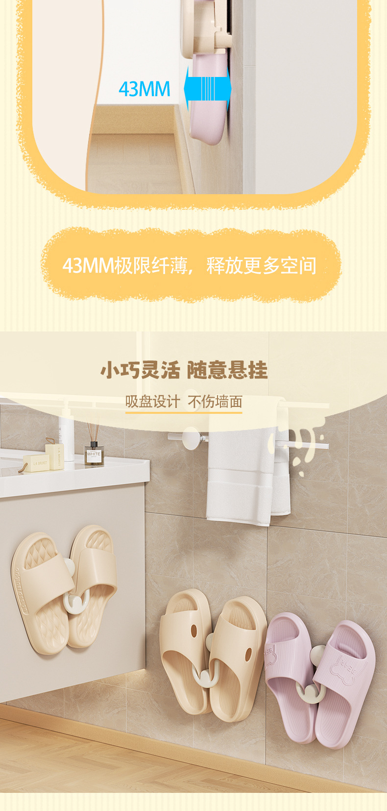 욕실 슬리퍼 랙 벽걸이 형 펀치 프리 화장실 강한 신발 보관 선반 플라스틱 후크 흡입 컵