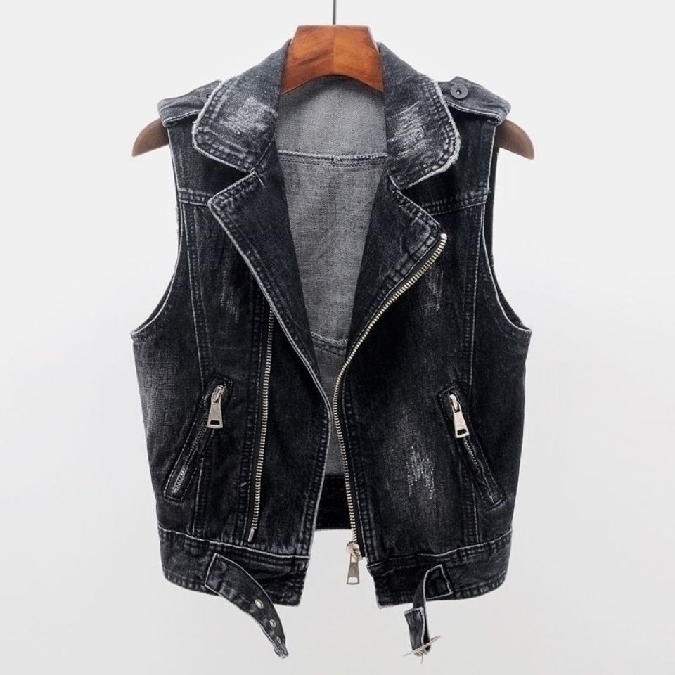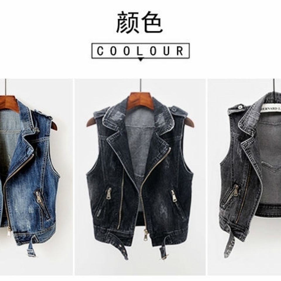 여자 데님 조끼 데님 조끼 여자 한국식 봄 · 가을 새 쇼트 올매치 리핑 오토바이 자켓스토어 가기