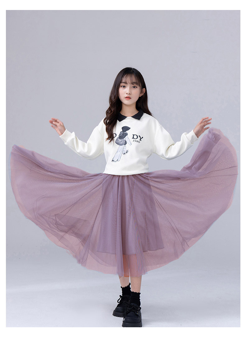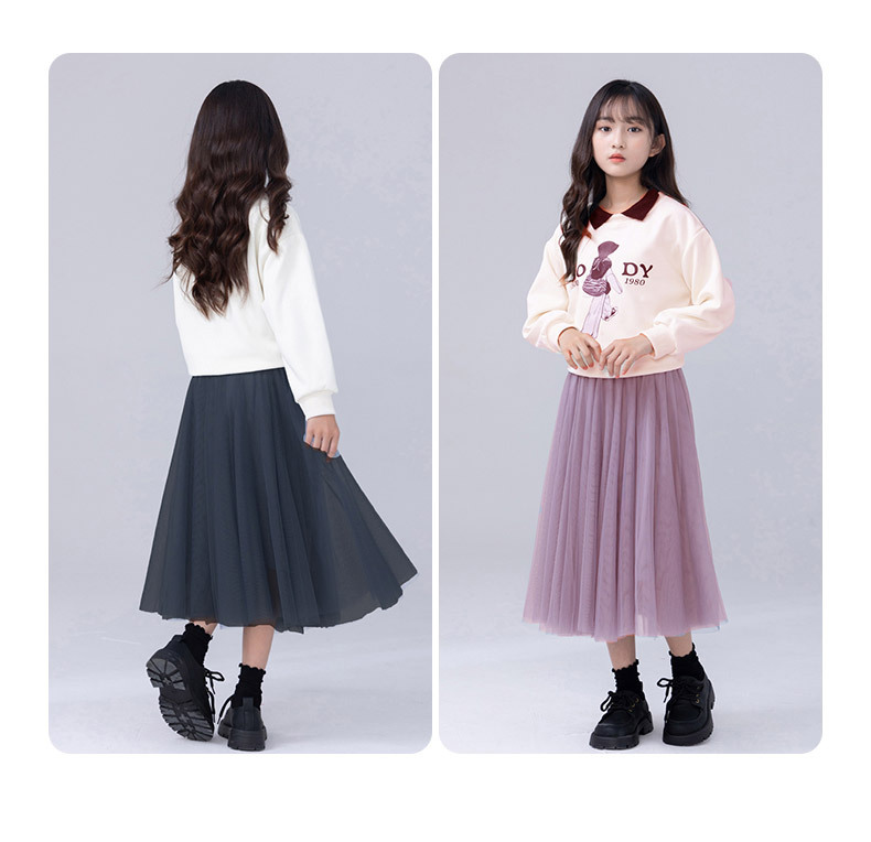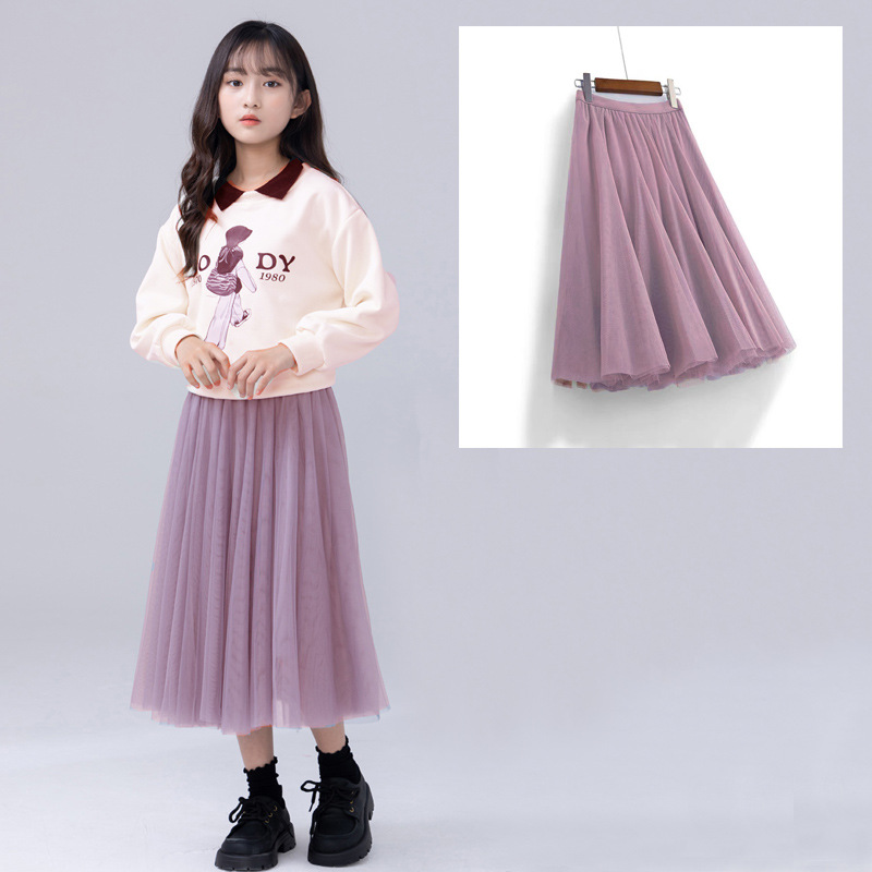 소프트 메쉬 걸스 대형 스윙 스커트 올매치 클래식 중간 길이 바느질 어린이 가장 달콤한 유행 A 라인 스커트스토어 가기