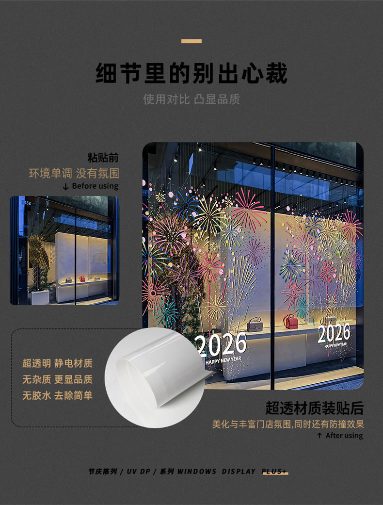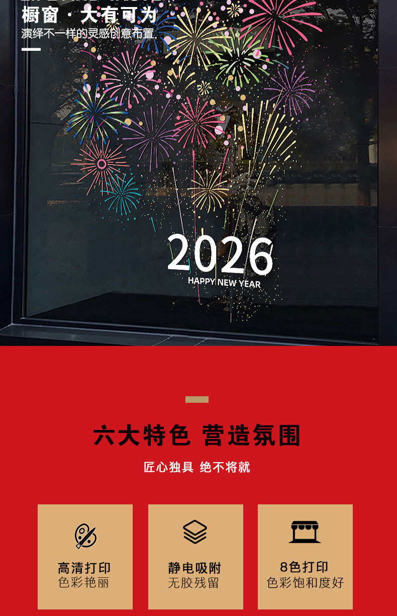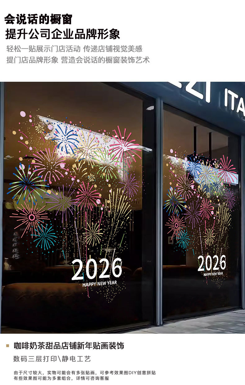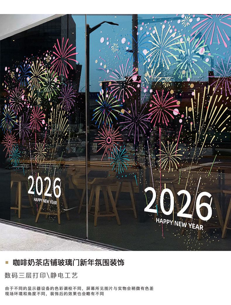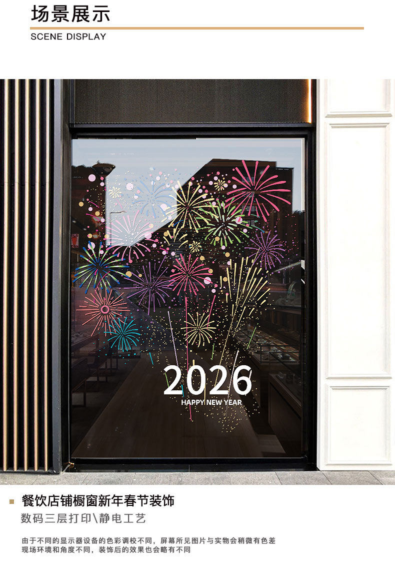 2026년 신년 장식 정전기 유리 스티커 불꽃 창문 스티커 말의 해 설날 창문 분위기 장식 창문 꽃 문 스티커스토어 가기
