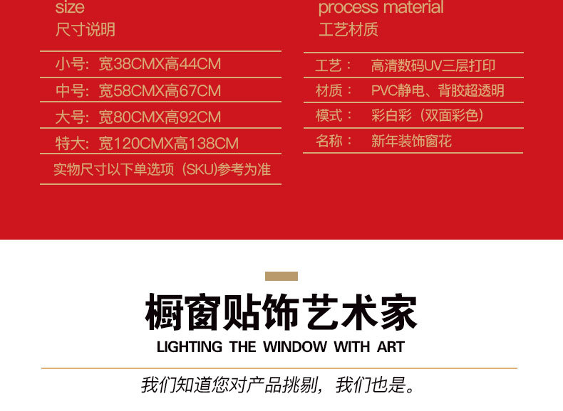 2026년 신년 장식 정전기 유리 스티커 불꽃 창문 스티커 말의 해 설날 창문 분위기 장식 창문 꽃 문 스티커