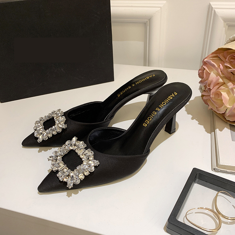 스퀘어 버클 라인스톤 바오터우 하프 슬리퍼 여성 아우터웨어 2022 년 새 스타일 얇은 힐 라지 샌들 및 슬리퍼 하이힐 뮬러 신발스토어 가기