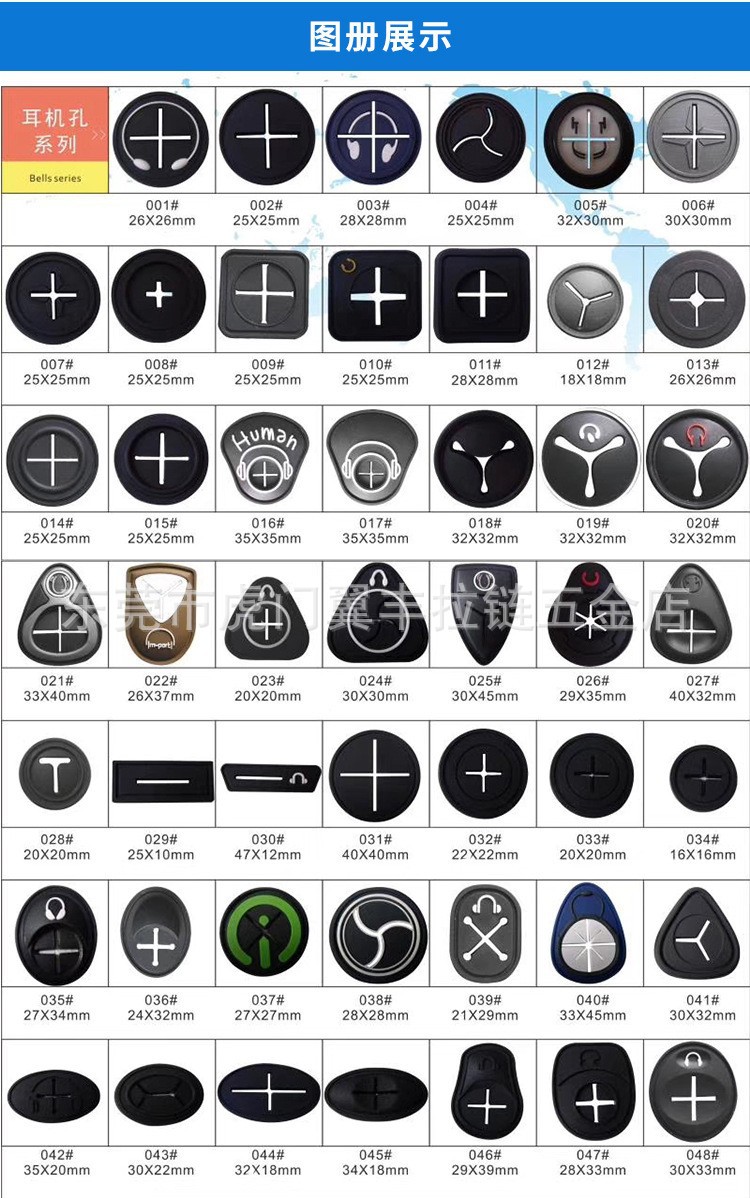 PVC 이어폰 구멍 고무 스탬프 이어폰 마크 크로스 모양의 출구 구멍 EVA 가방 가방 액세서리 드롭 플라스틱 라벨 고무 스탬프