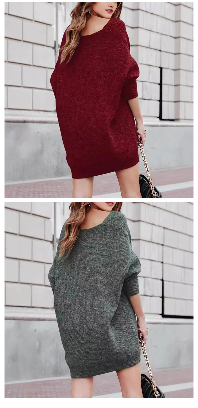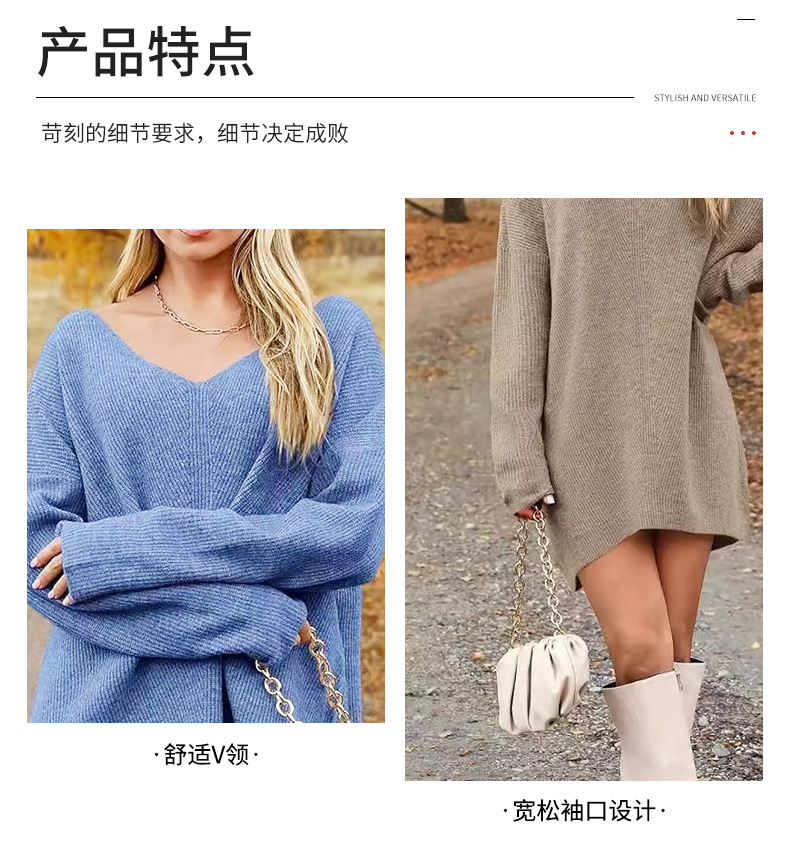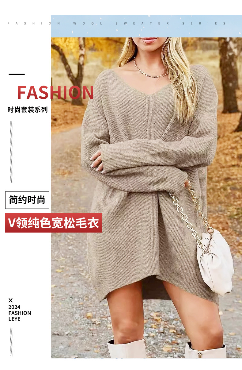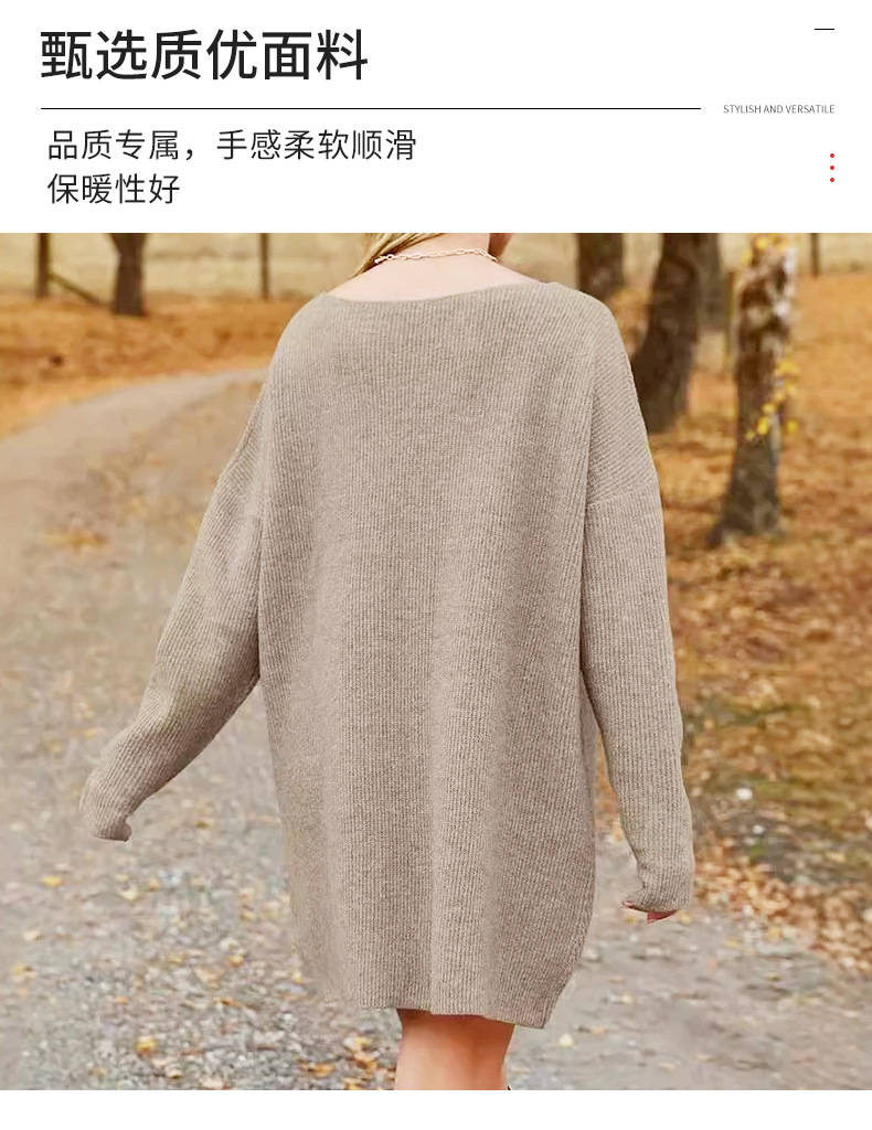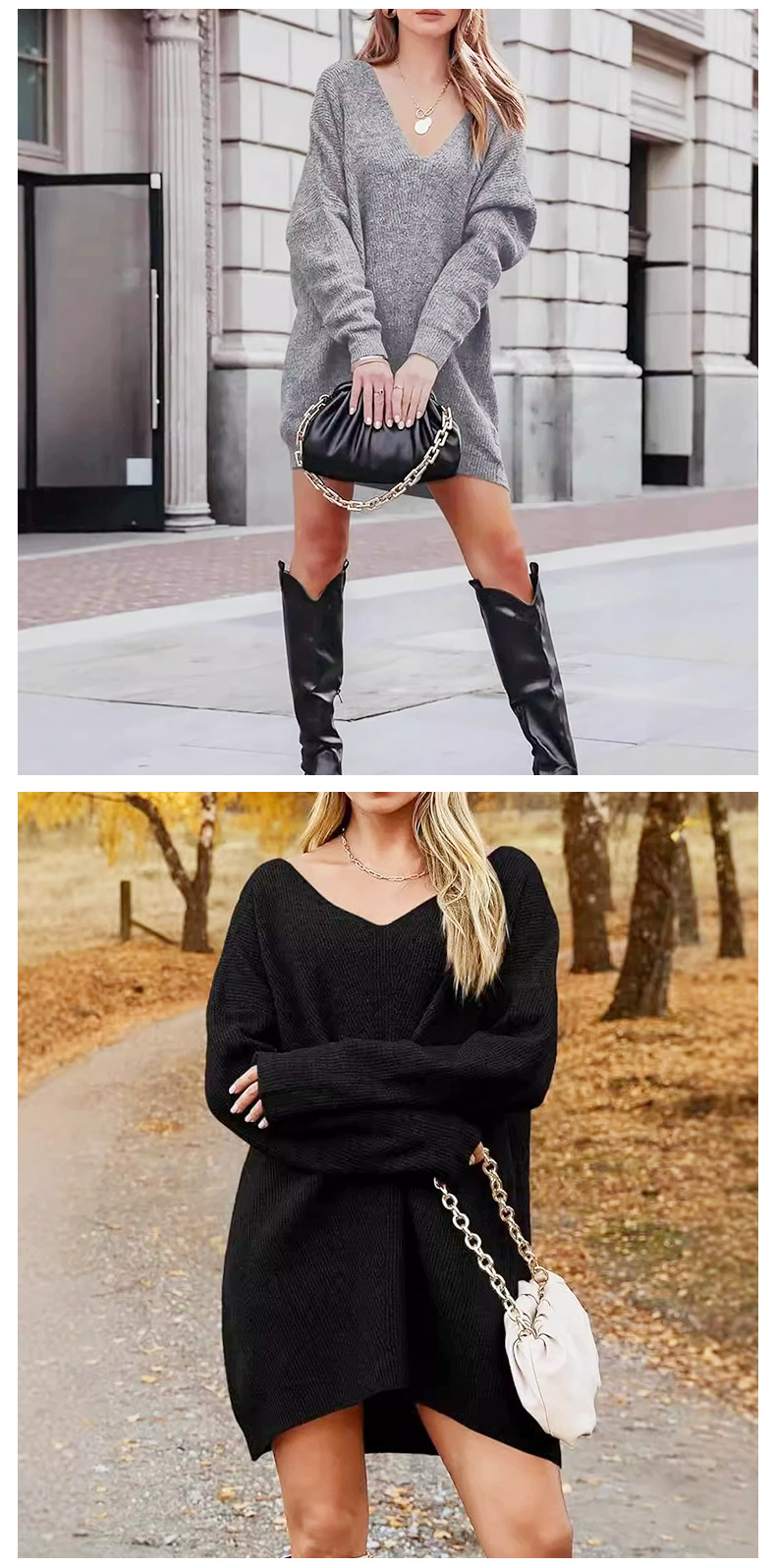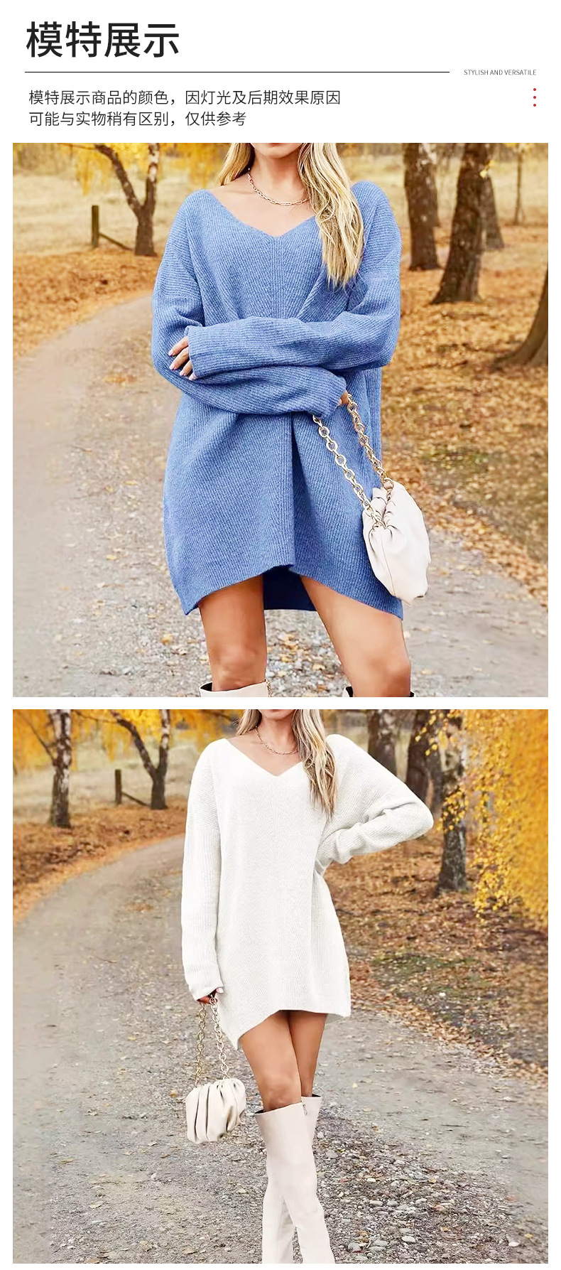 국경 간 유럽과 미국의 느슨한 V-목 중간 길이의 스웨터 원피스 가을과 겨울 게으른 풀오버 아우터 긴 소매 탑을 입고
