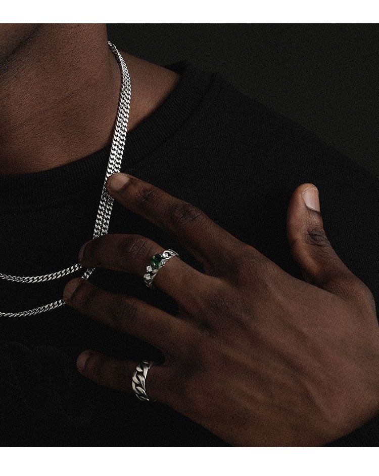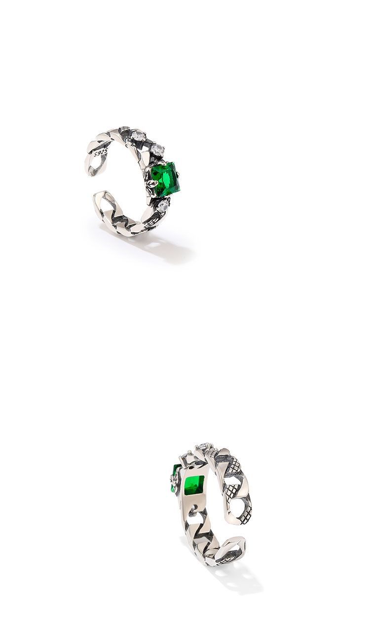 단 하나의 실버 앤티크 레트로 다이아몬드로 장식 된 그린 지르콘 링 남성과 여성을위한 힙합 패션 링 조정 가능한 오프닝