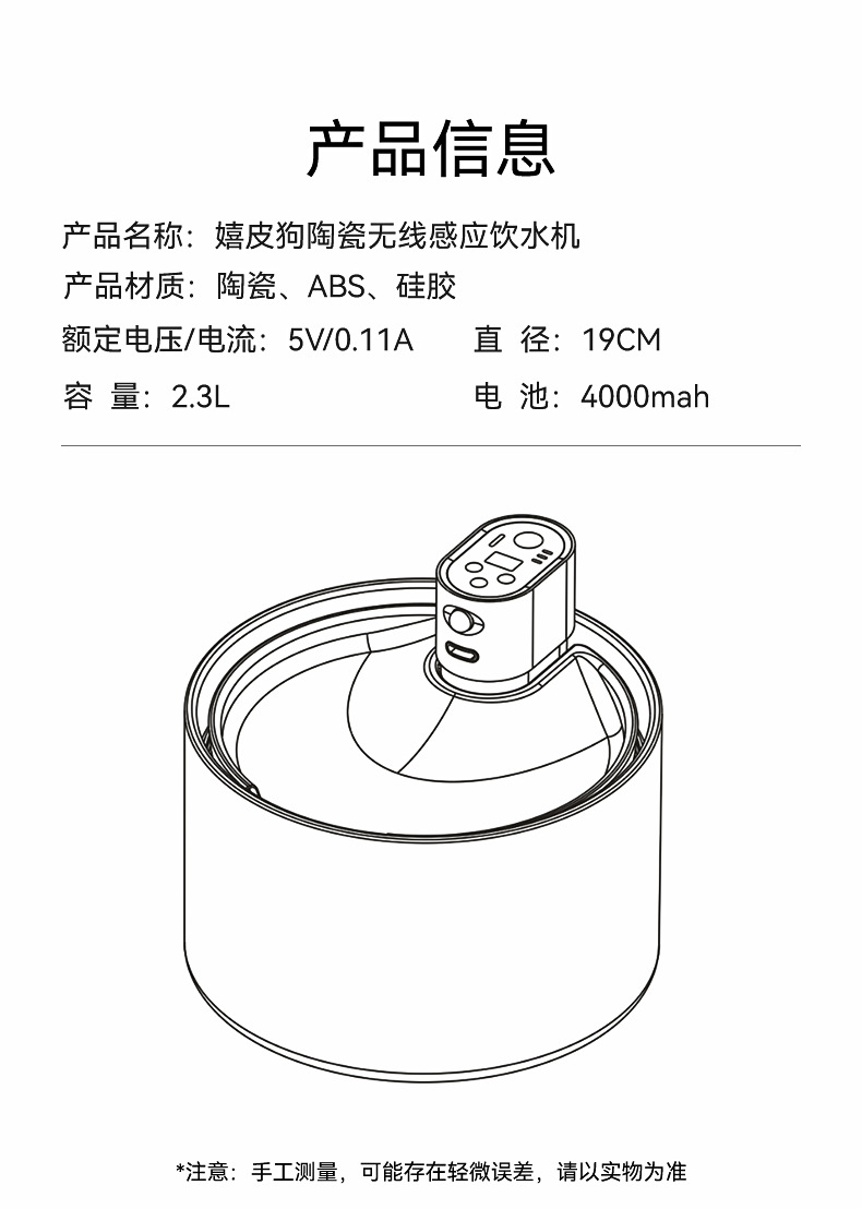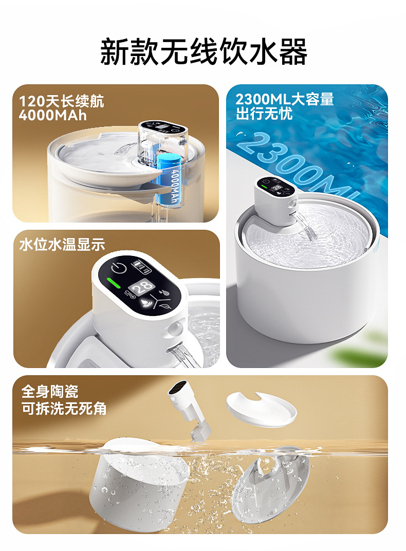 고양이 세라믹 무선 유도 물 디스펜서 unplugged 흐름 사이클 개 고양이 먹이 물 디스펜서 애완 동물 물 디스펜서