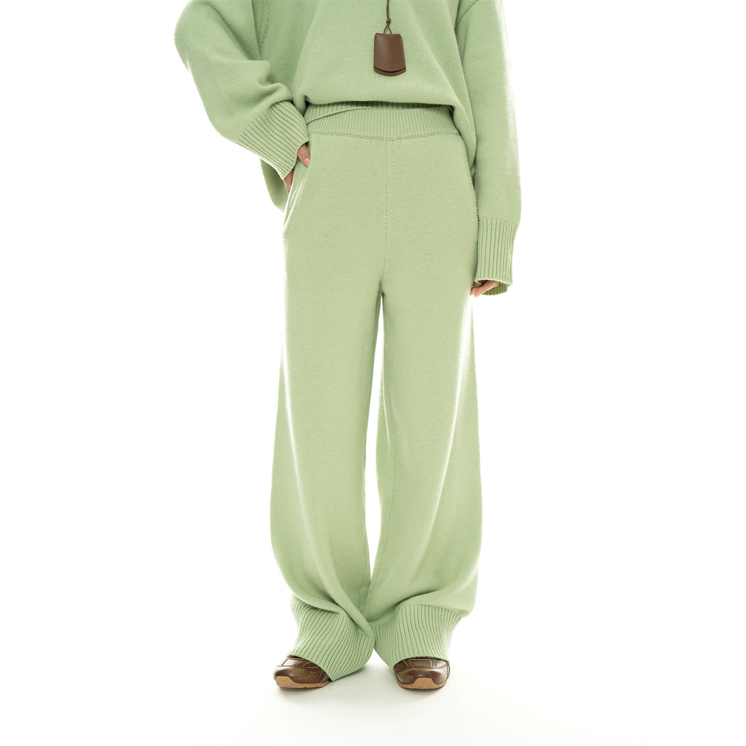 루푸 겨울 새로운 한국 스타일 게으른 양모 니트 캐주얼 바지 여성용