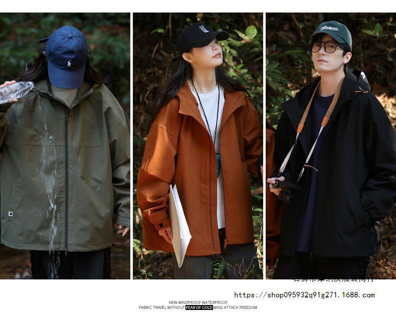 새로운 가을 재킷 남성 커플 싱글 레이어 러시 옷 남녀 후드 카디건 색상 매칭 방수 얇은 야외 등산스토어 가기