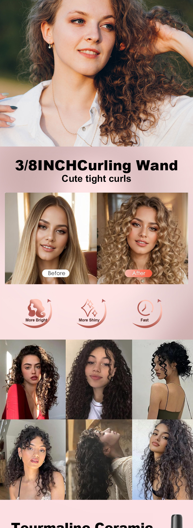국경 9mm 얇은 튜브 컬링 아이언 숙녀 솜털 헤어 컬링 아이언 세라믹 코팅 빠른 가열 컬링 아이언