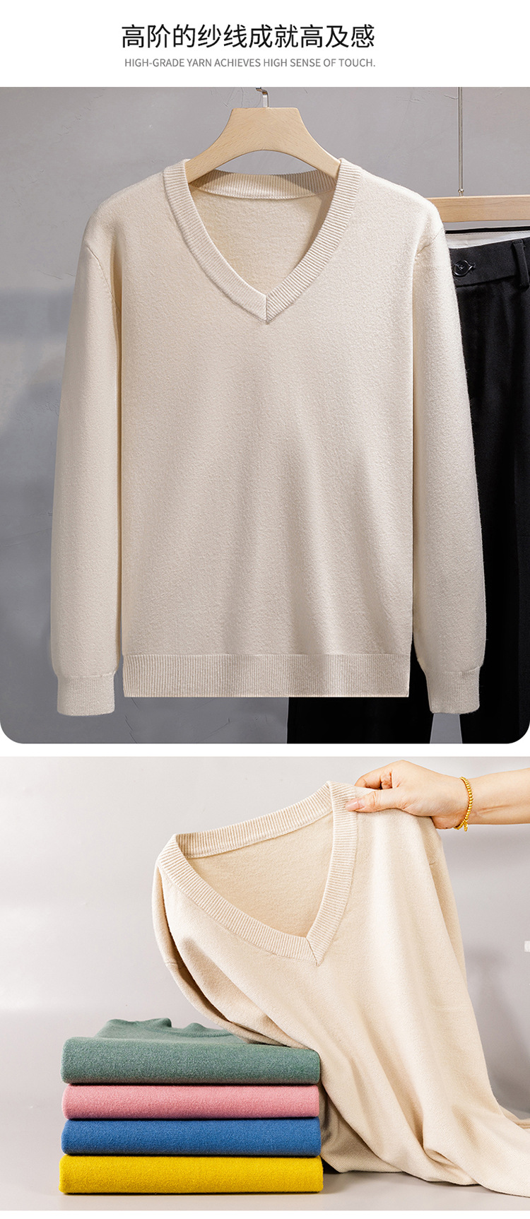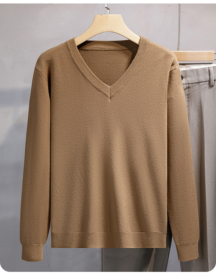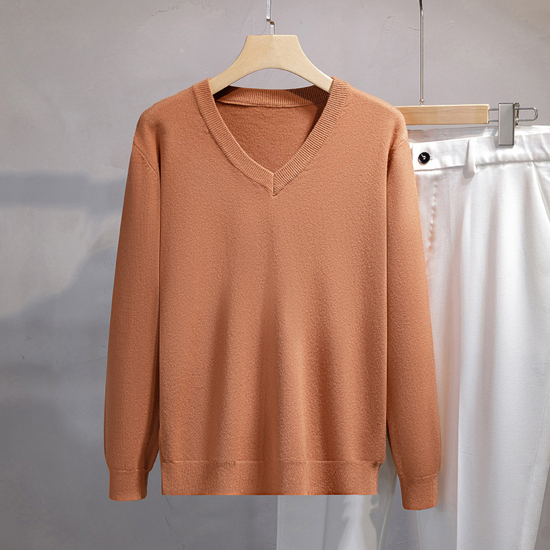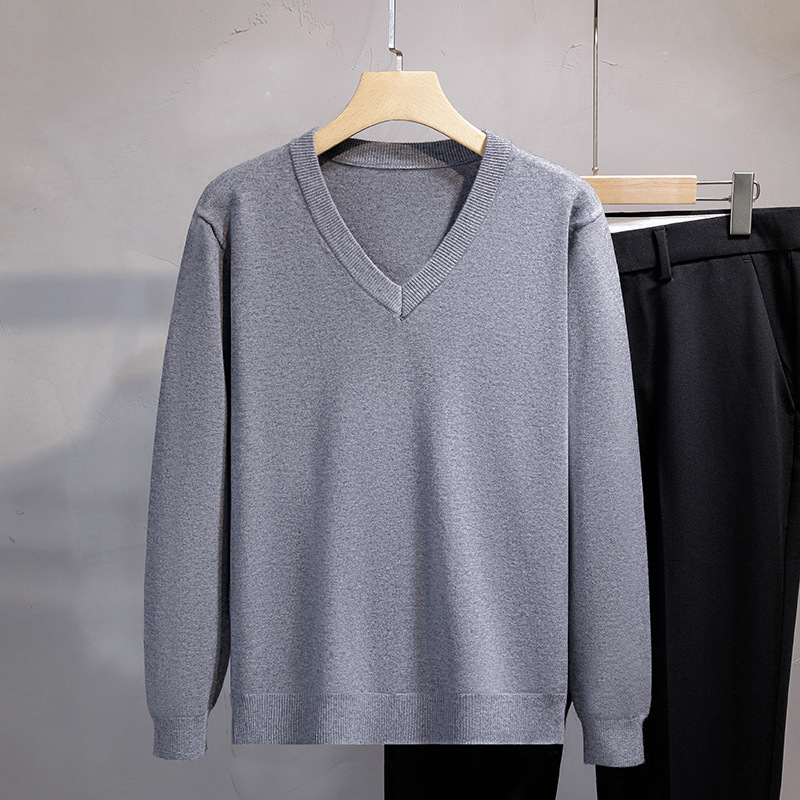 가을과 겨울 2024 새로운 캐주얼 비즈니스 V-Neck 솔리드 컬러 올 매치 풀오버 스웨터 솔리드 컬러 긴 소매 남성용 스웨터