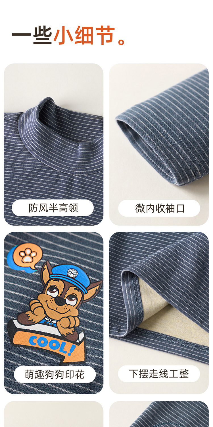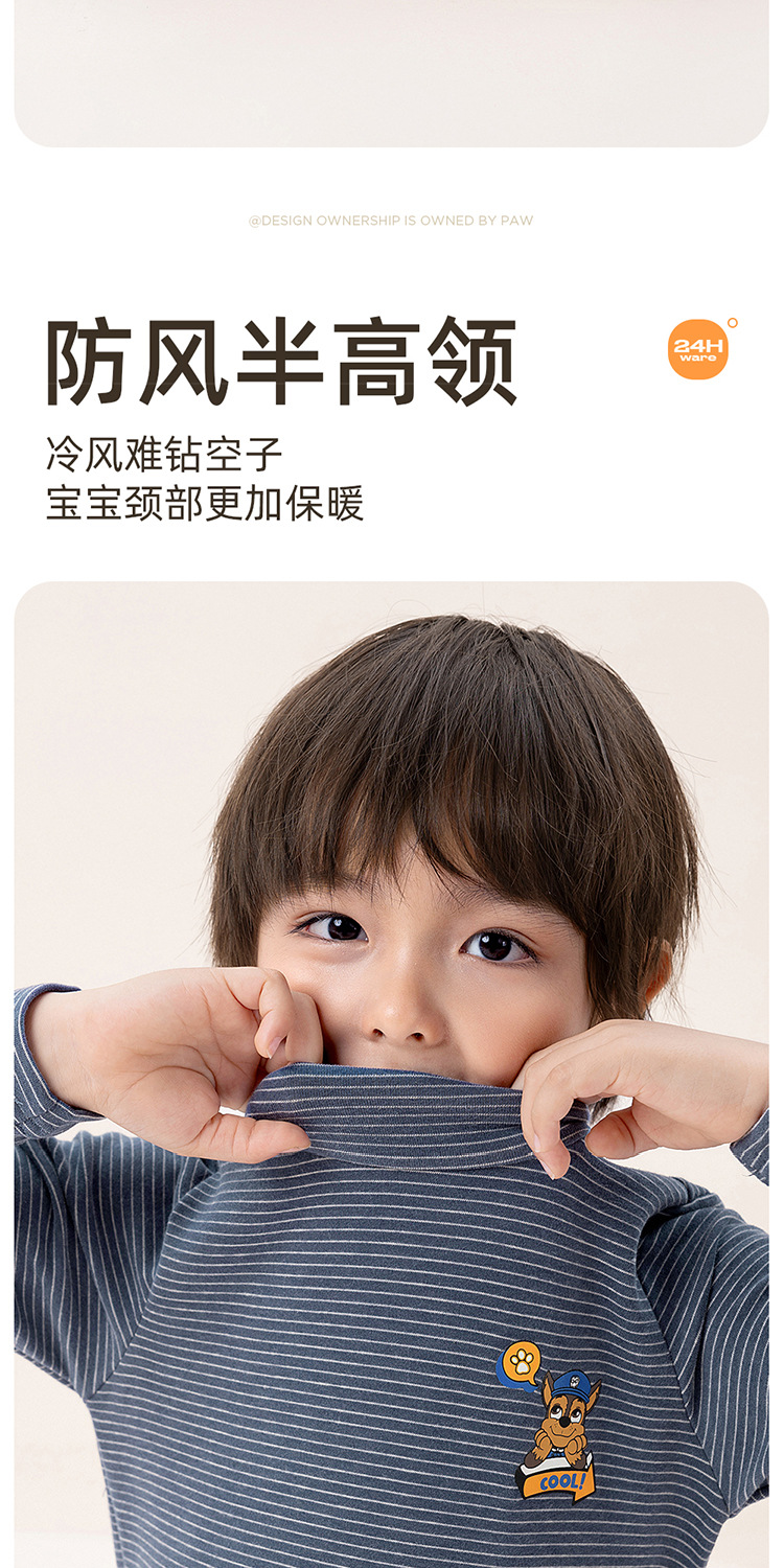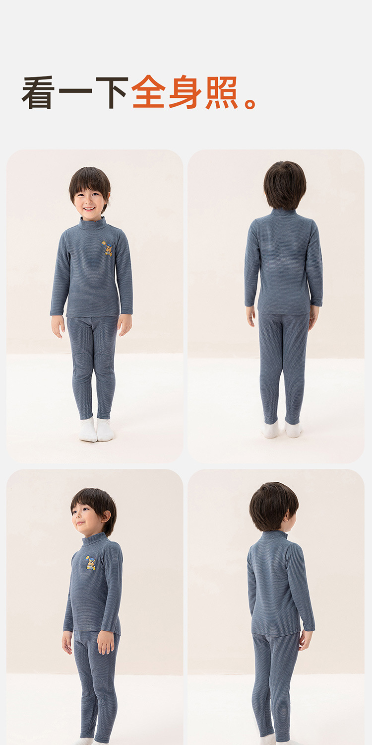 왕왕 팀 소년 가을 옷과 바지 겨울 열 속옷 어린이 반 하이 칼라 줄무늬 속옷 세트 두꺼운 홈 옷스토어 가기