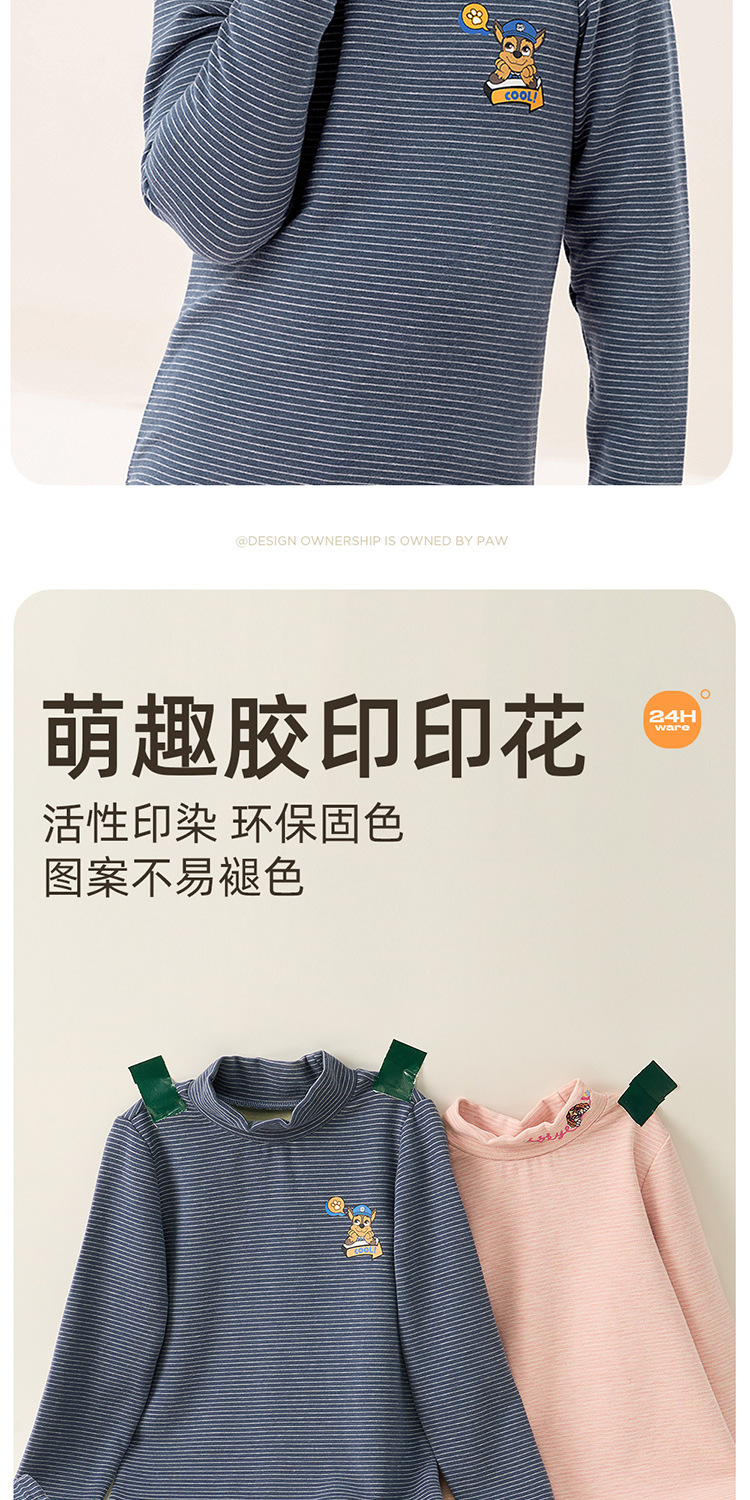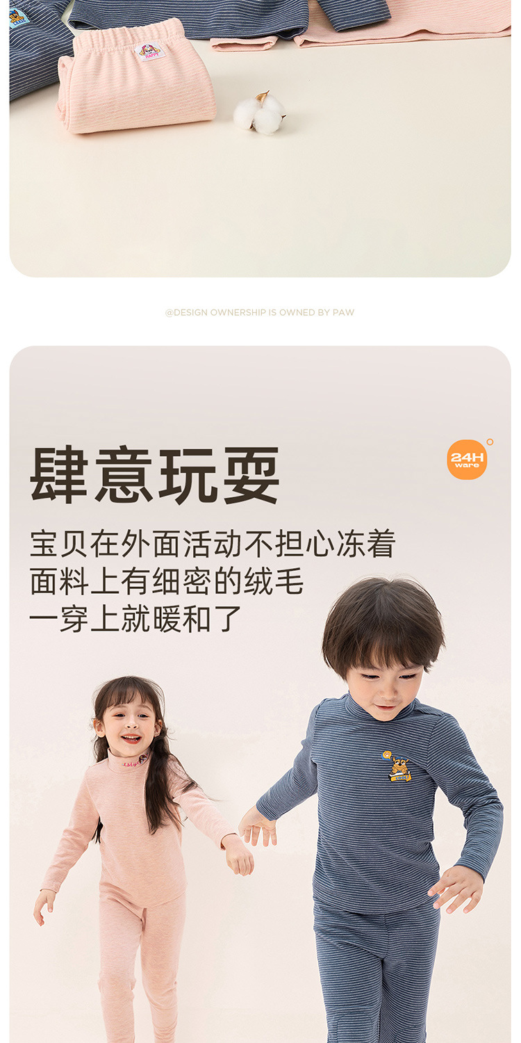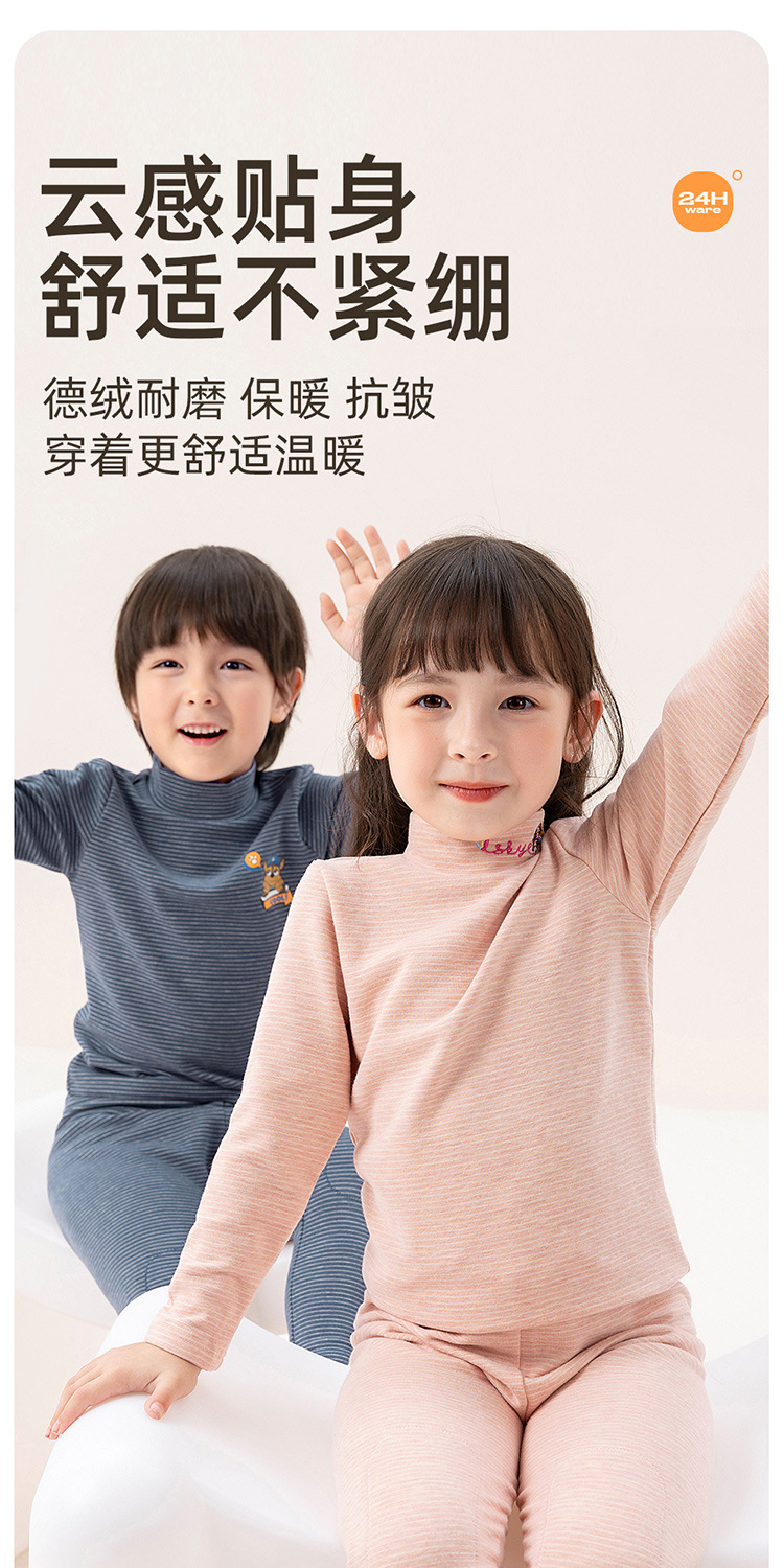 왕왕 팀 소년 가을 옷과 바지 겨울 열 속옷 어린이 반 하이 칼라 줄무늬 속옷 세트 두꺼운 홈 옷스토어 가기