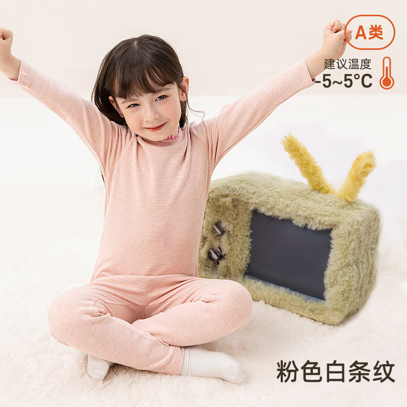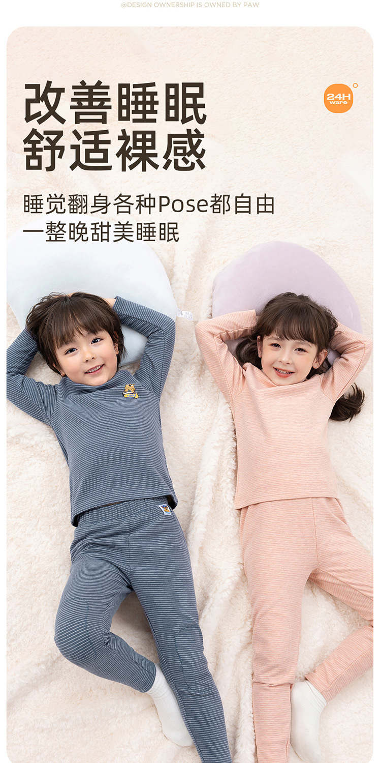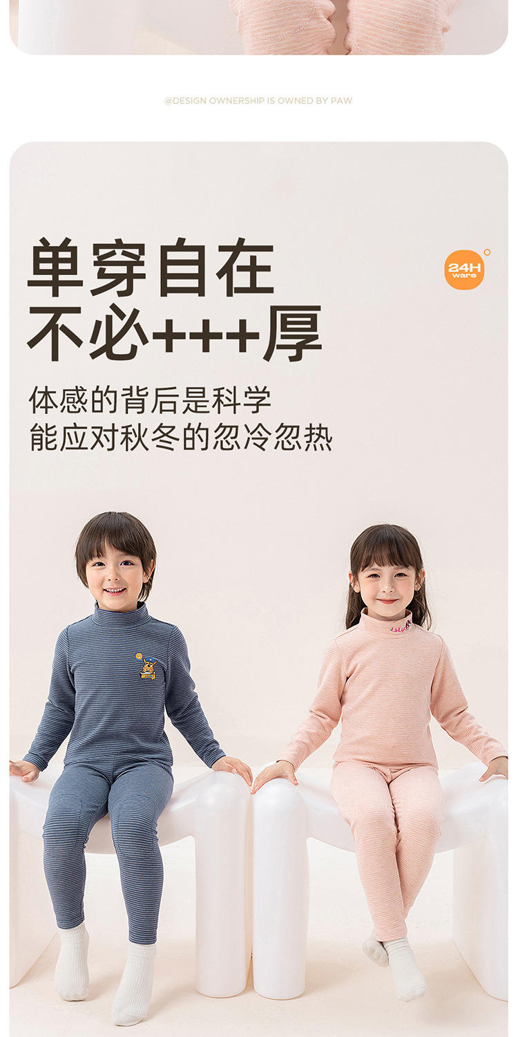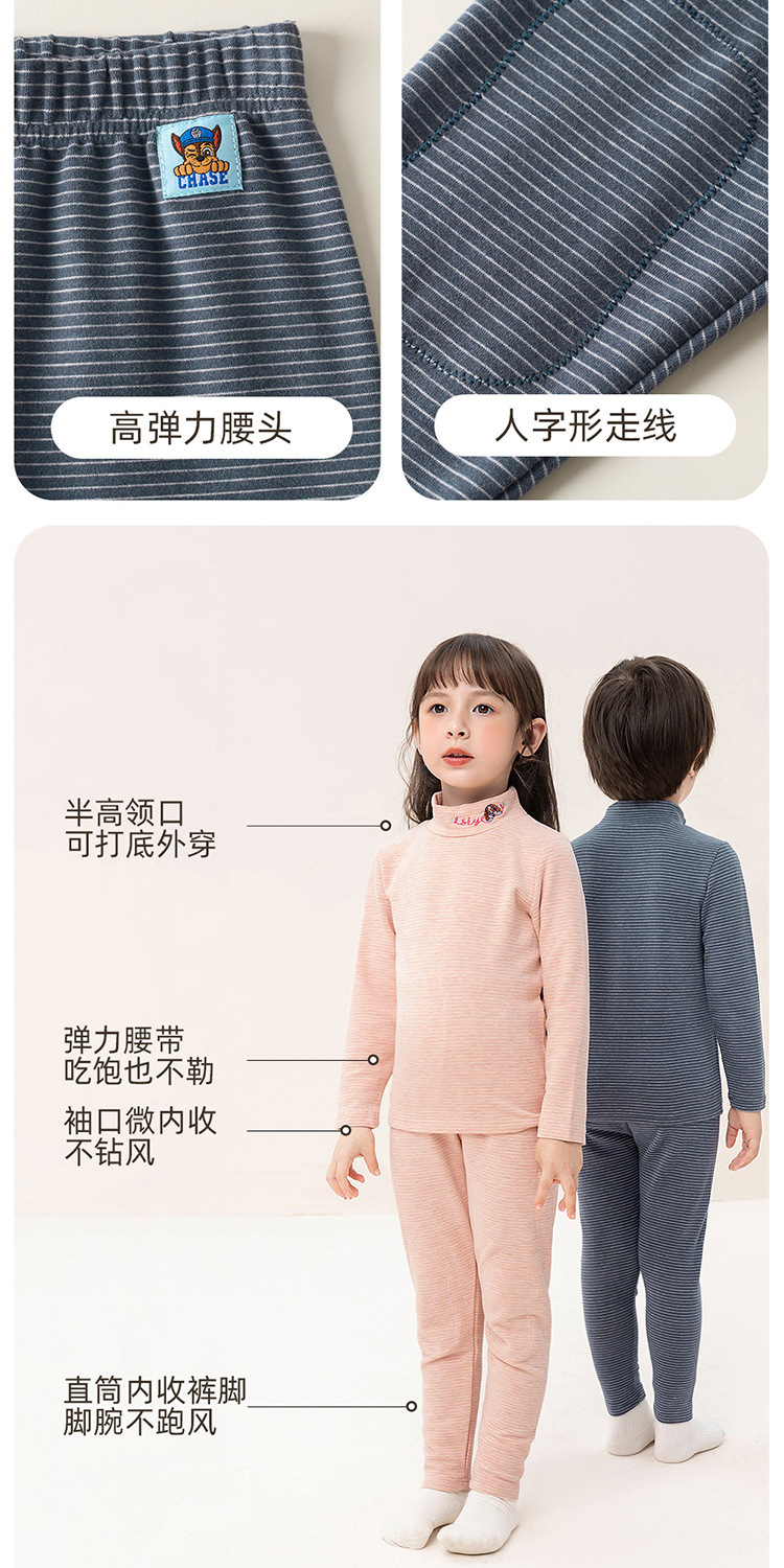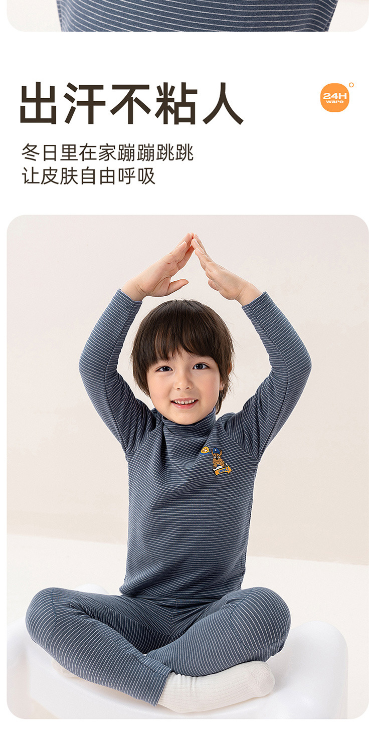 왕왕 팀 소년 가을 옷과 바지 겨울 열 속옷 어린이 반 하이 칼라 줄무늬 속옷 세트 두꺼운 홈 옷
