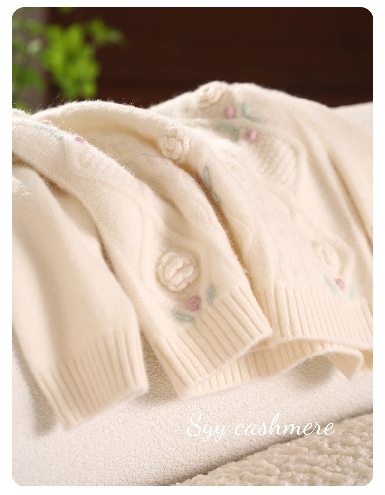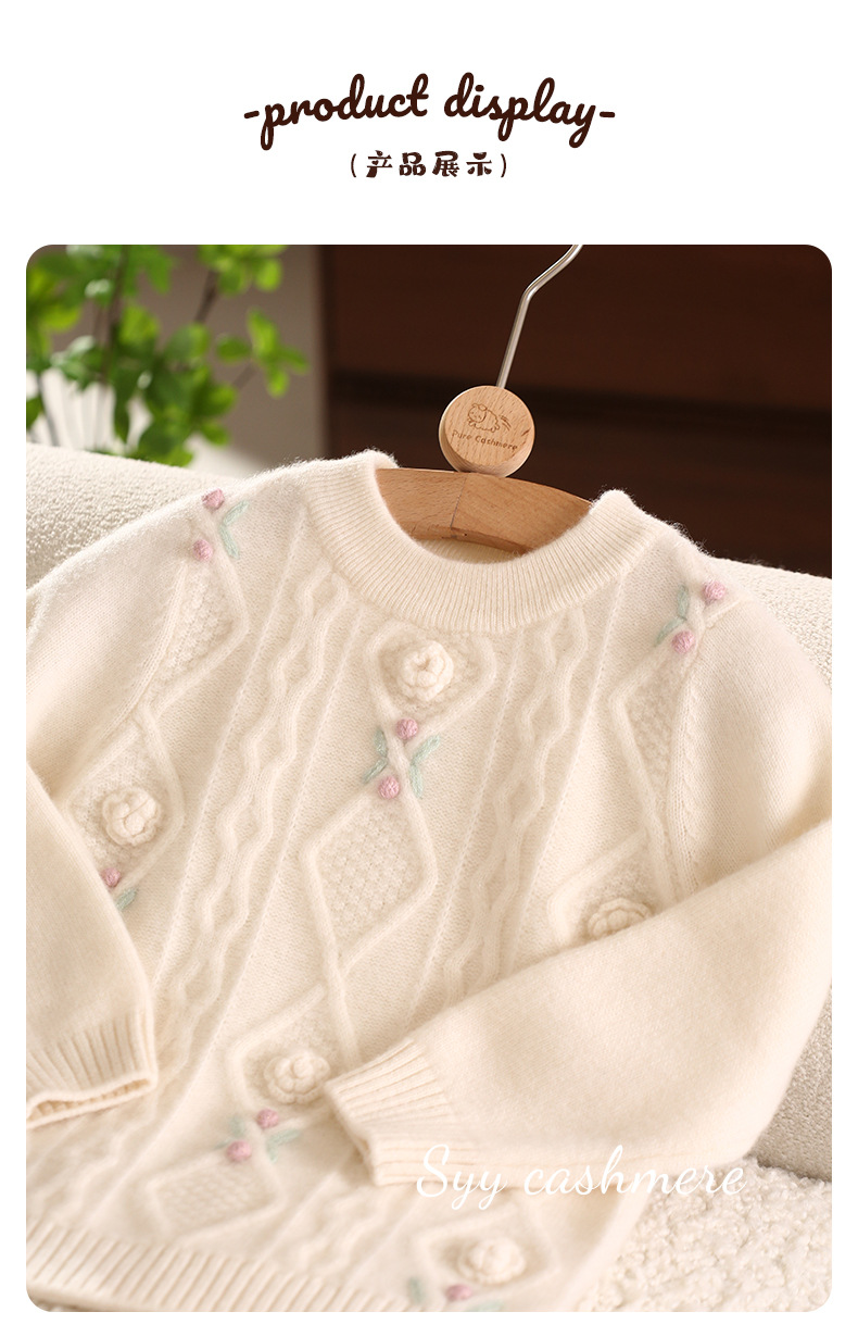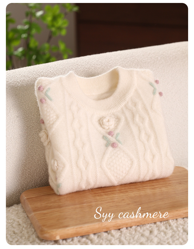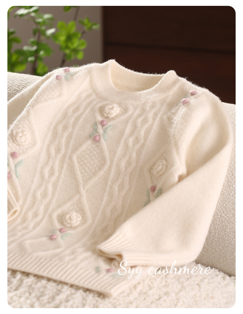 양과 양의 수 Consaini 100% 순수 캐시미어 스웨터 소녀 손으로 만든 입체 후크 꽃 두꺼운 스웨터스토어 가기