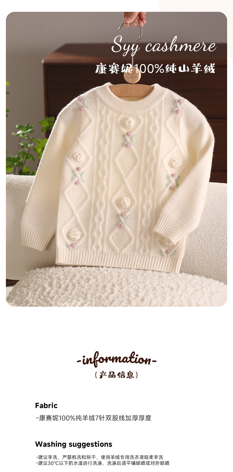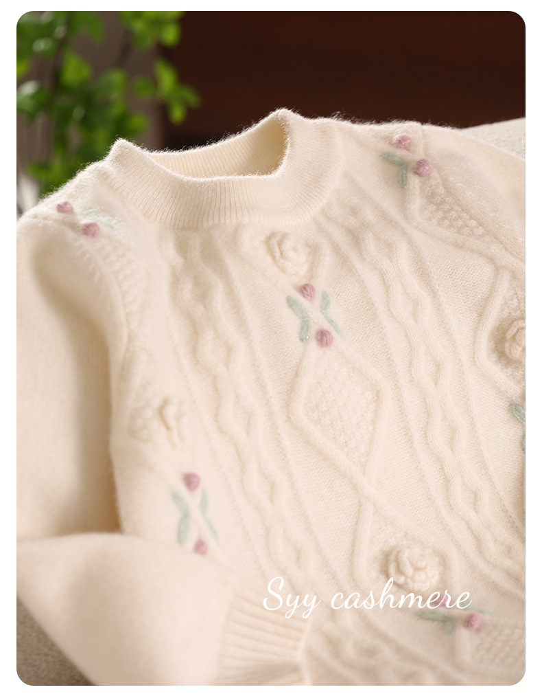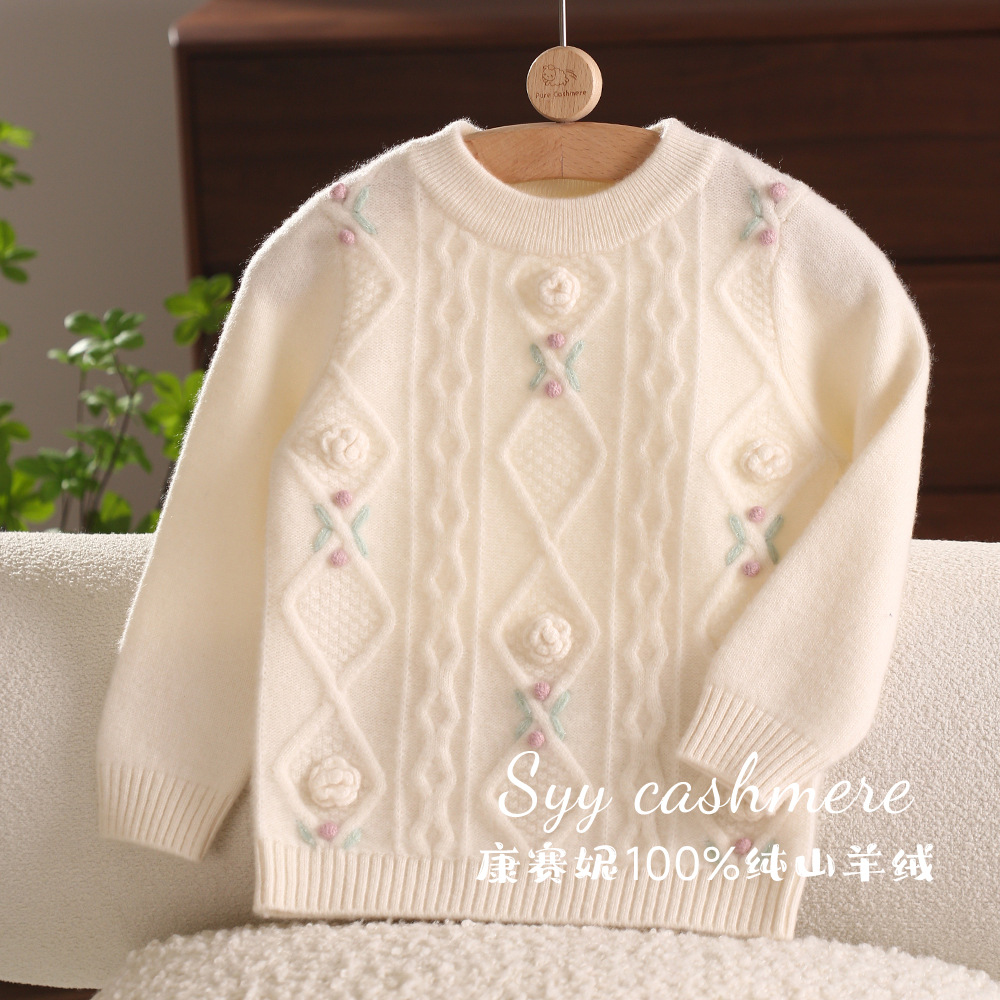 양과 양의 수 Consaini 100% 순수 캐시미어 스웨터 소녀 손으로 만든 입체 후크 꽃 두꺼운 스웨터스토어 가기