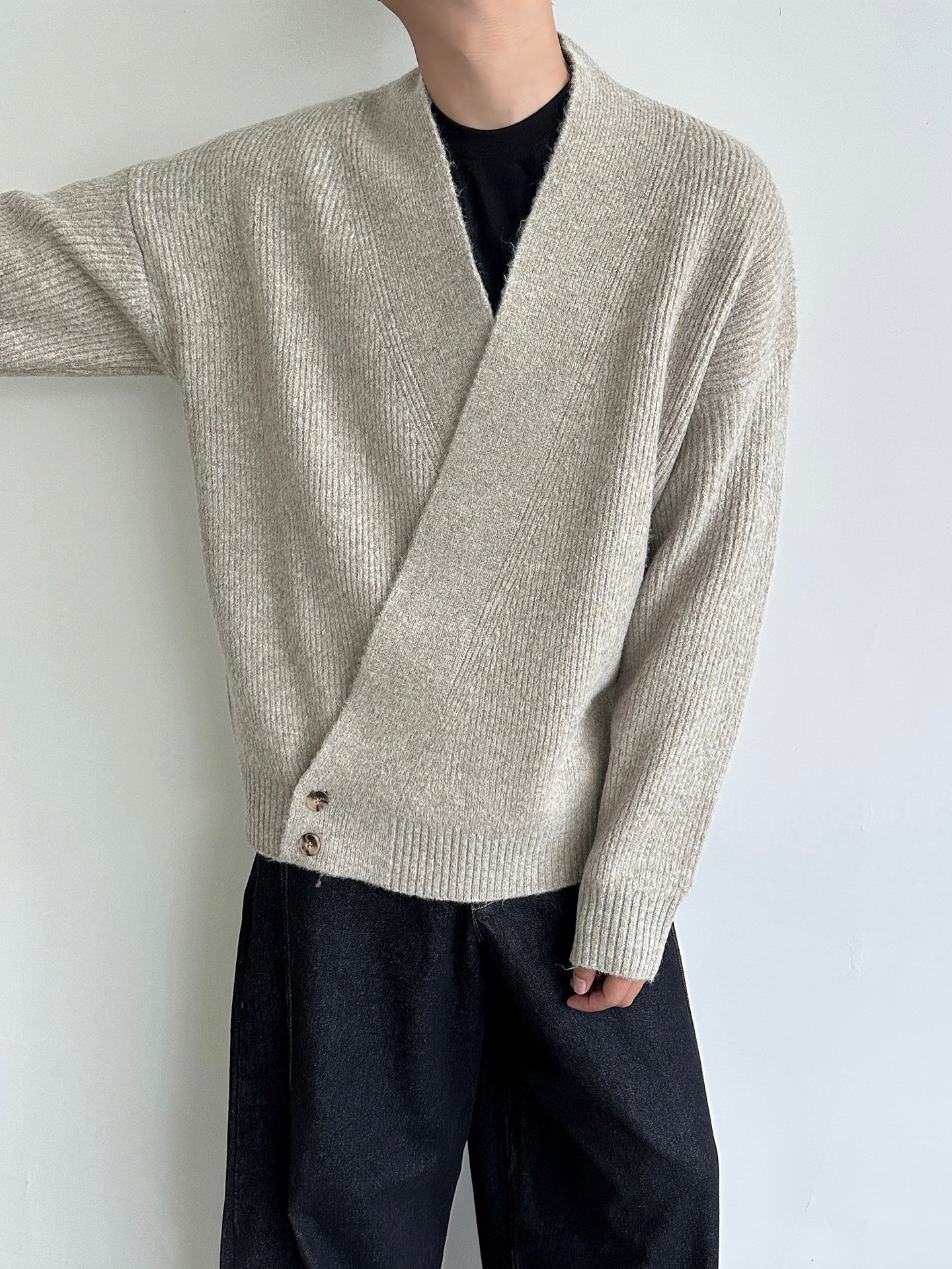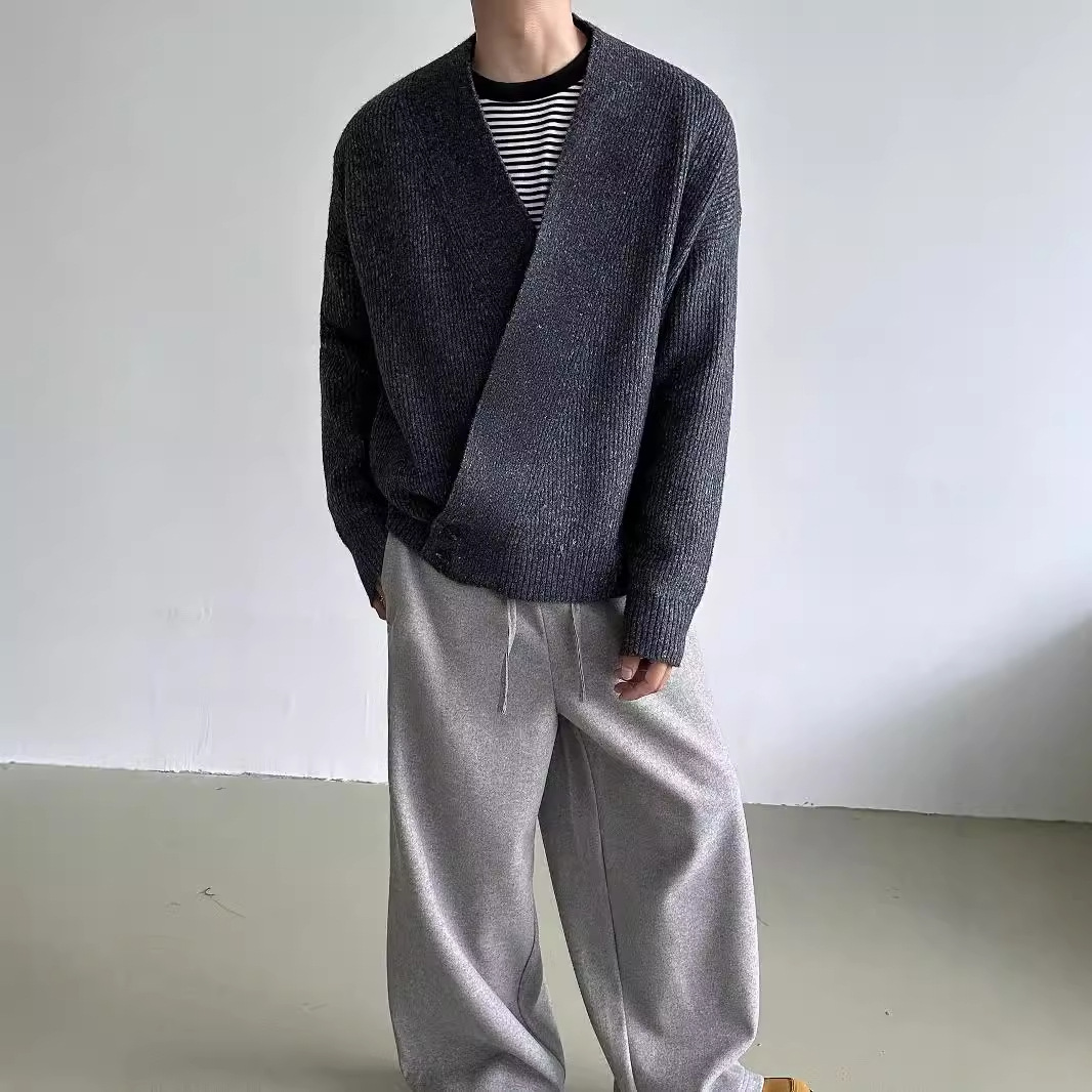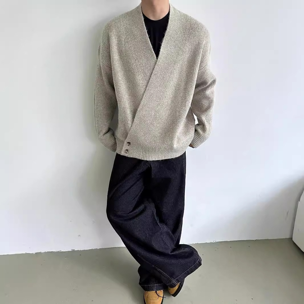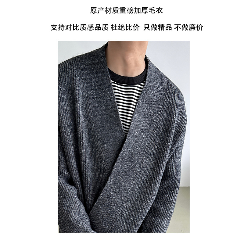 2024 가을과 겨울 새로운 게으른 느슨한 V 넥 니트 로브 스웨터 남자 올 매치 간단한 오비큐 버튼 카디건 재킷스토어 가기