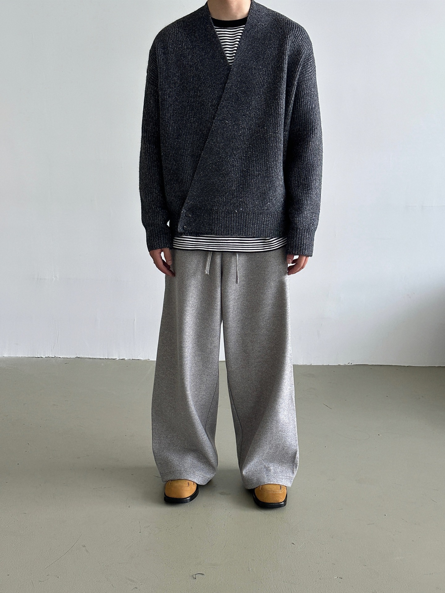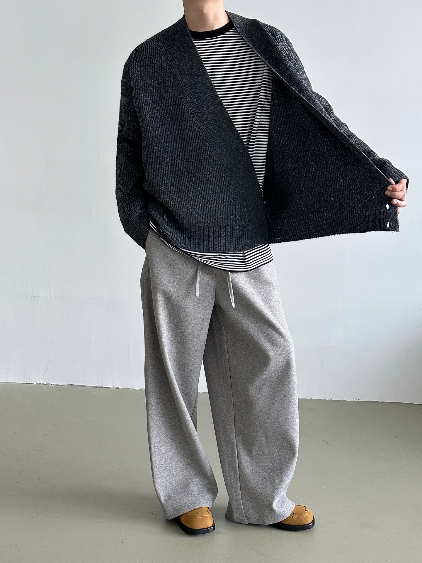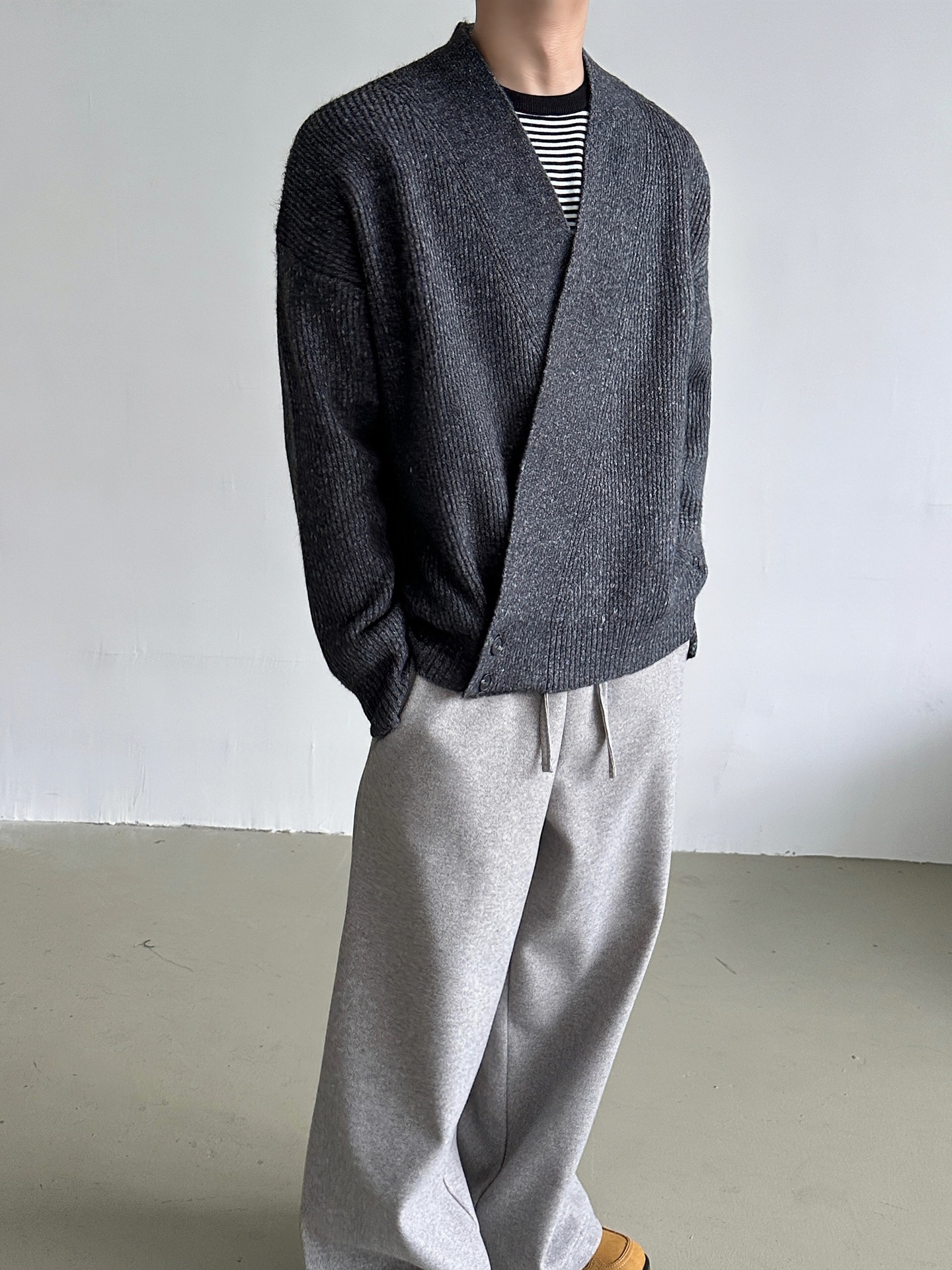 2024 가을과 겨울 새로운 게으른 느슨한 V 넥 니트 로브 스웨터 남자 올 매치 간단한 오비큐 버튼 카디건 재킷스토어 가기