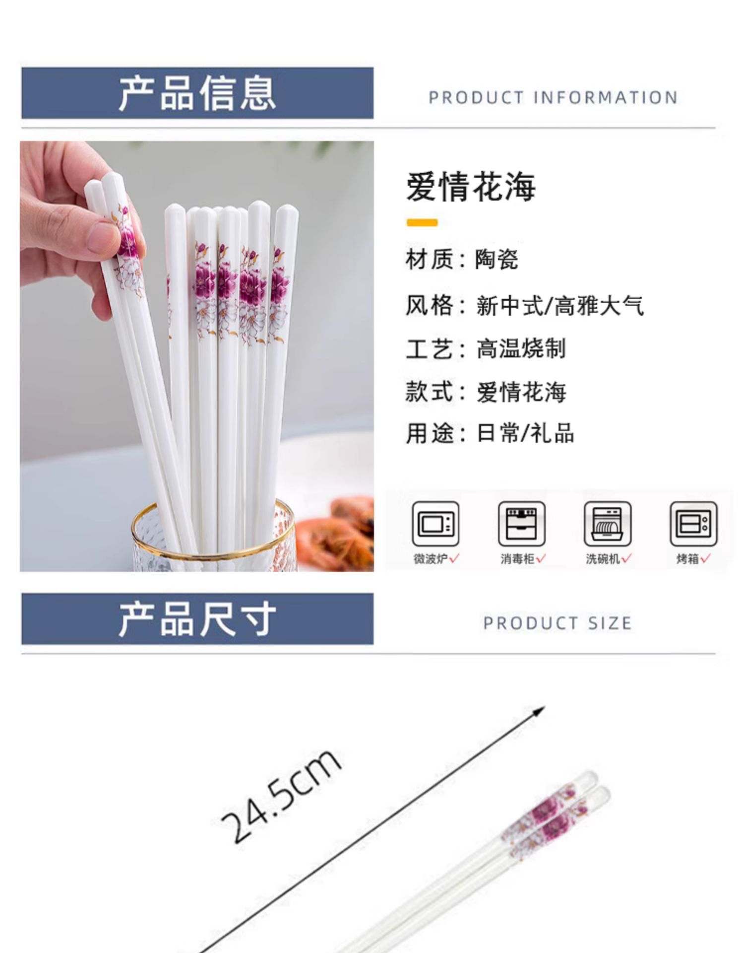 • 사랑의 꽃 바다 세라믹 젓가락 5쌍