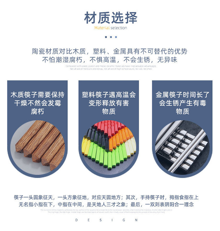 간단한 창조적 인 세라믹 젓가락 가정용 고급 선물 상자 곰팡이 방지 수분 방지 1 인 일본 젓가락을 청소하기 쉽습니다.