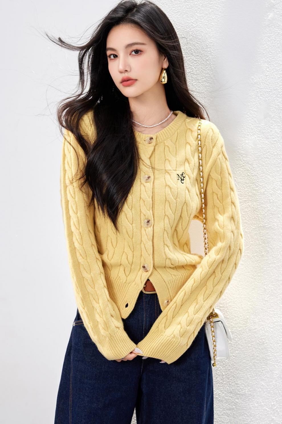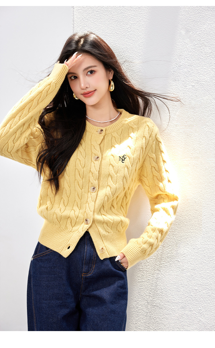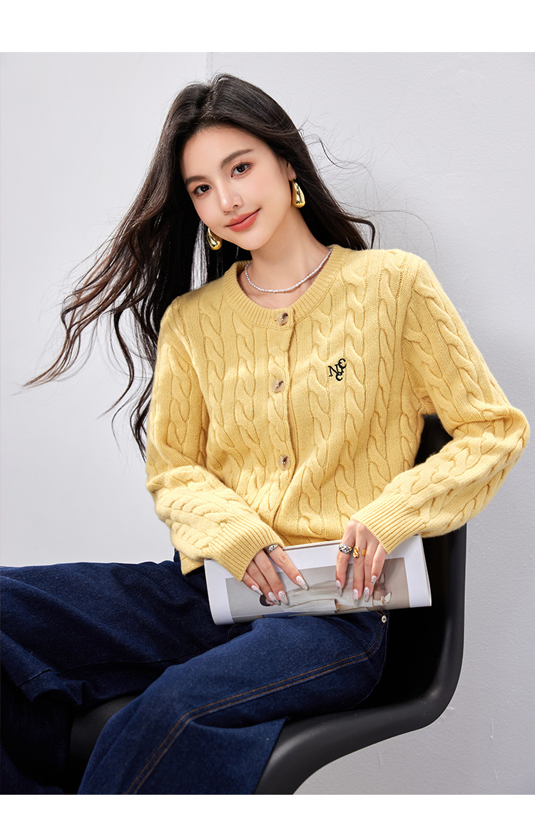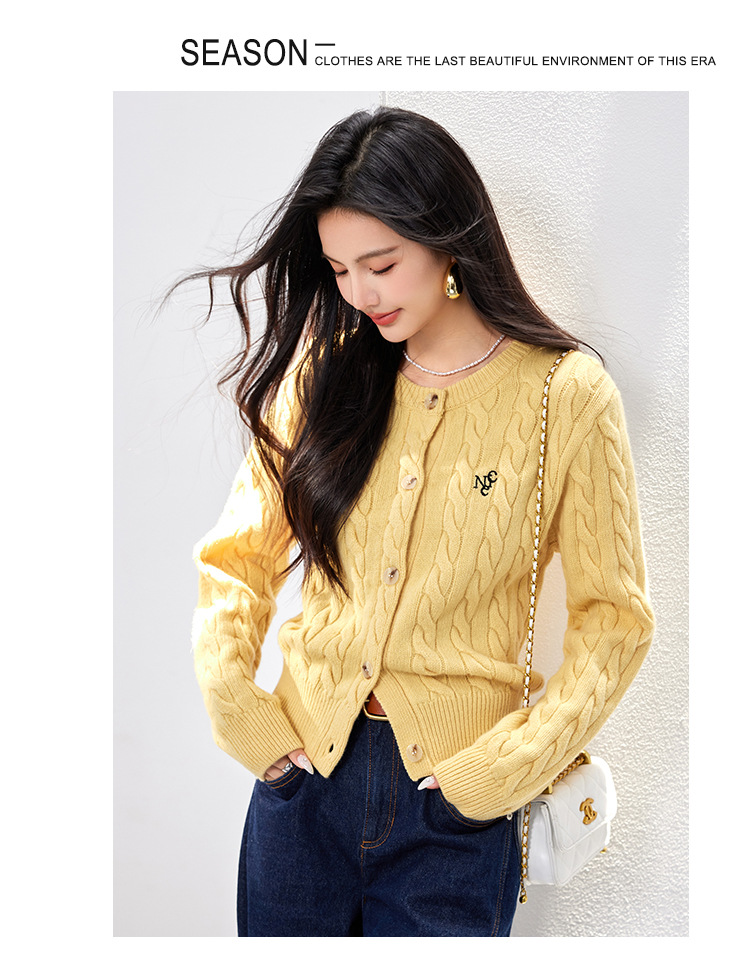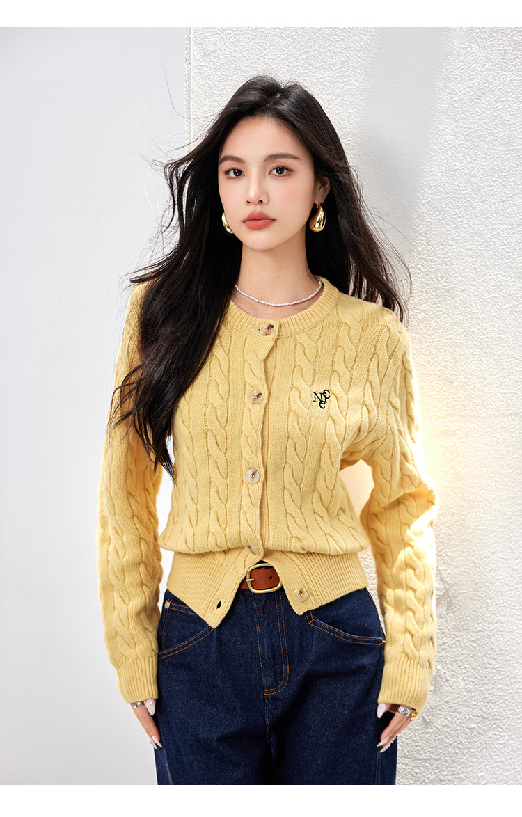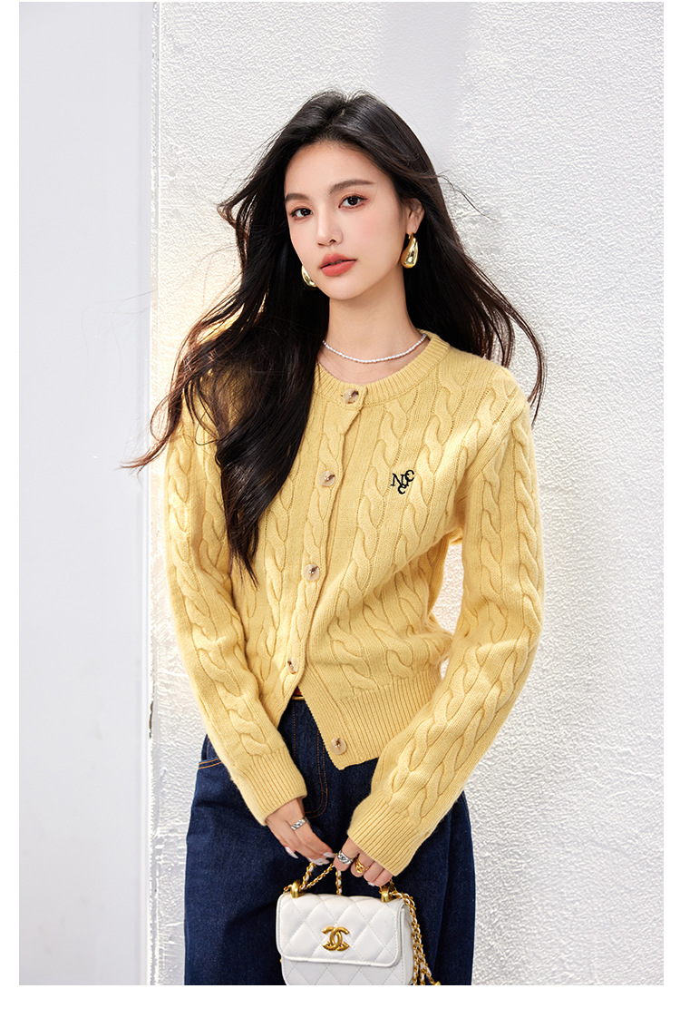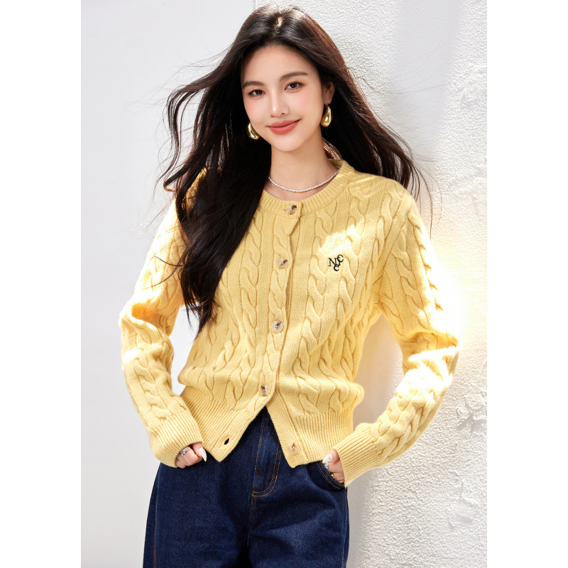 리얼 샷 ◆ 재고 ◆ 평판 호주 메리노 울 트위스트 크루 넥 카디건 재킷 가을 니트 스웨터스토어 가기