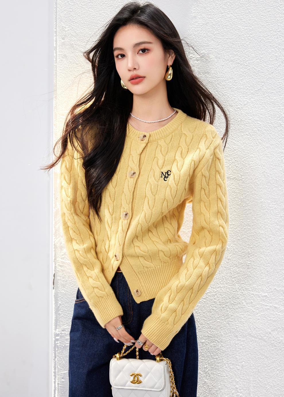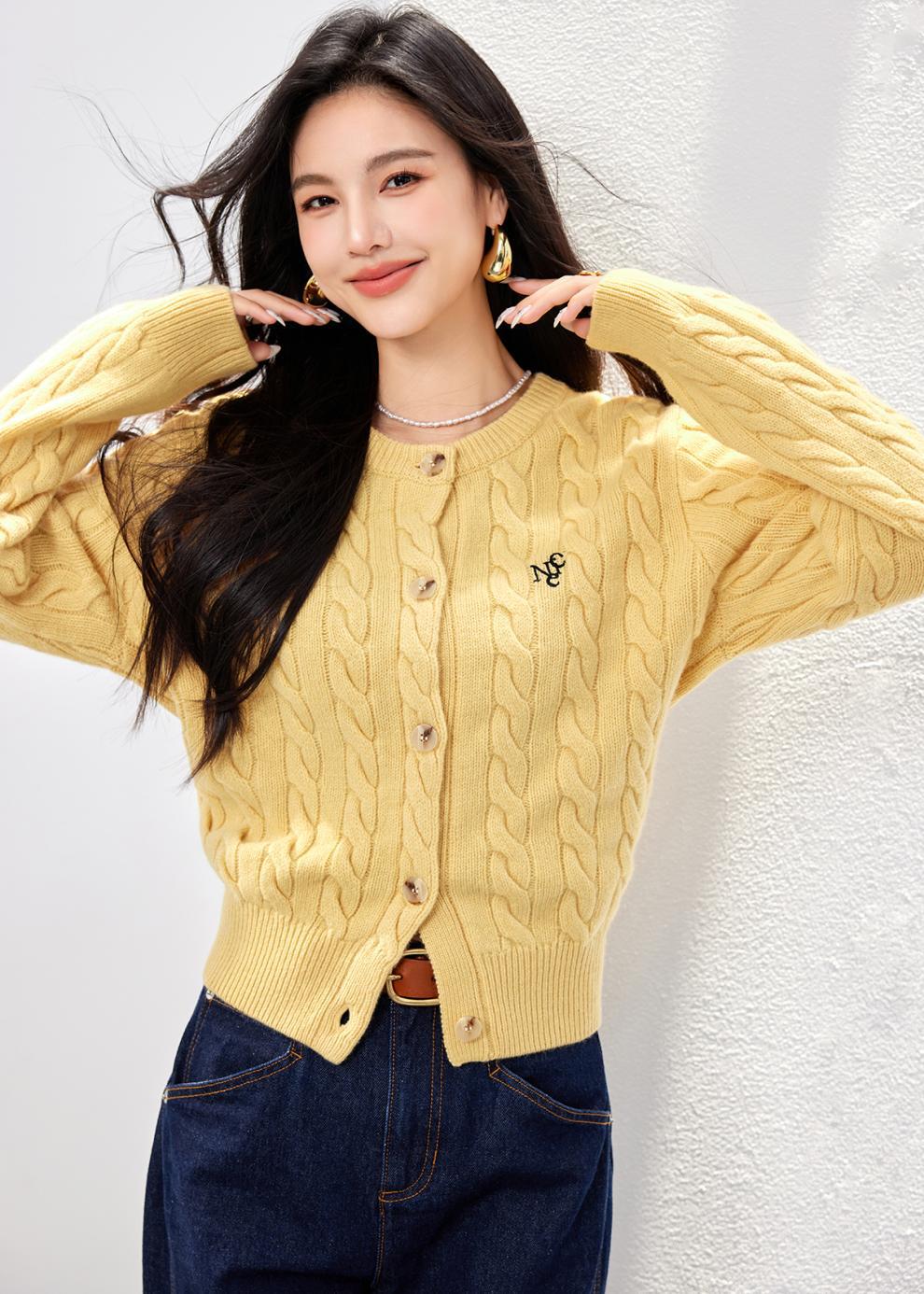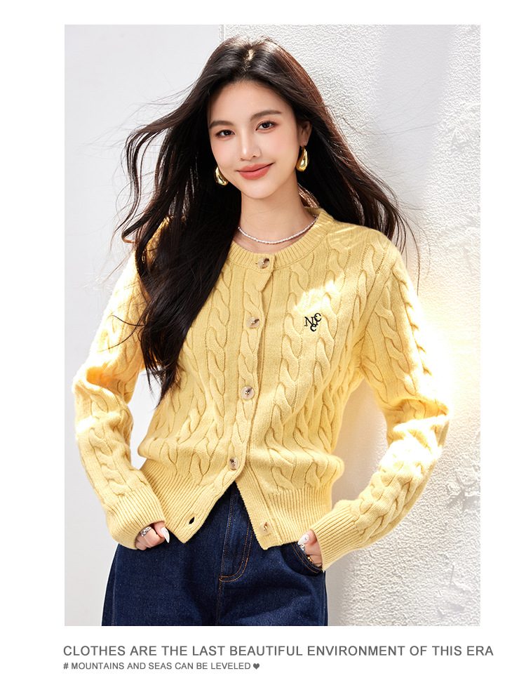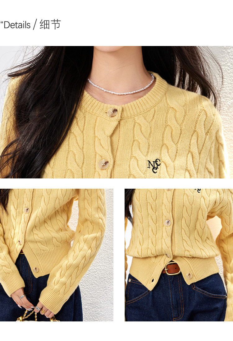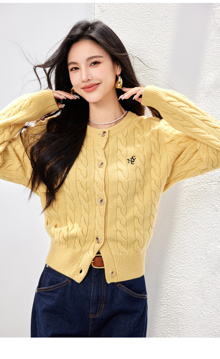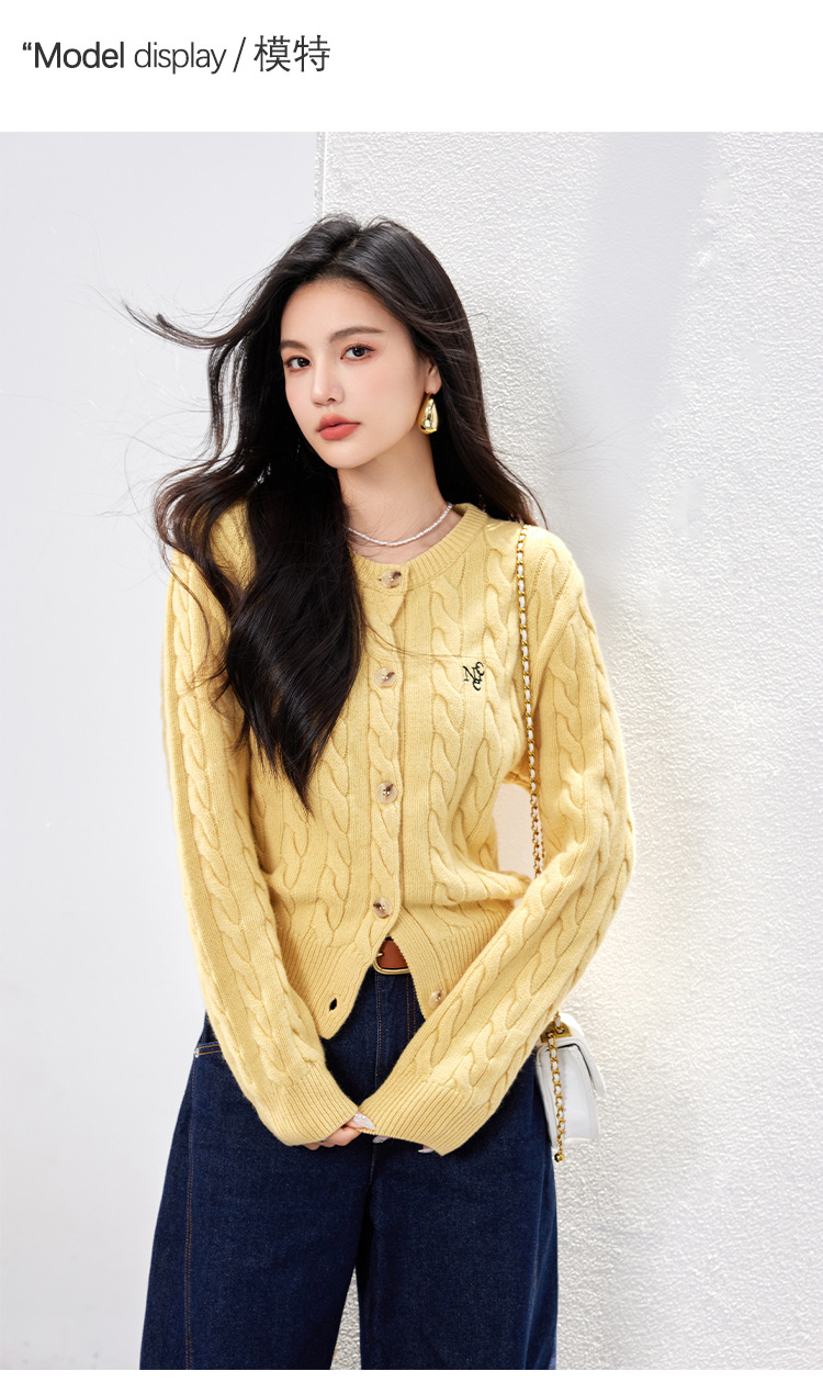 리얼 샷 ◆ 재고 ◆ 평판 호주 메리노 울 트위스트 크루 넥 카디건 재킷 가을 니트 스웨터스토어 가기